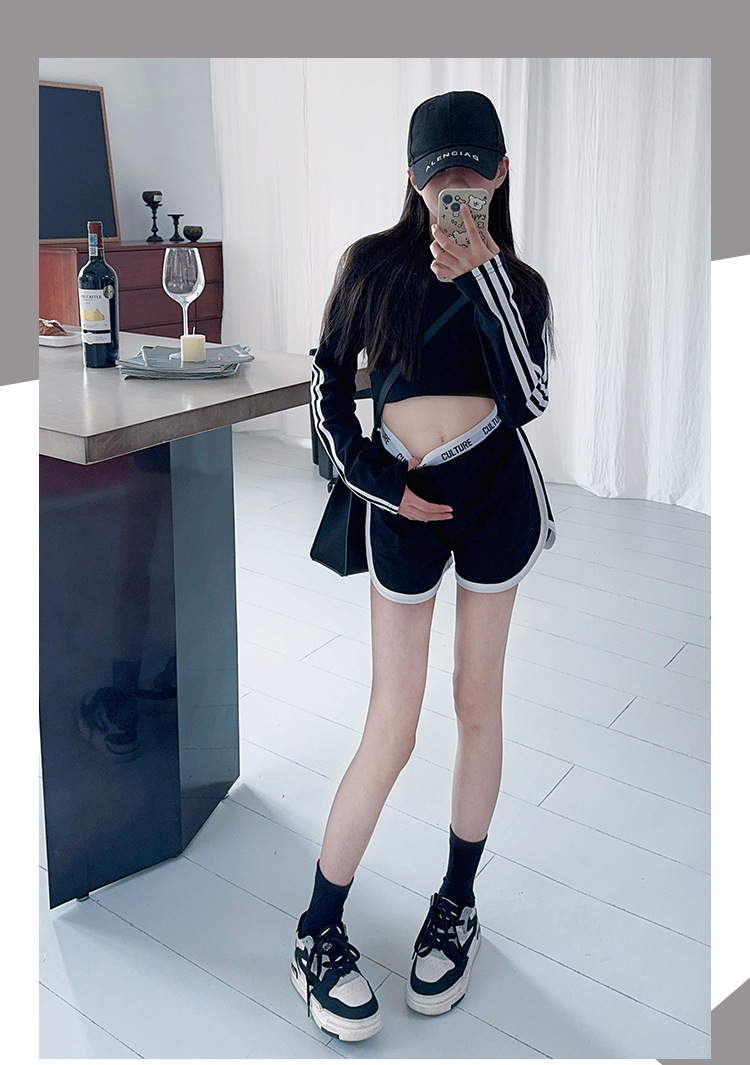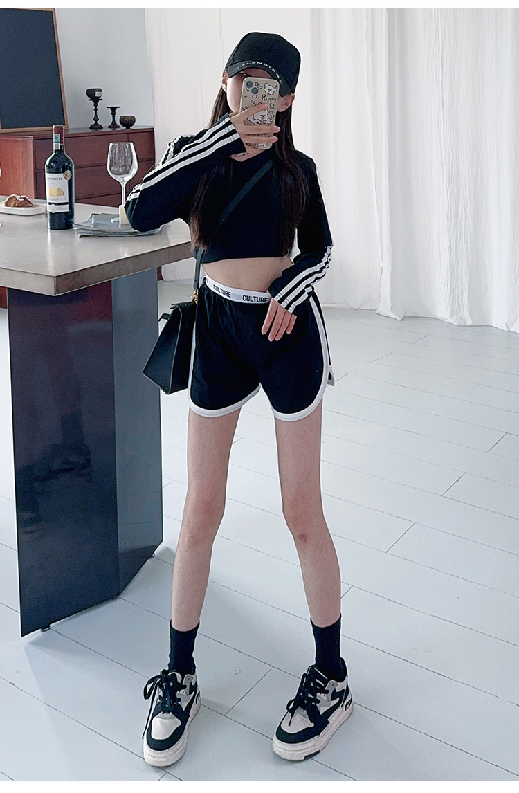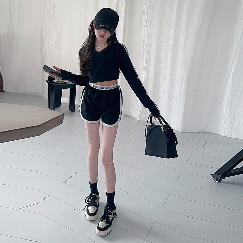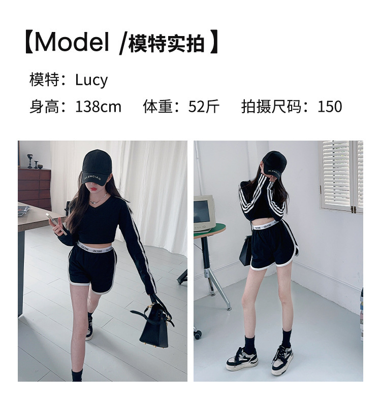 소녀 스포츠 세트 봄과 가을 2025 새로운 스타일 소녀 한국 스타일 봄 패션 긴 소매 상단과 반바지 착용