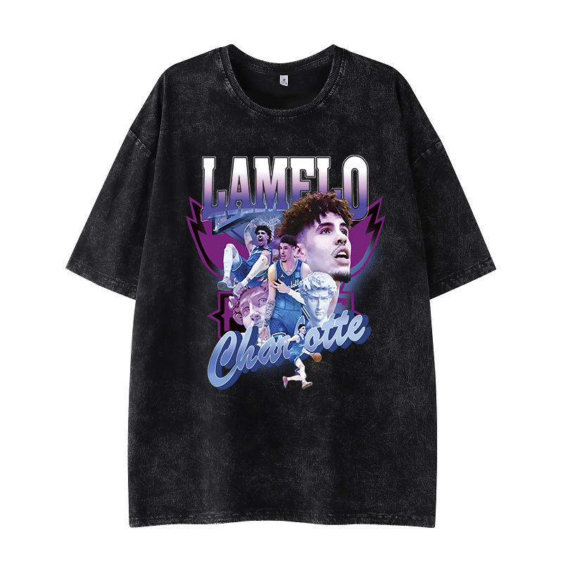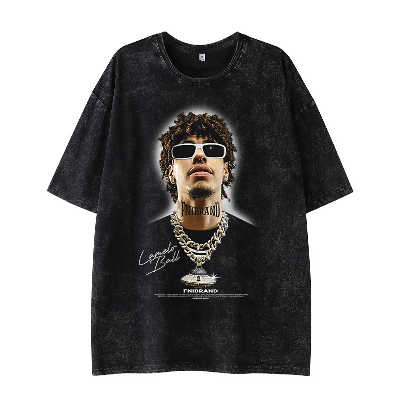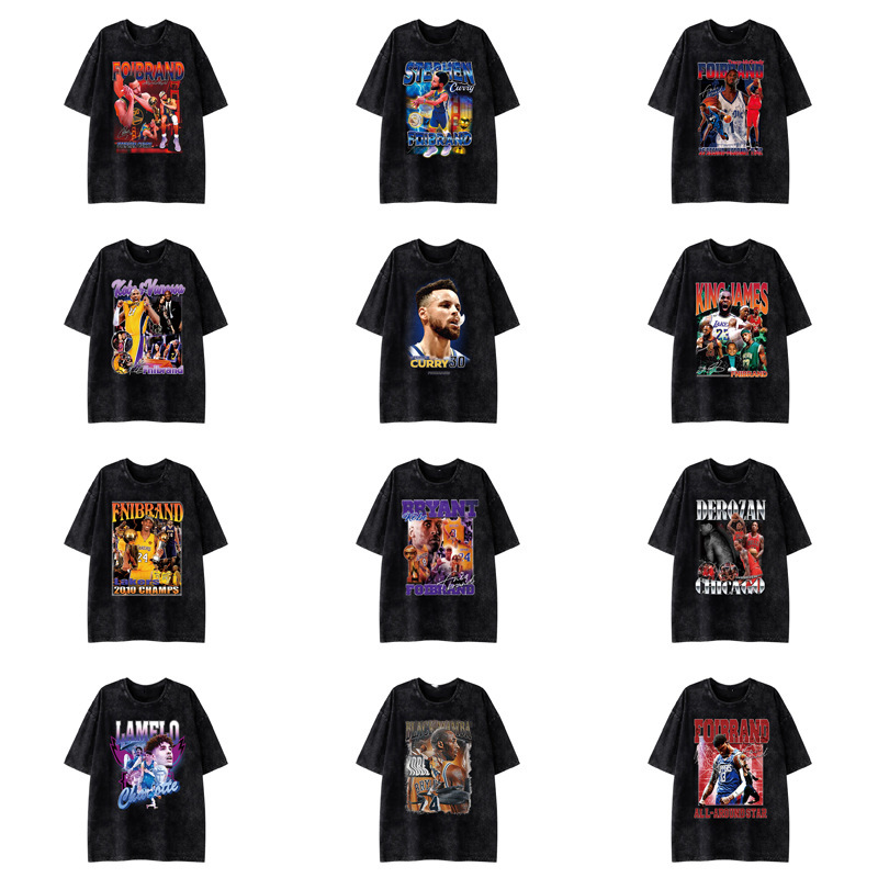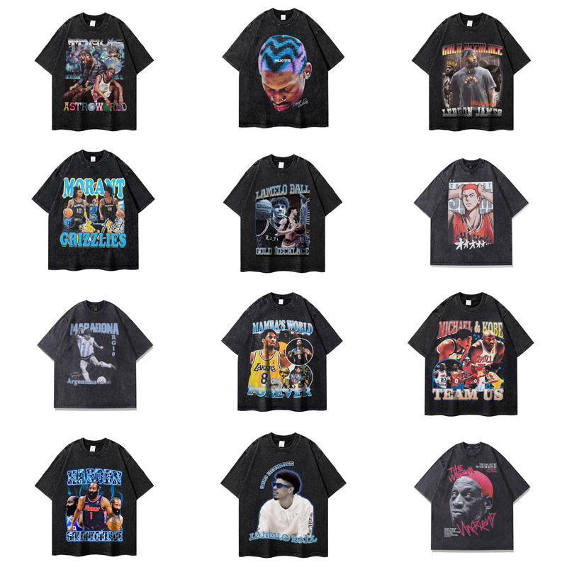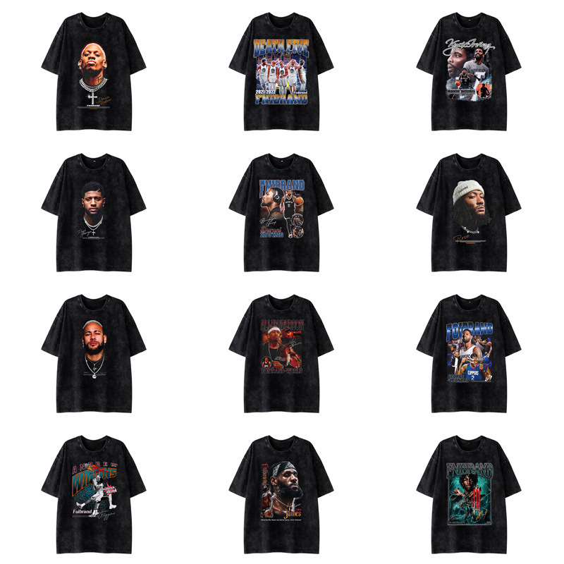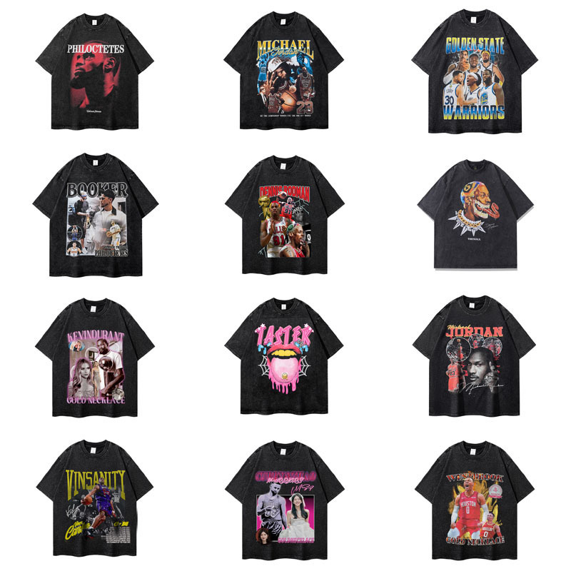 국경 도매 세탁 오래 된 짧은 소매 여름 느슨한 조커 레트로 스트리트 패션 브랜드 대외 무역스토어 가기