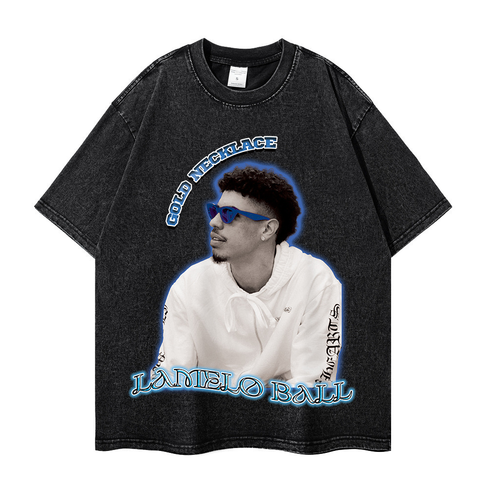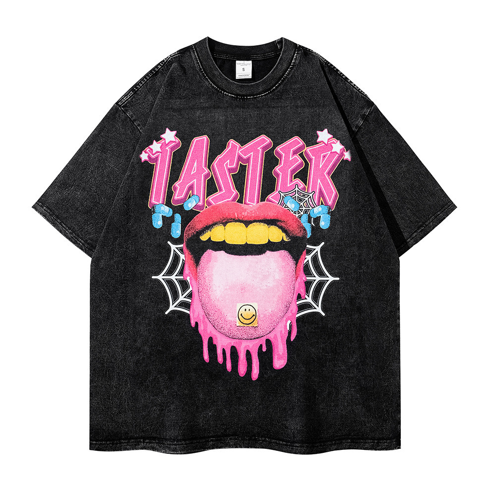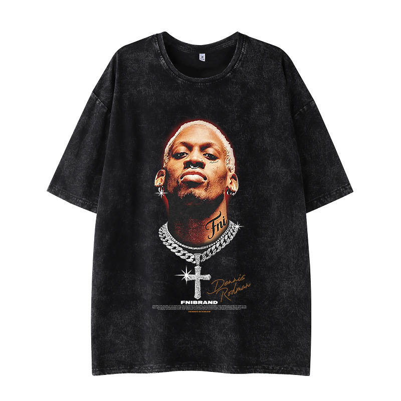 국경 도매 세탁 오래 된 짧은 소매 여름 느슨한 조커 레트로 스트리트 패션 브랜드 대외 무역