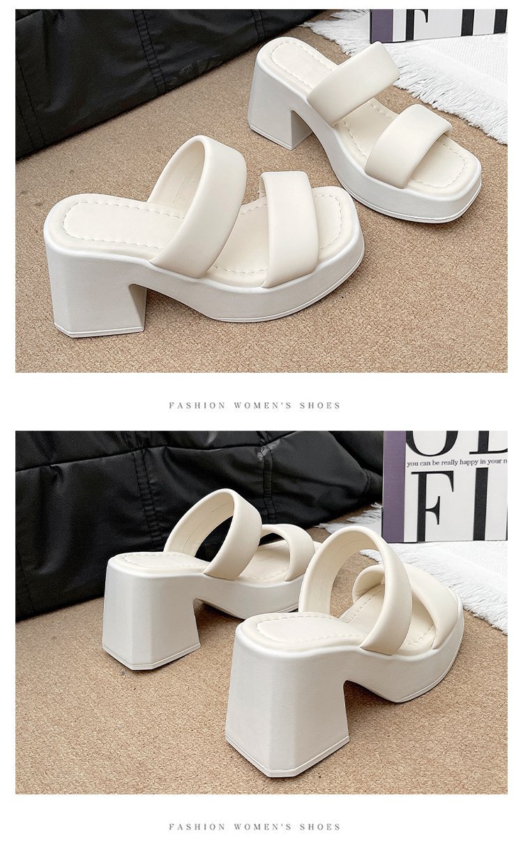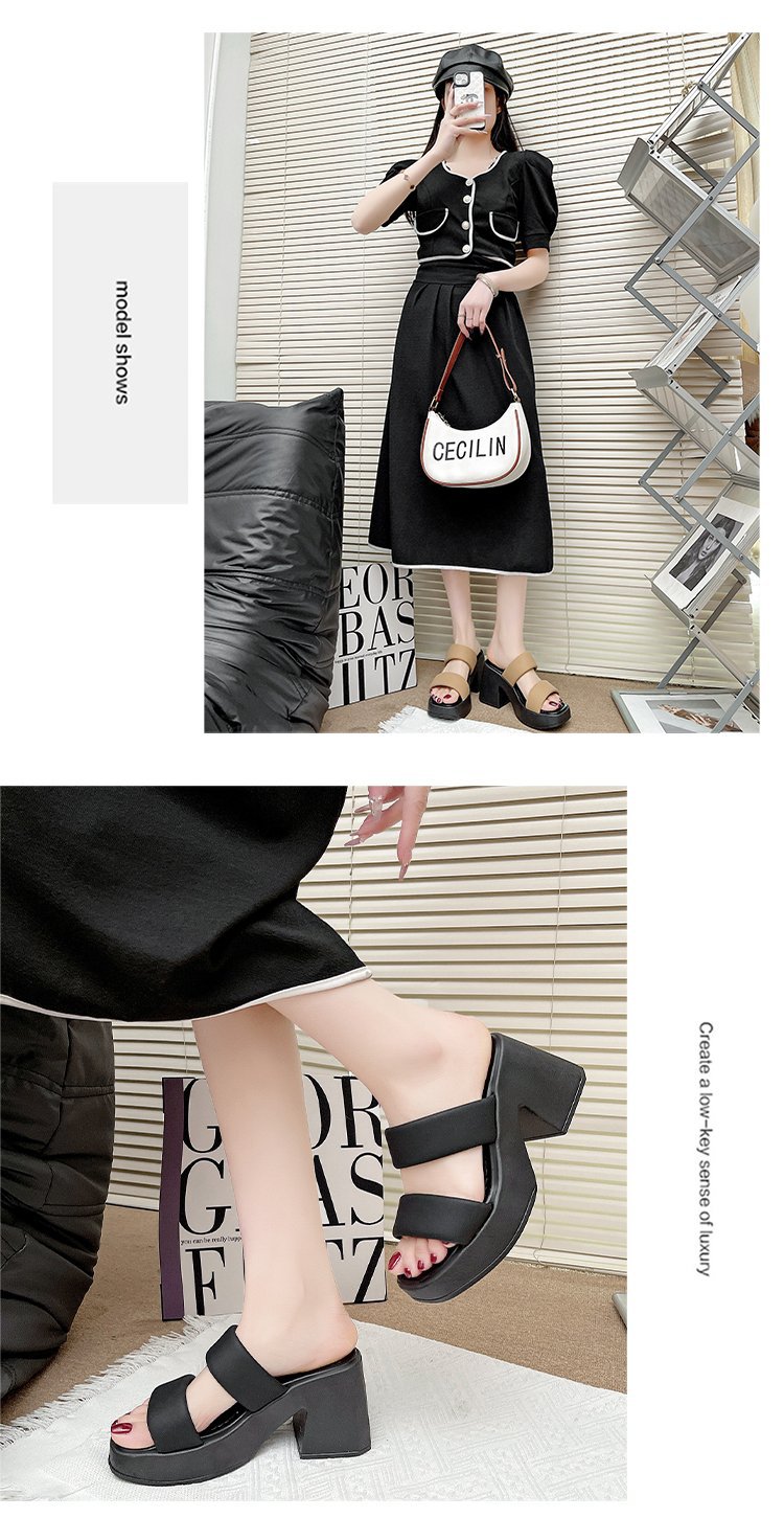 국경을 넘는 새로운 도착 샌들 2025 여름 유행 더블 벨트 스퀘어 두꺼운 슬리퍼 두꺼운 힐 오픈 발가락 슬리퍼