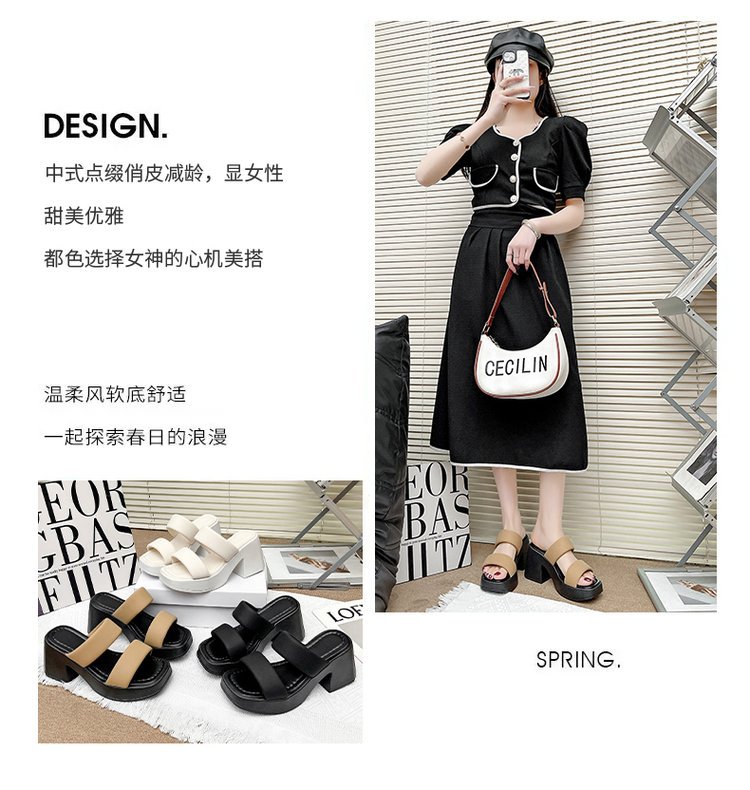국경을 넘는 새로운 도착 샌들 2025 여름 유행 더블 벨트 스퀘어 두꺼운 슬리퍼 두꺼운 힐 오픈 발가락 슬리퍼스토어 가기
