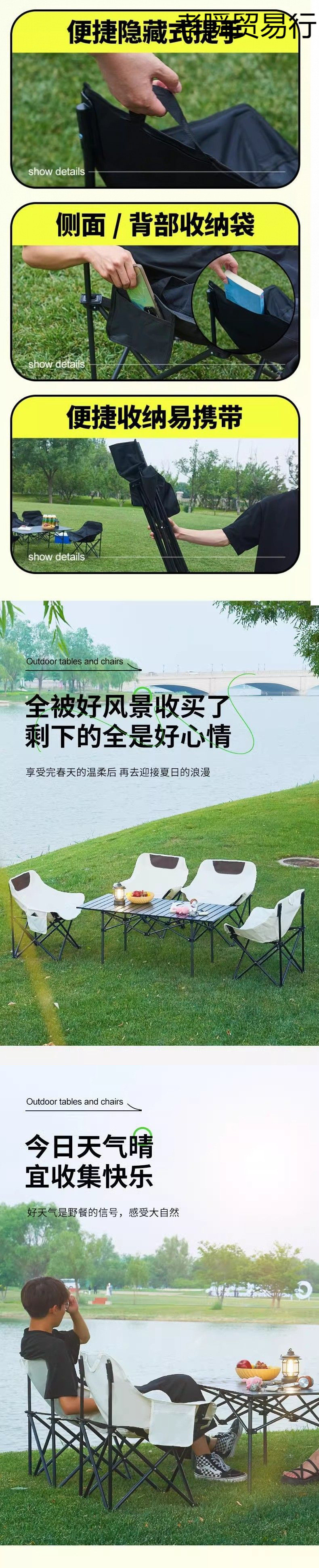 야외 다기능 접이식 테이블 및 의자 마구간 캠핑 기지 전체 장비 휴대용 의자 의자 세트