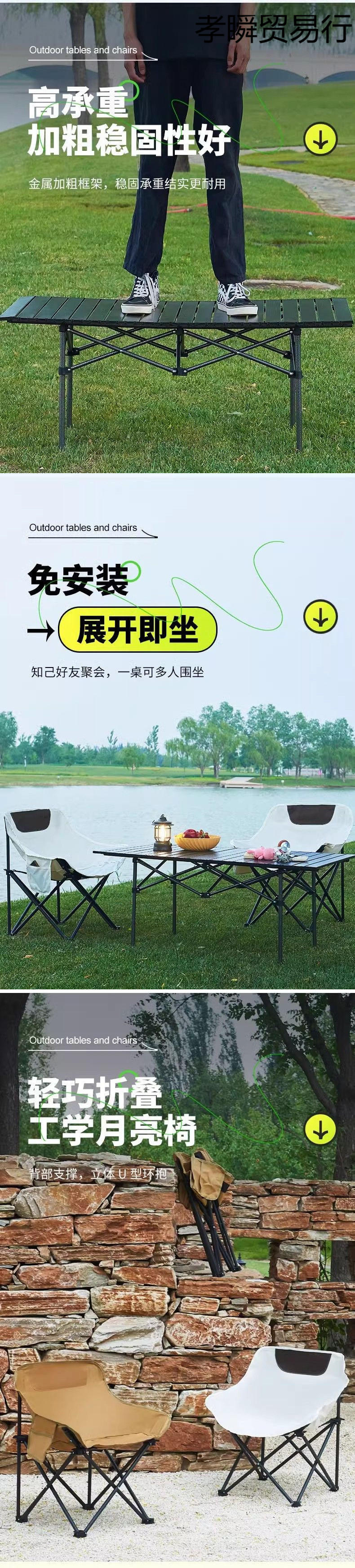 야외 다기능 접이식 테이블 및 의자 마구간 캠핑 기지 전체 장비 휴대용 의자 의자 세트스토어 가기