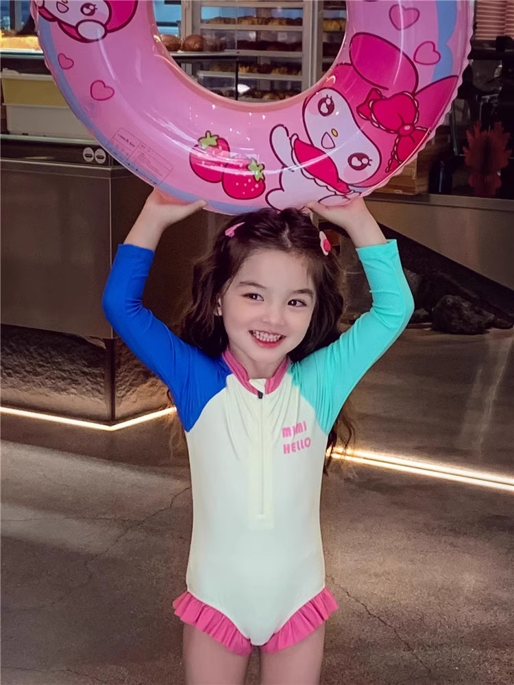 여자 수영복 여름 2025 새로운 스타일 소녀 도파민 수영복 휴일 어린이 긴 소매 수영복