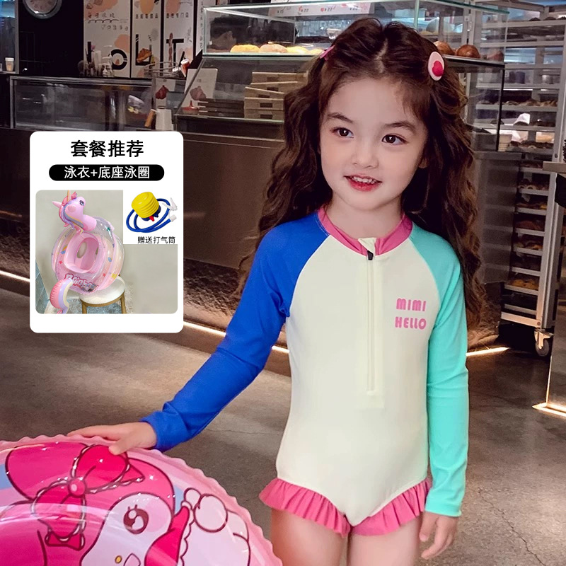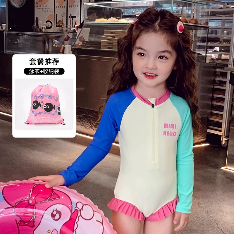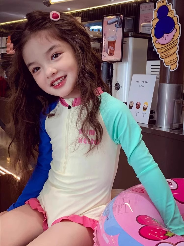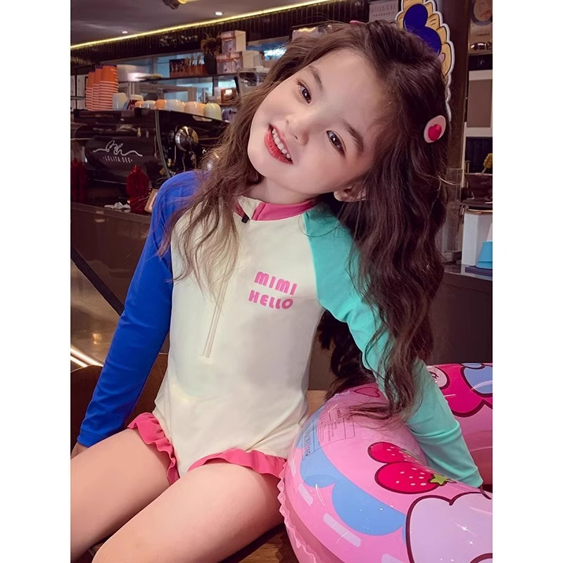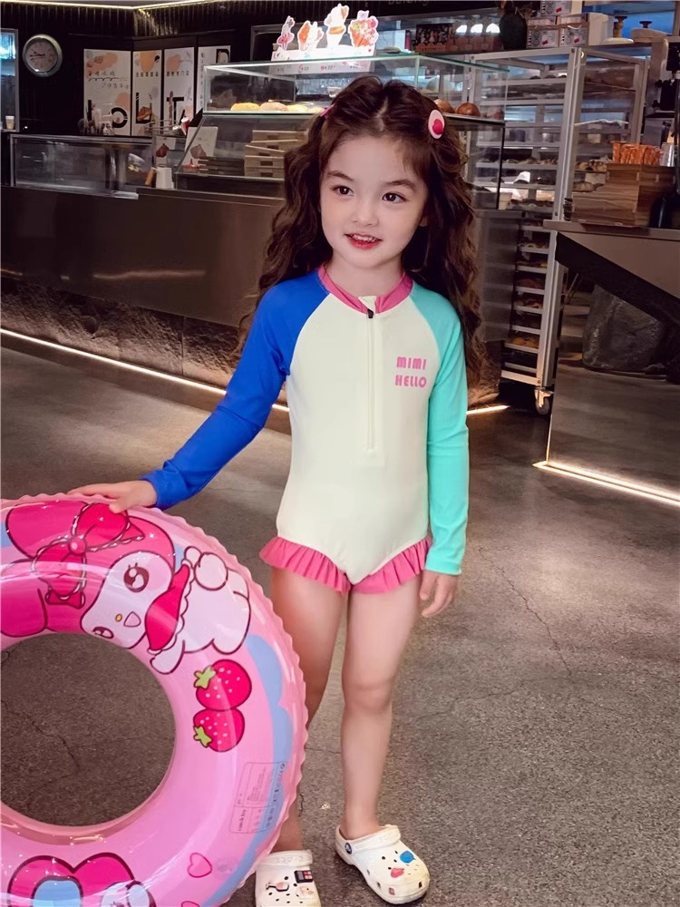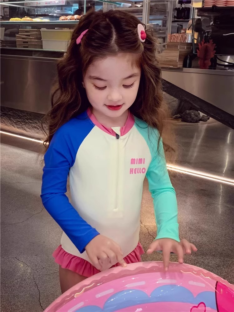 여자 수영복 여름 2025 새로운 스타일 소녀 도파민 수영복 휴일 어린이 긴 소매 수영복스토어 가기