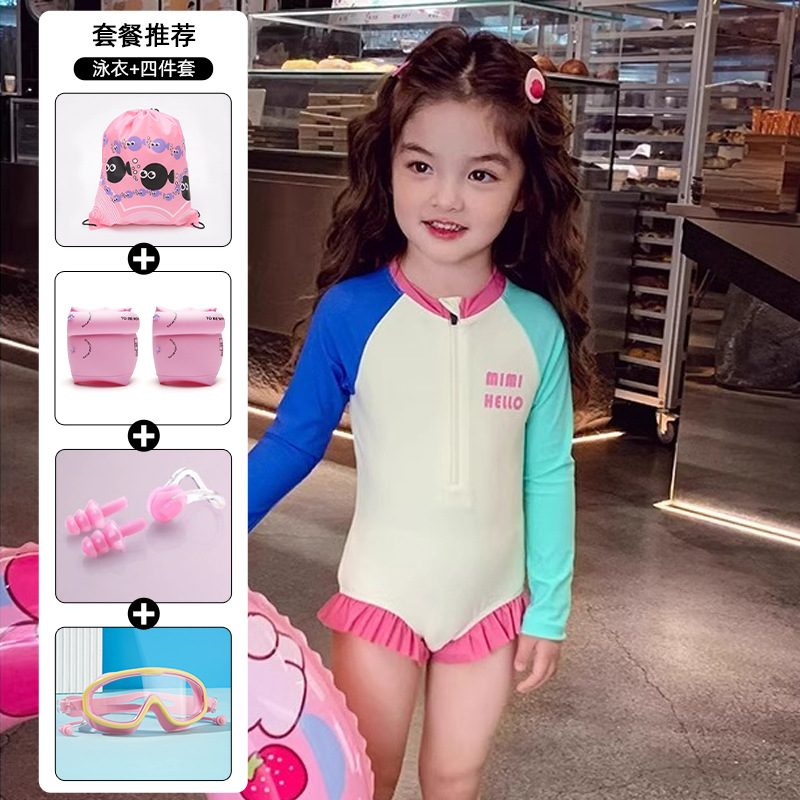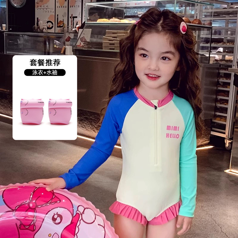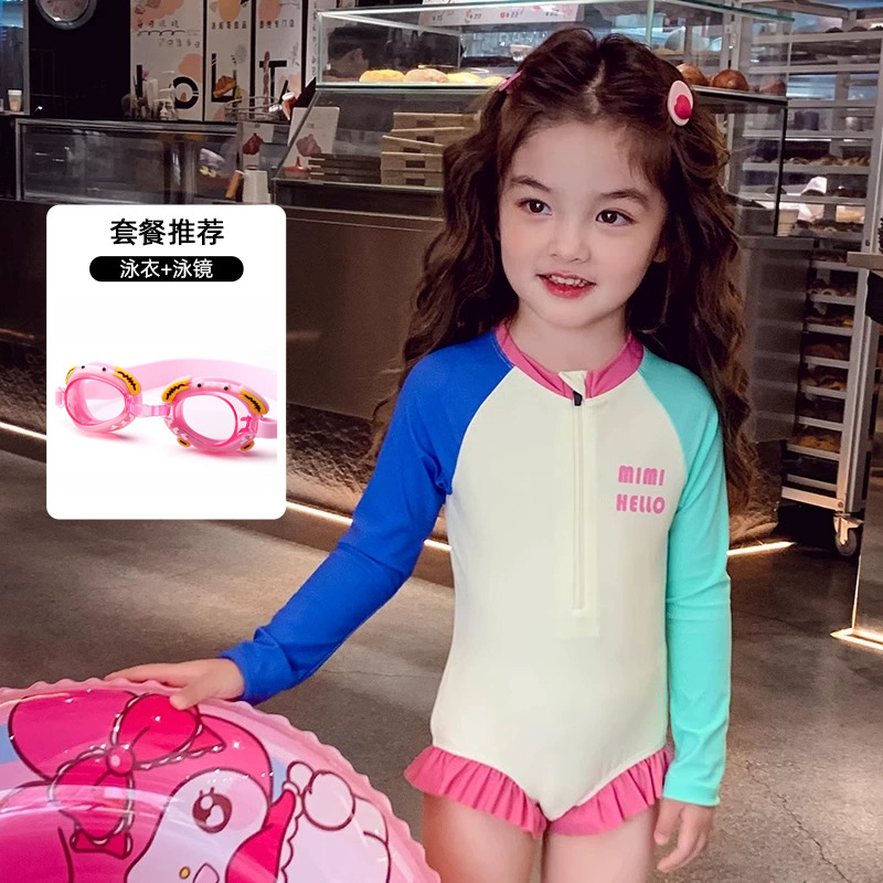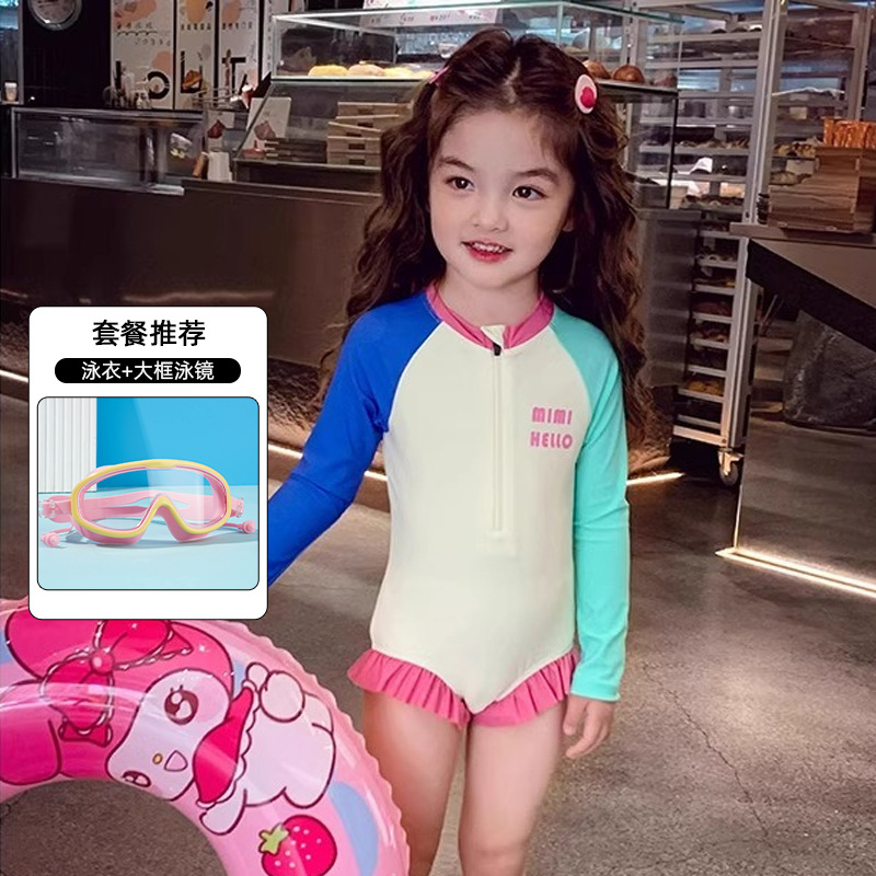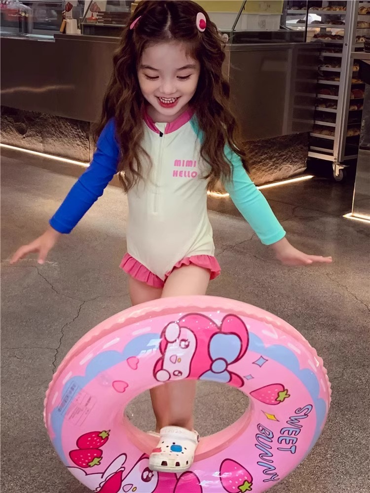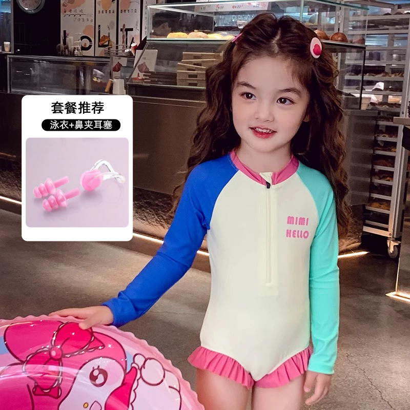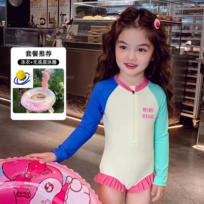 여자 수영복 여름 2025 새로운 스타일 소녀 도파민 수영복 휴일 어린이 긴 소매 수영복스토어 가기