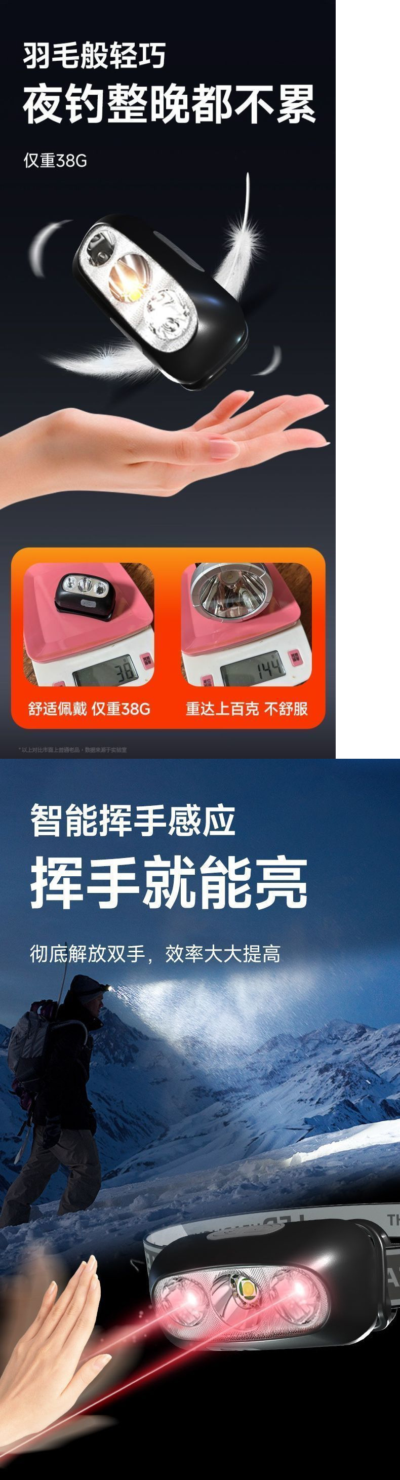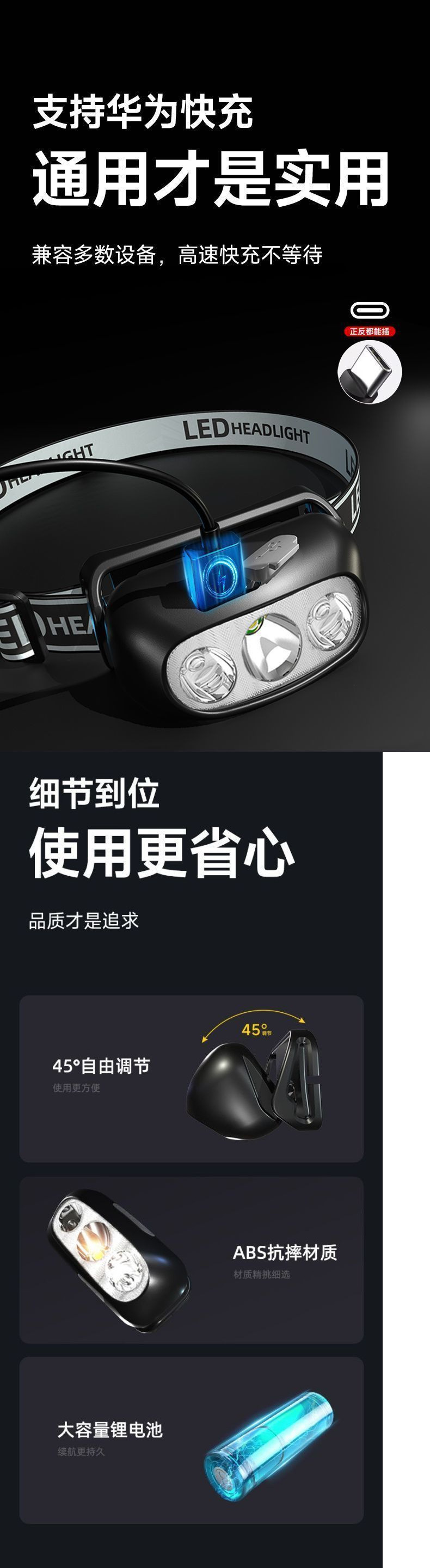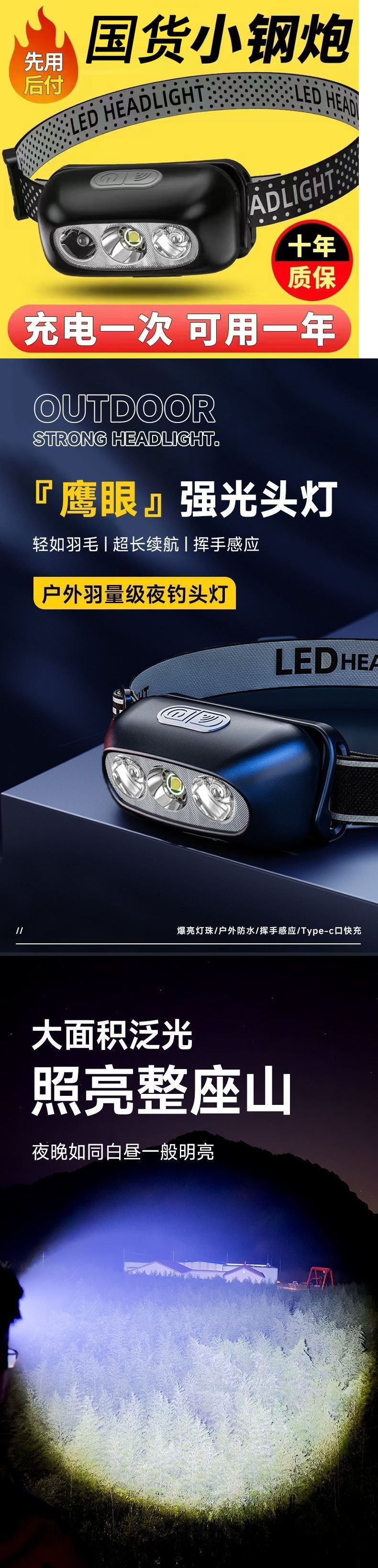 LED 강한 빛 슈퍼 밝은 헤드라이트 내구성 낚시 특수 초경량 유도 충전식 충전식 휴대용 헤드 장착