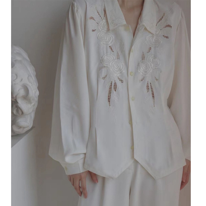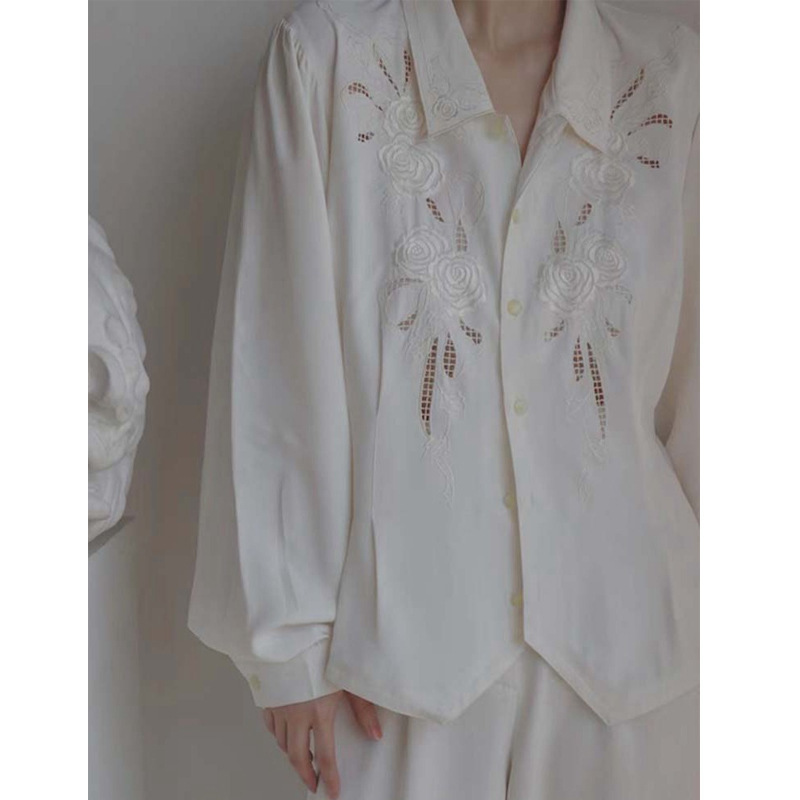 프랑스 레트로 자수 중공 긴 소매 셔츠 여성의 이른 봄 디자인 센스 니쉬 코트 스타일 셔츠 우아한 탑