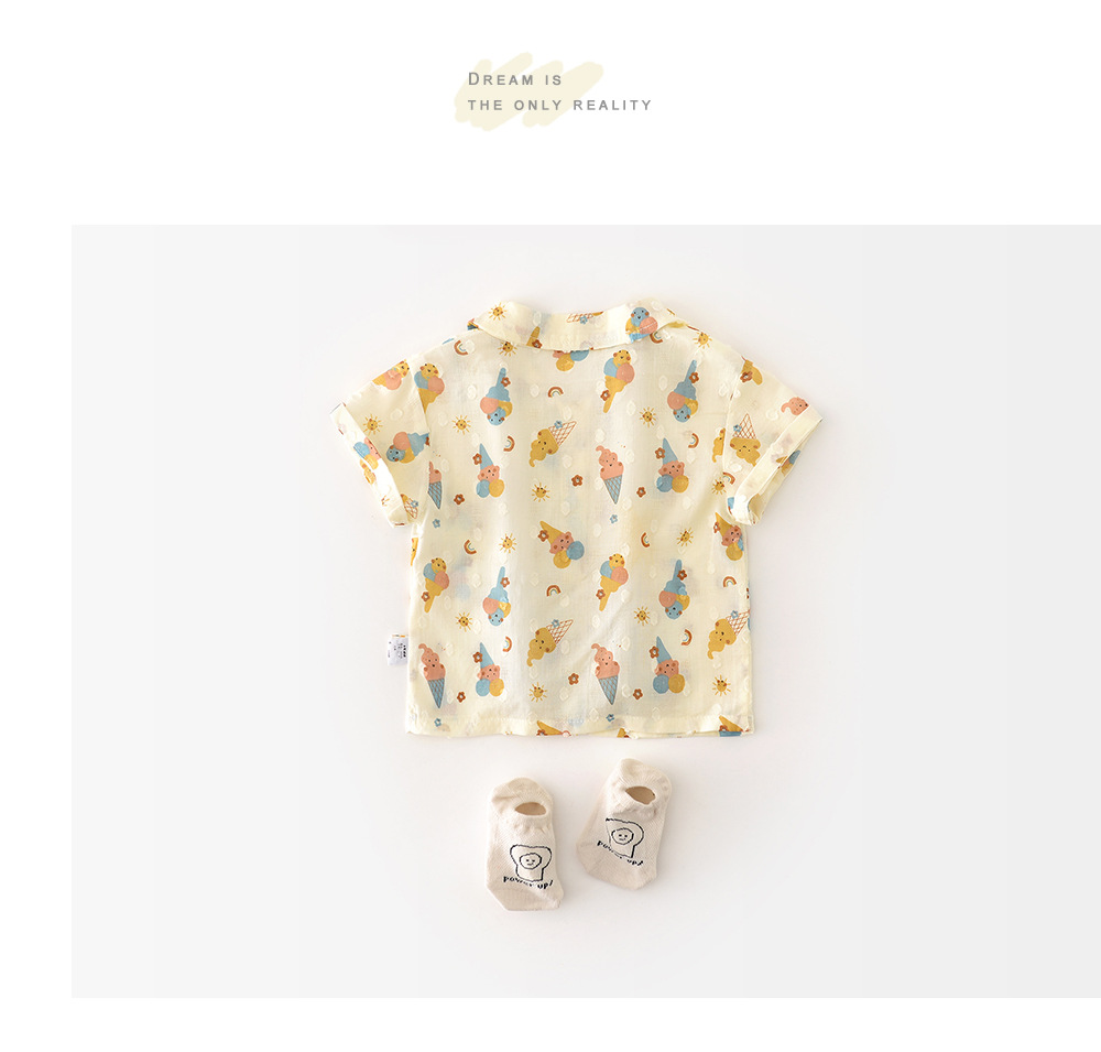 여름 새로운 어린이 만화 전체 인쇄 아이스크림 셔츠 아기와 유아 한국 스타일 짧은 소매 라탑 52526스토어 가기