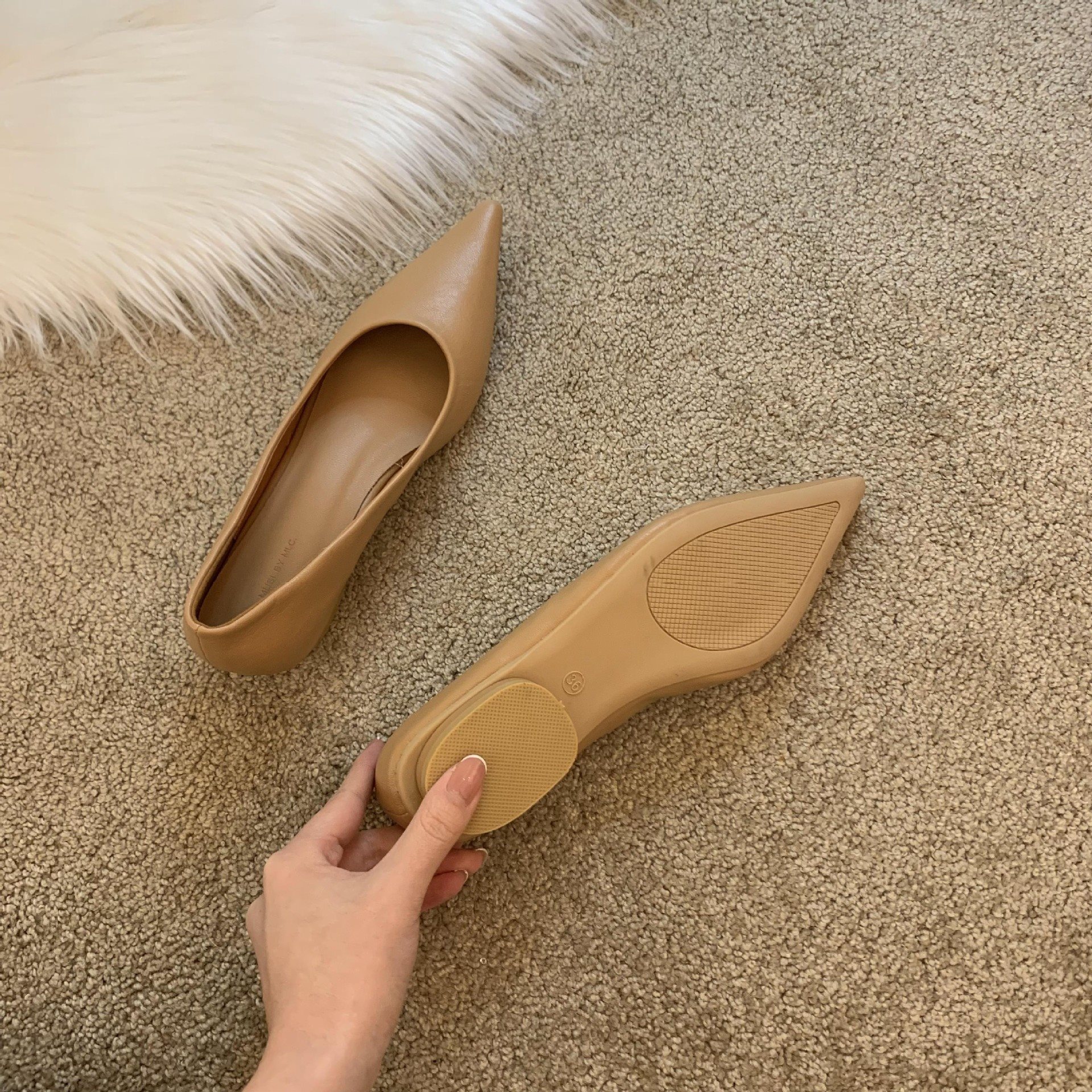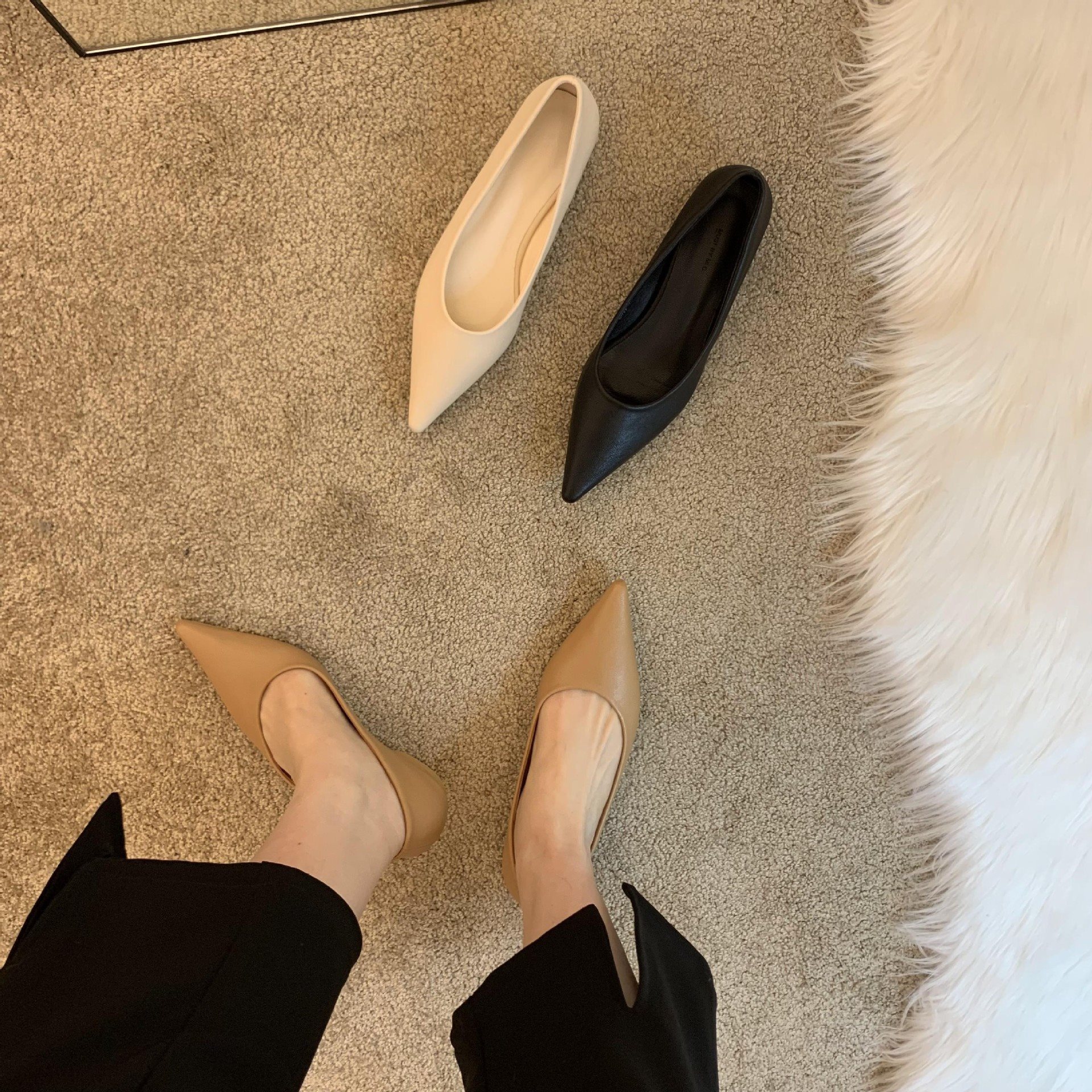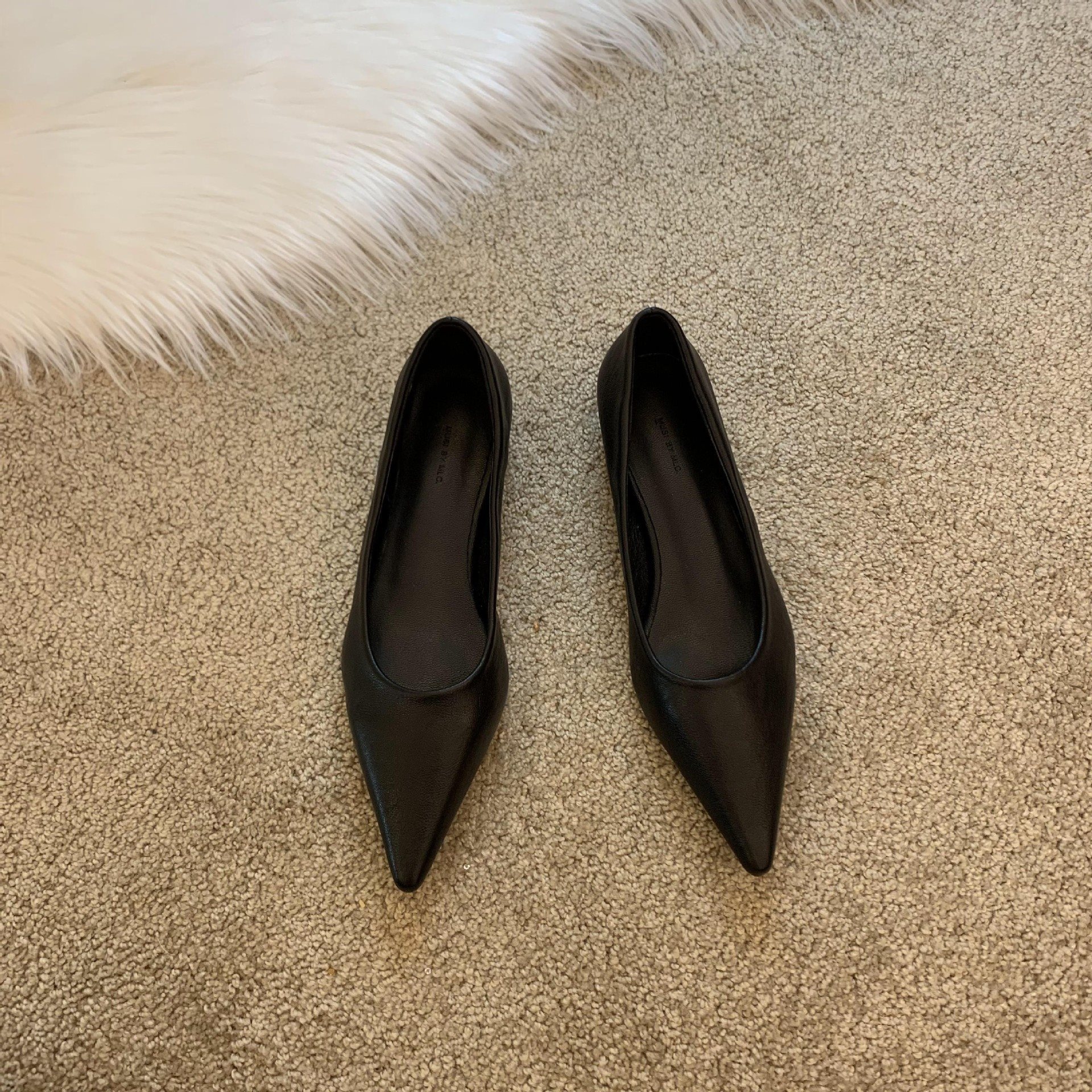 여성의 우아한 요정 낮은 굽 싱글 레이어 신발 여성용 얕은 입 부드러운 가죽 할머니의 발 뒤꿈치 낮은 2024 새 봄스토어 가기