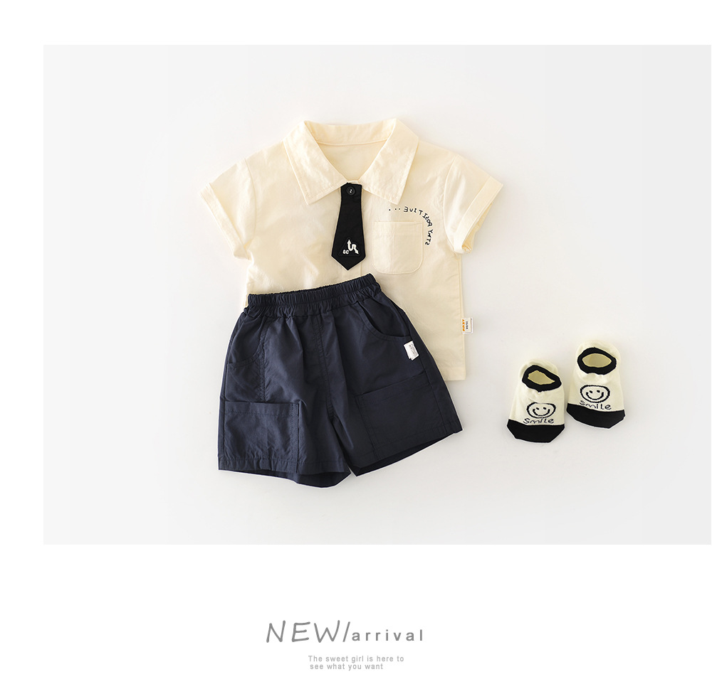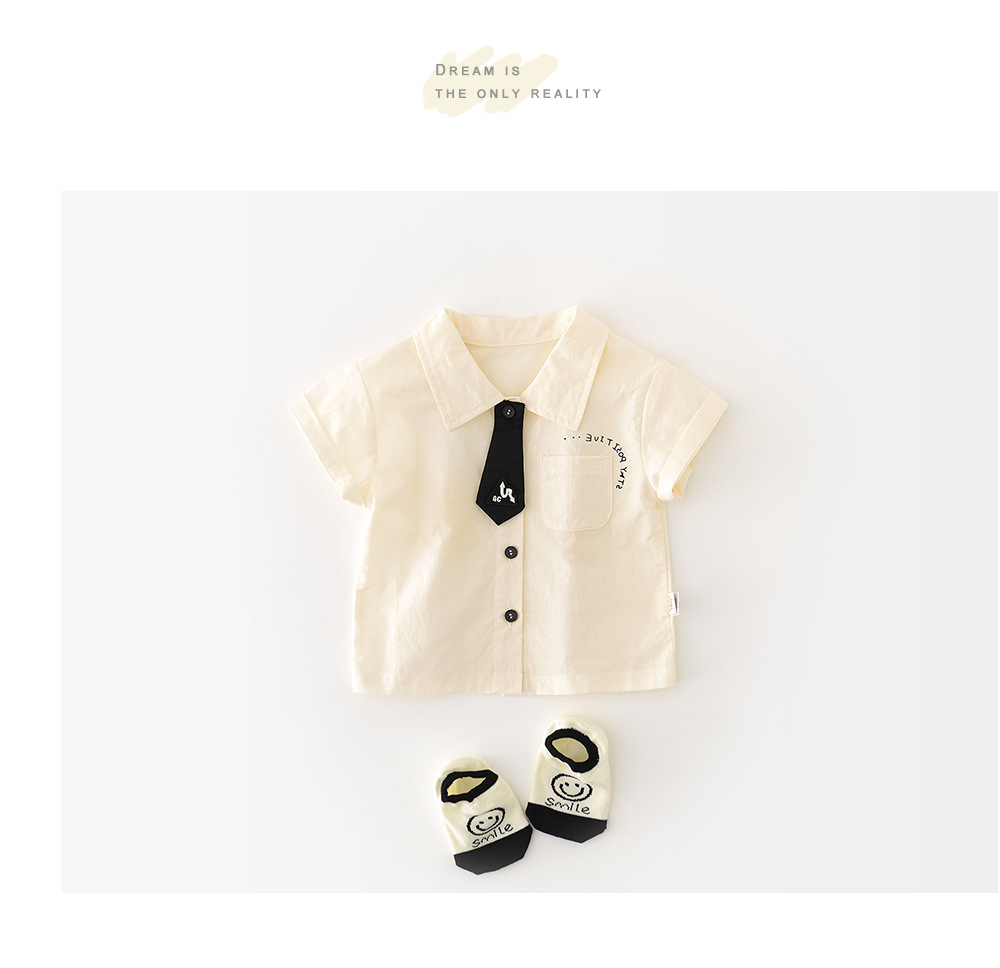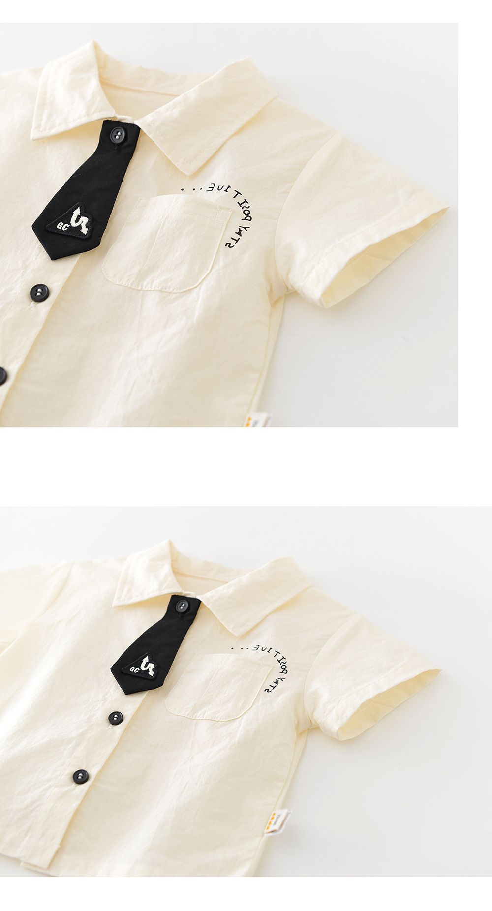 이유지 의류 2025 여름 한국식 어린이 편지 옷깃 탑 아기 반팔 넥타이 셔츠 52073