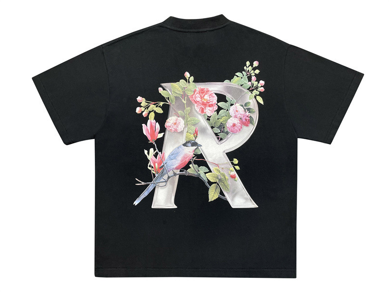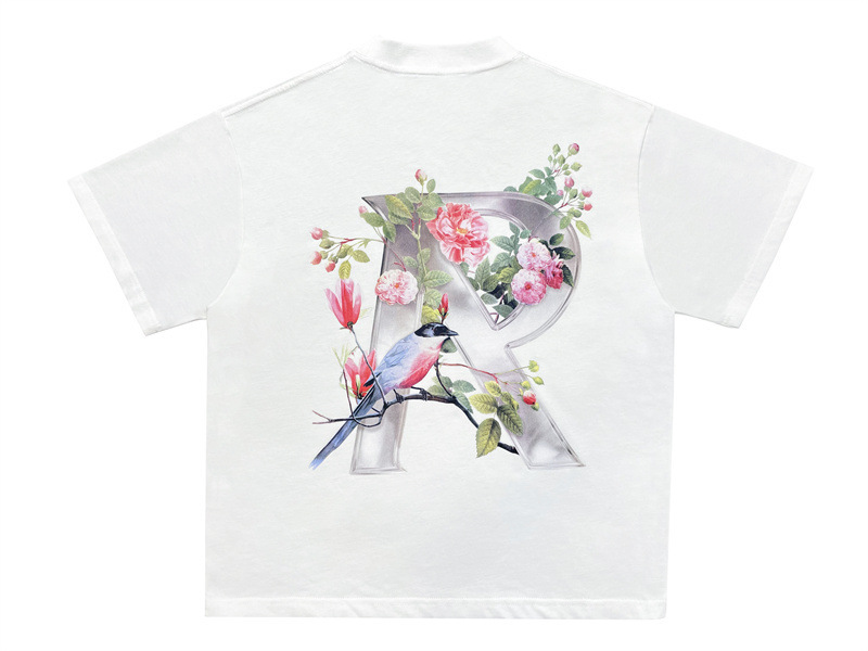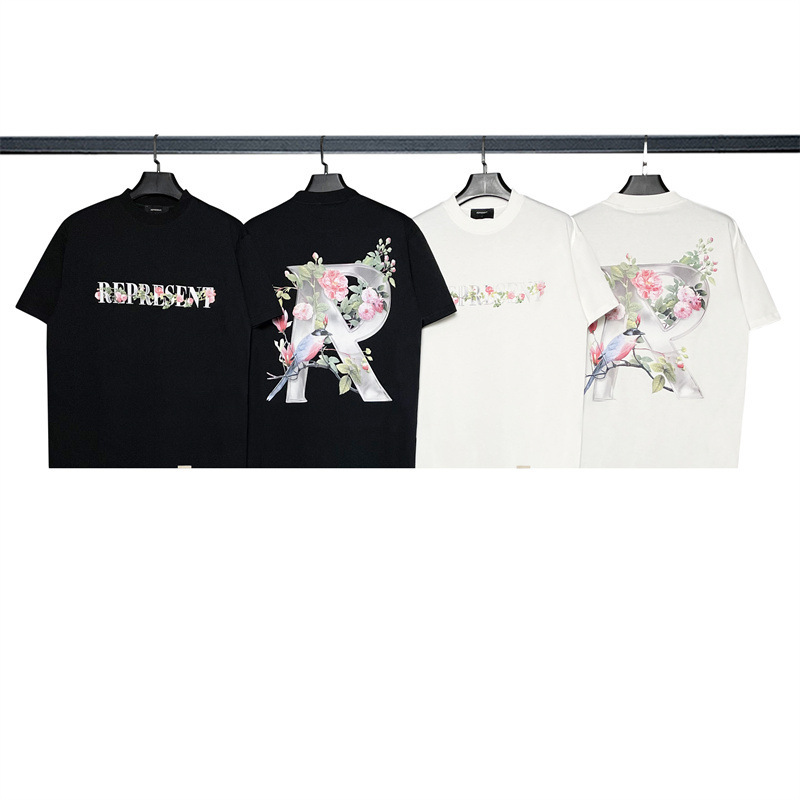 올바른 버전 예측 트랙 꽃 23SS 알파벳 인쇄 짧은 소매 하이 스트리트 커플 느슨한 티셔츠