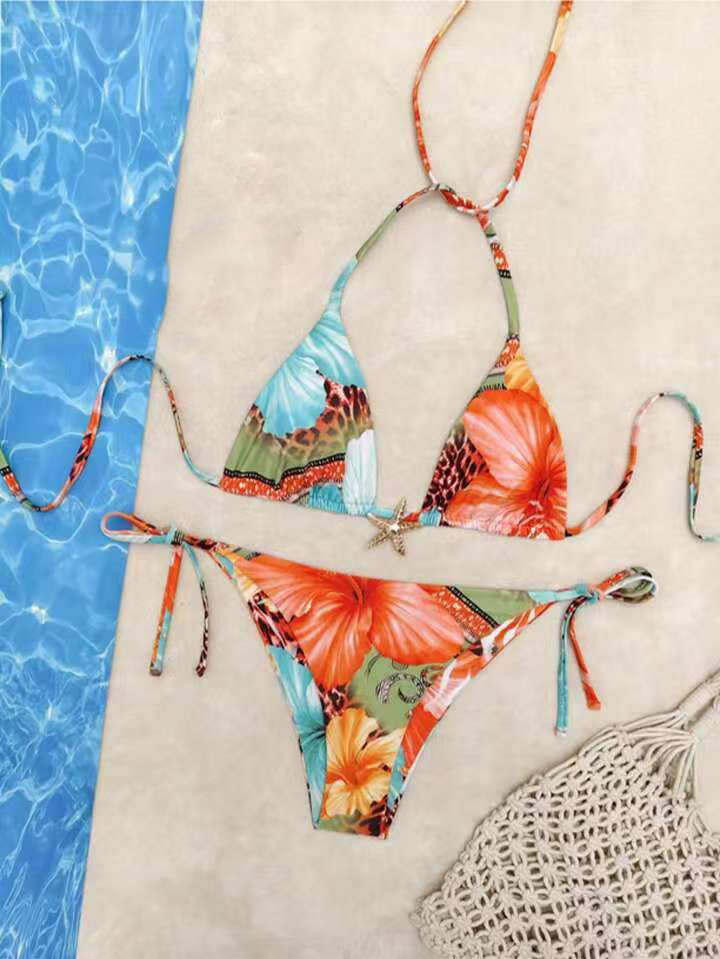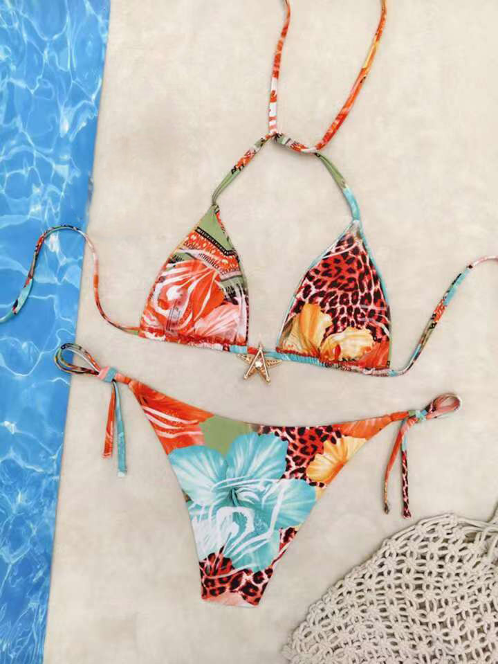 2025 새로운 유럽과 미국의 대외 무역 인쇄 레이스 업 섹시한 높은 허리 비키니 수영복 여성