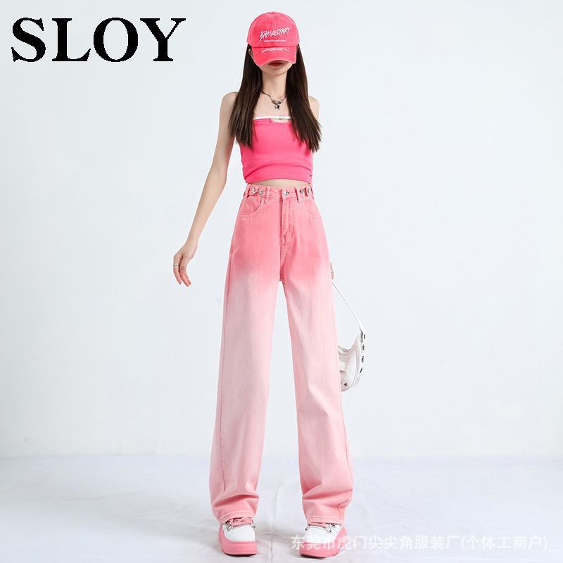 넓은 다리 바지 여성의 높은 허리, 2025 새로운 봄과 여름 슬림 스트레이트 청바지 미국 스타일 하이 스트리트 컬러 바지스토어 가기