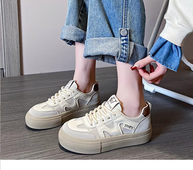 두꺼운 단독 흰색 신발 여성 2025 여름 새로운 메쉬 통기성 로우 탑 캐주얼 보드 신발 두꺼운 단독 올매치 플랫폼 신발스토어 가기