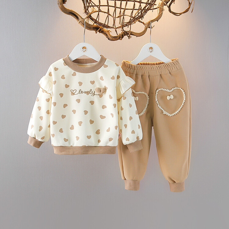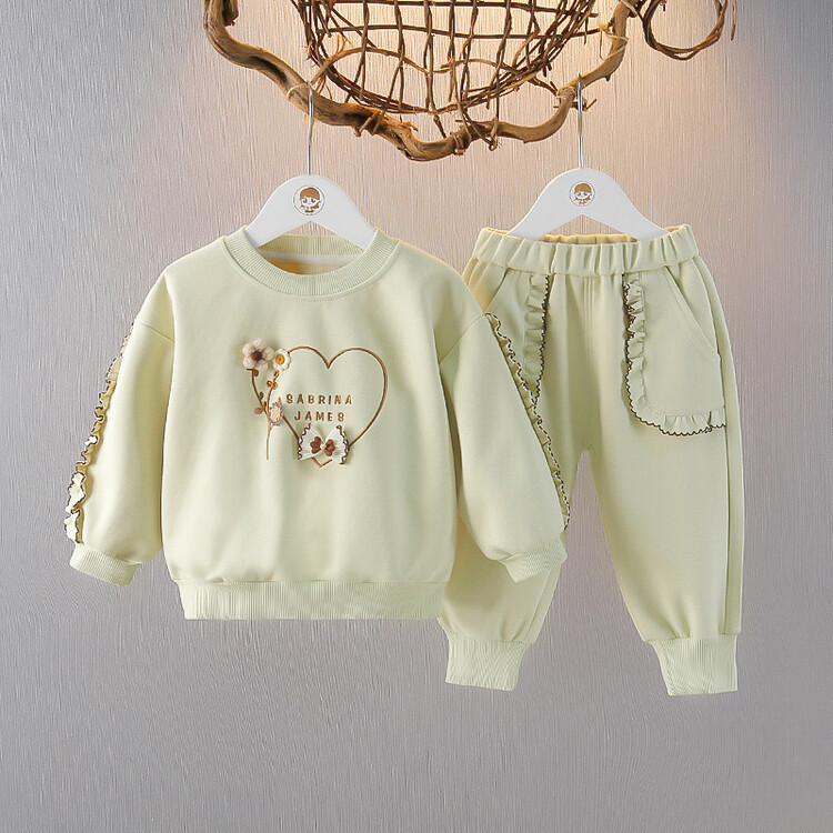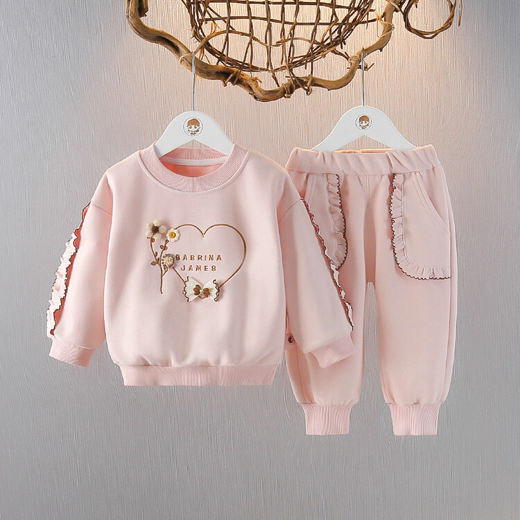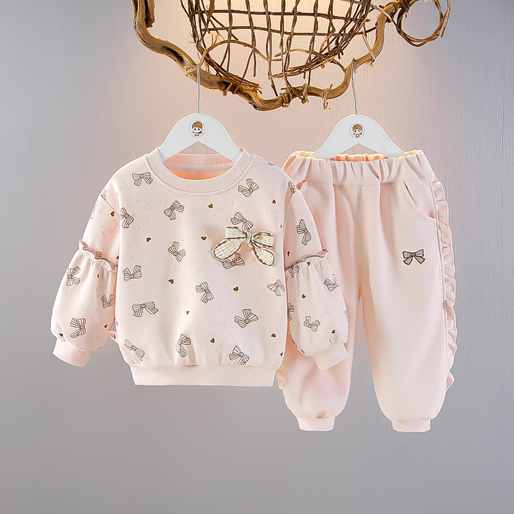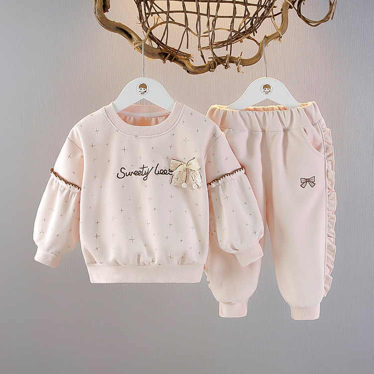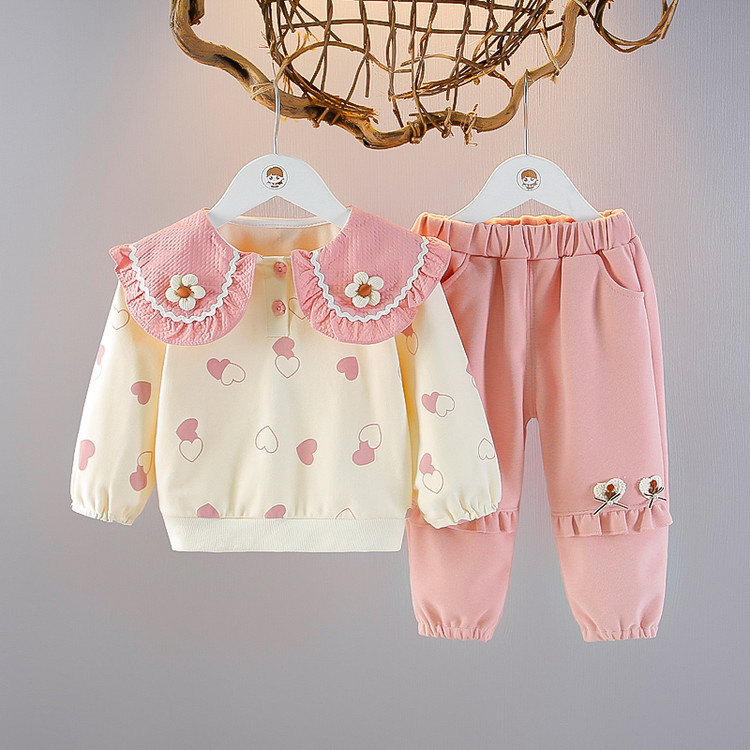 아기 소녀 봄 스포츠 두 조각 소녀 봄과 가을 새로운 어린이 세트 스타일 스웨트 바지 세트 트렌디스토어 가기