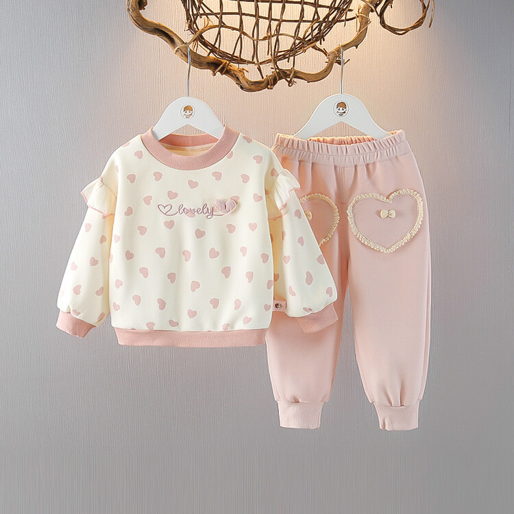 • 핑크색 스웨트셔츠+바지 투피스 세트