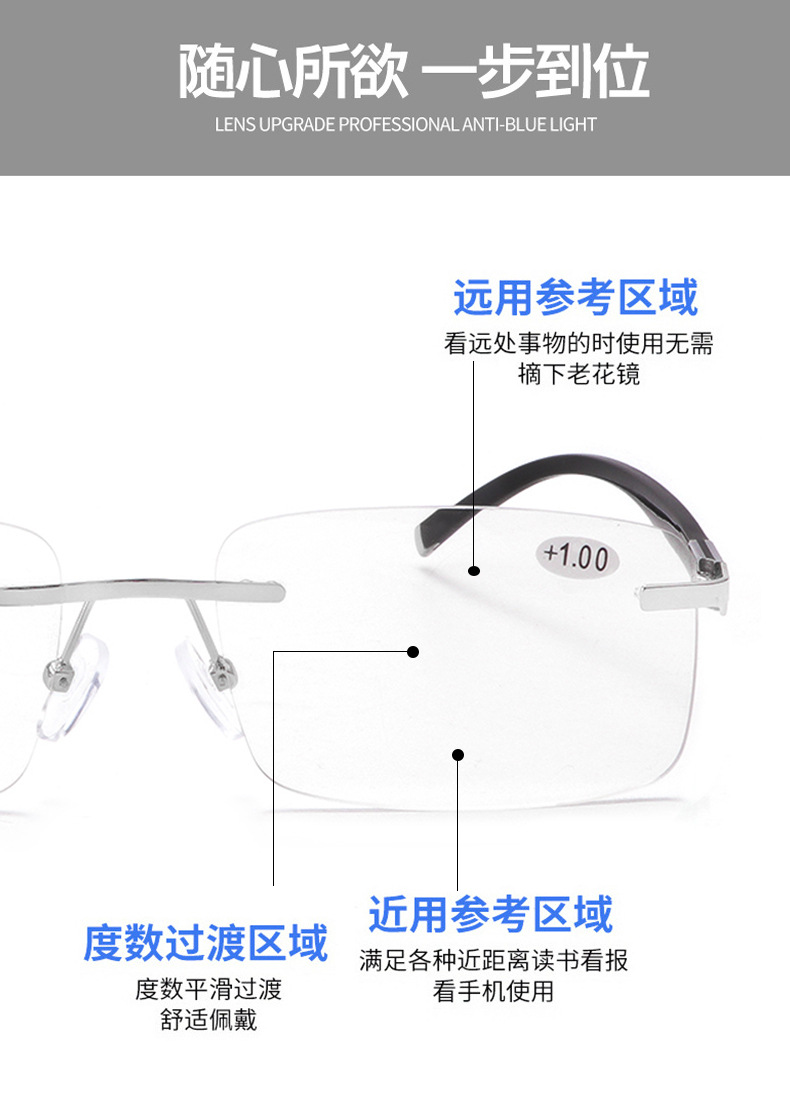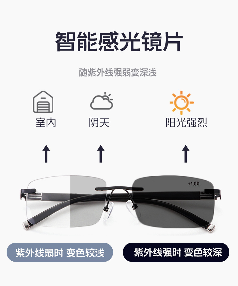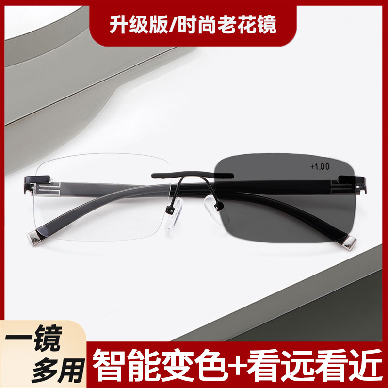 색상 변경 노안 안경 남성 프로그레시브 다 초점 이중 사용 노안 안경 희귀 한 안티 블루 라이트 노안 안경