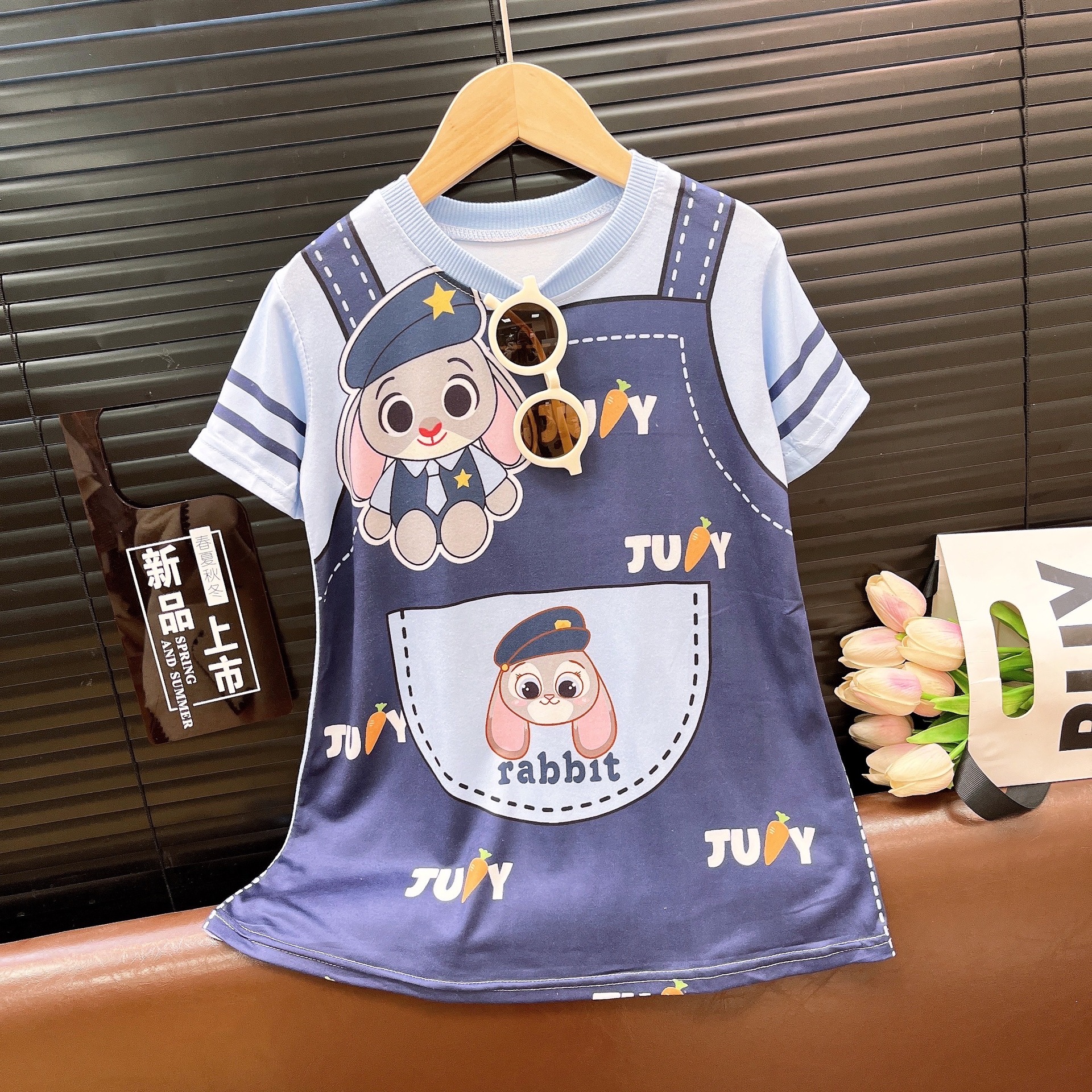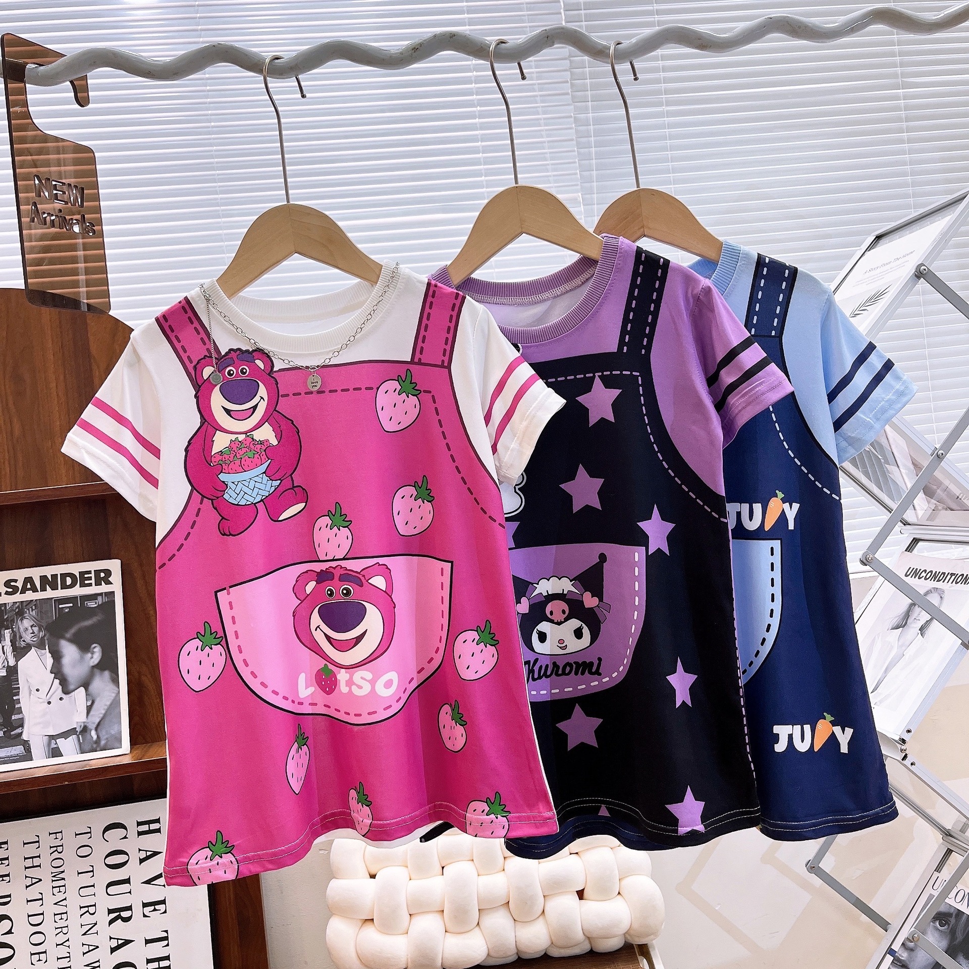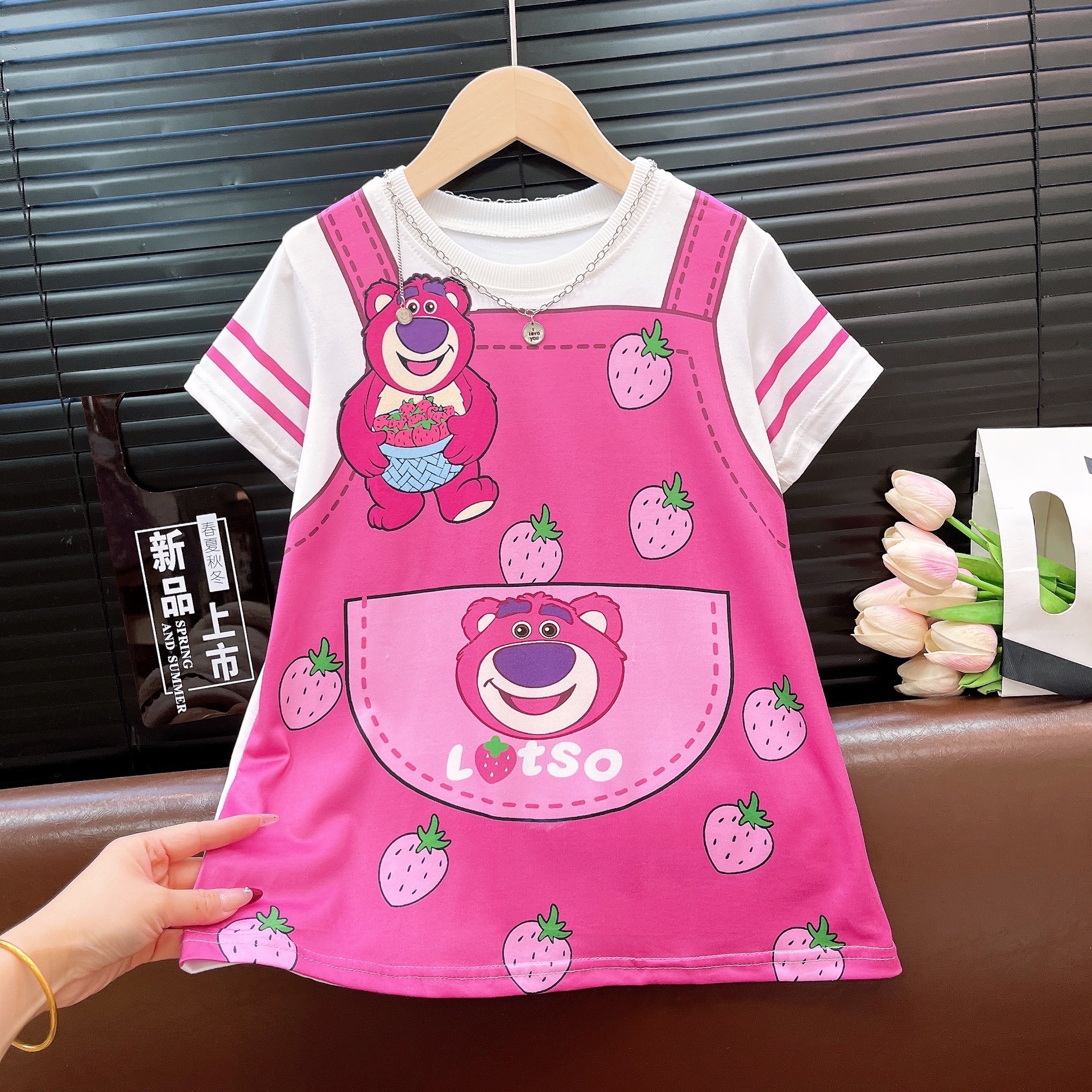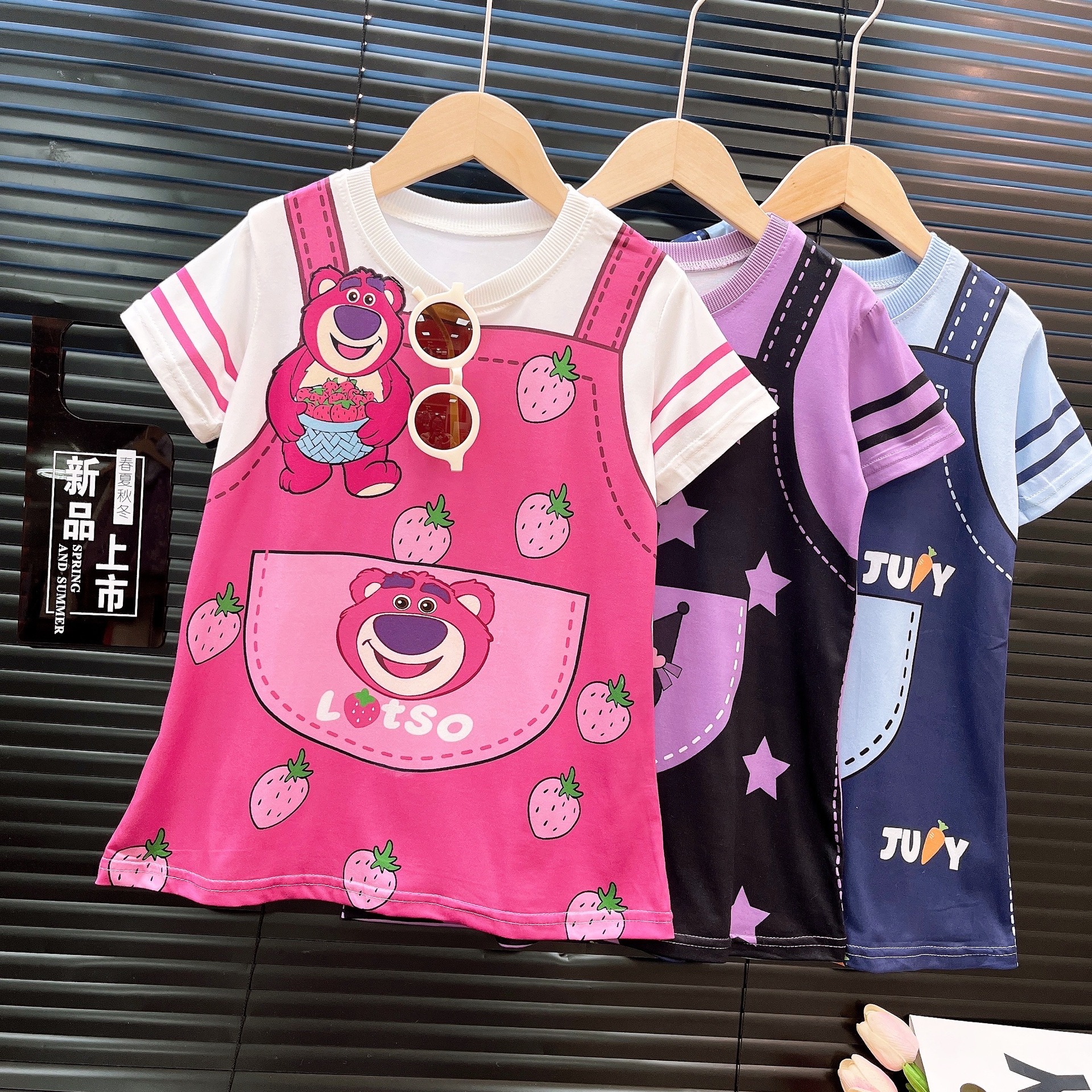여름 새로운 도착 원피스 소녀 아기 소녀 패션 귀여운 만화 패턴 티셔츠 스커트 어린이 옷 유행스토어 가기