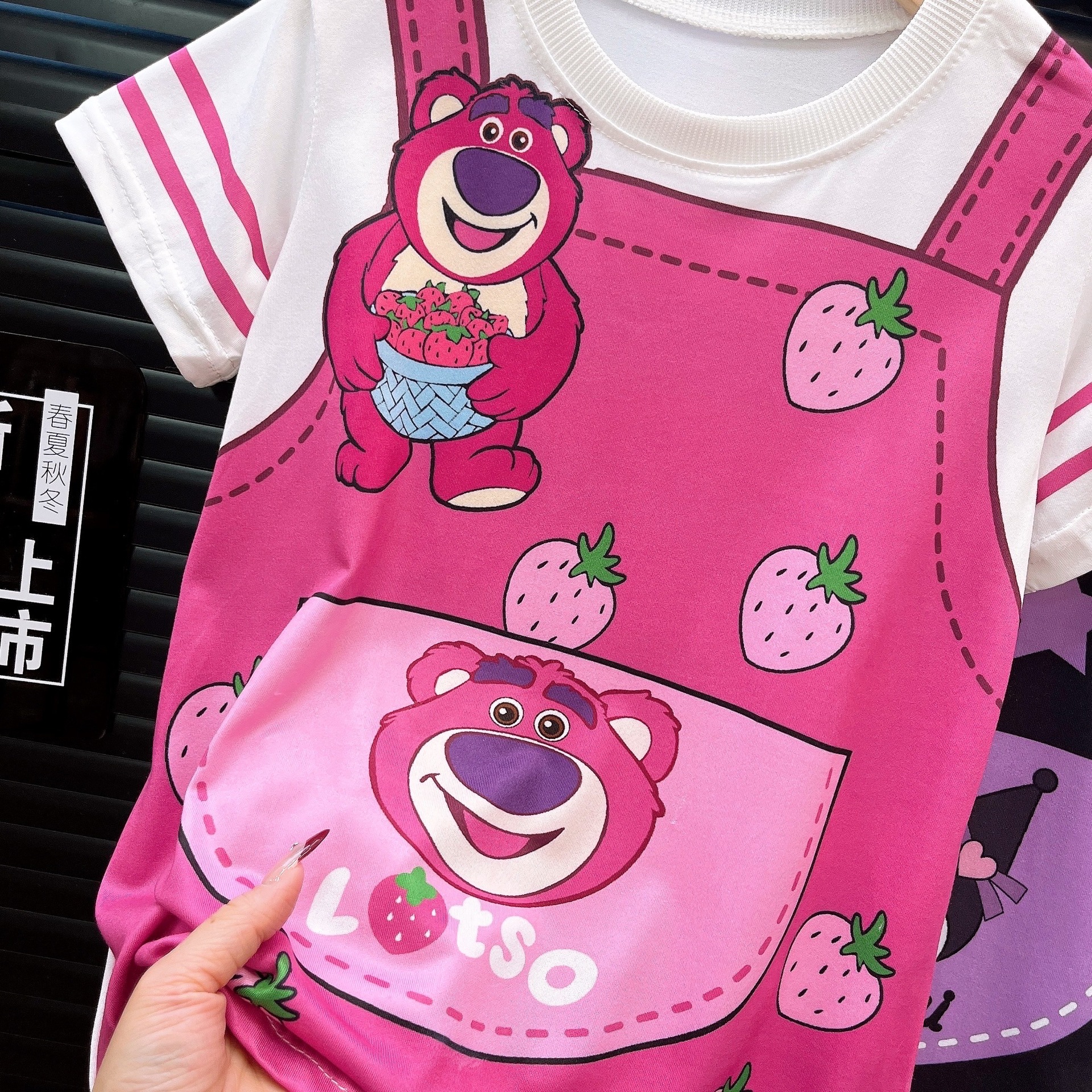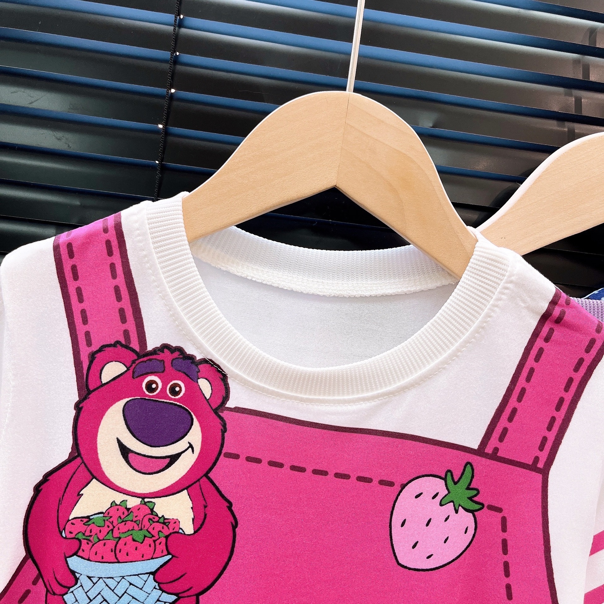 여름 새로운 도착 원피스 소녀 아기 소녀 패션 귀여운 만화 패턴 티셔츠 스커트 어린이 옷 유행
