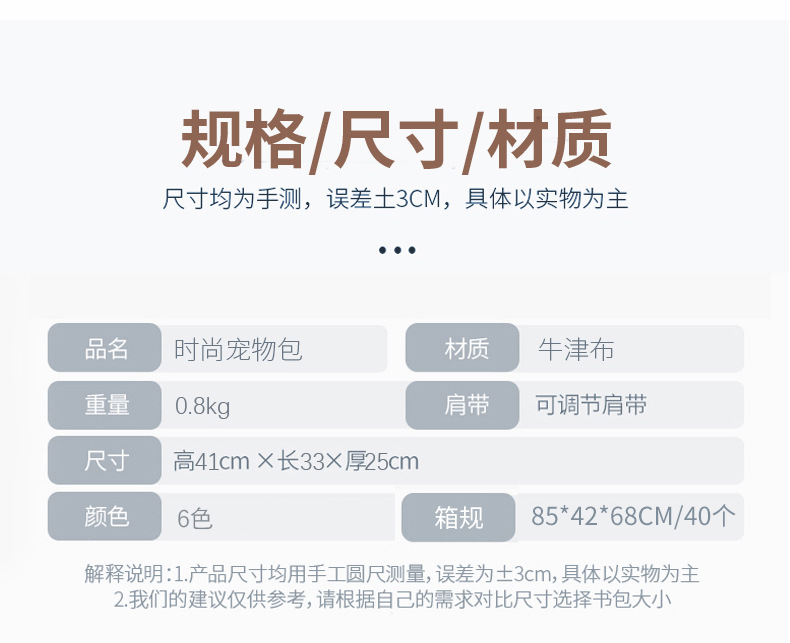 공장 직접 공급 통기성 및 편리한 고양이 가방 접이식 어깨 높은 색상 가치 대용량 애완 동물 가방