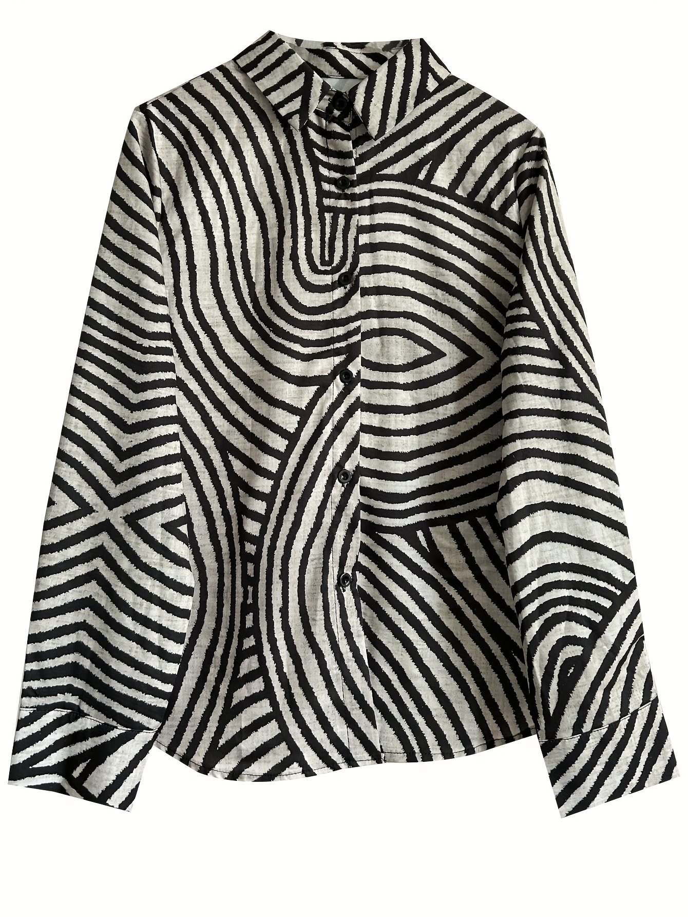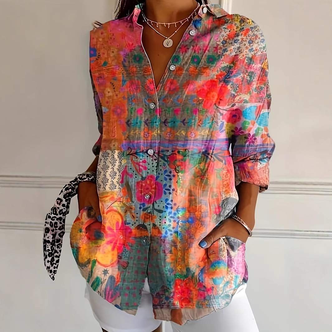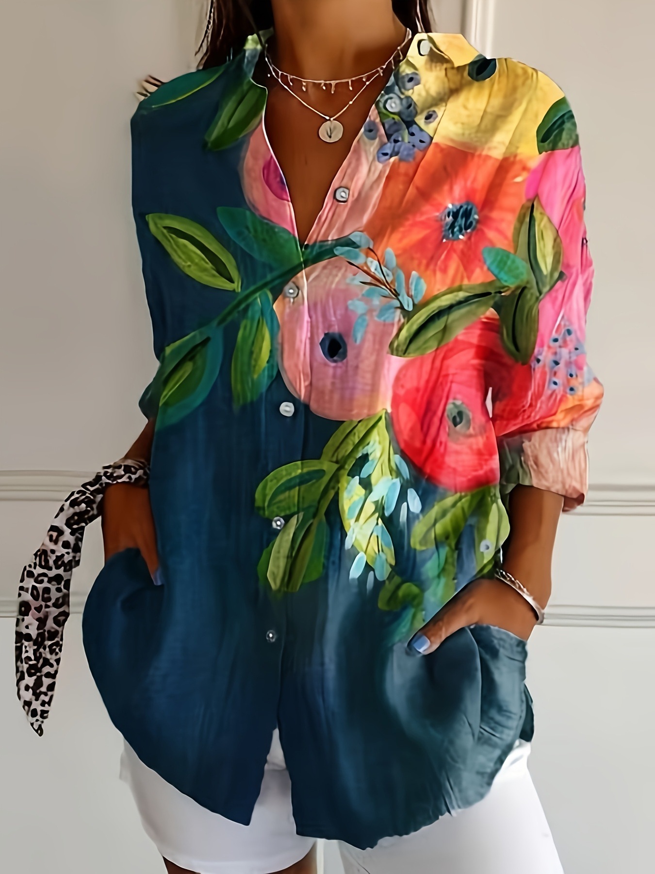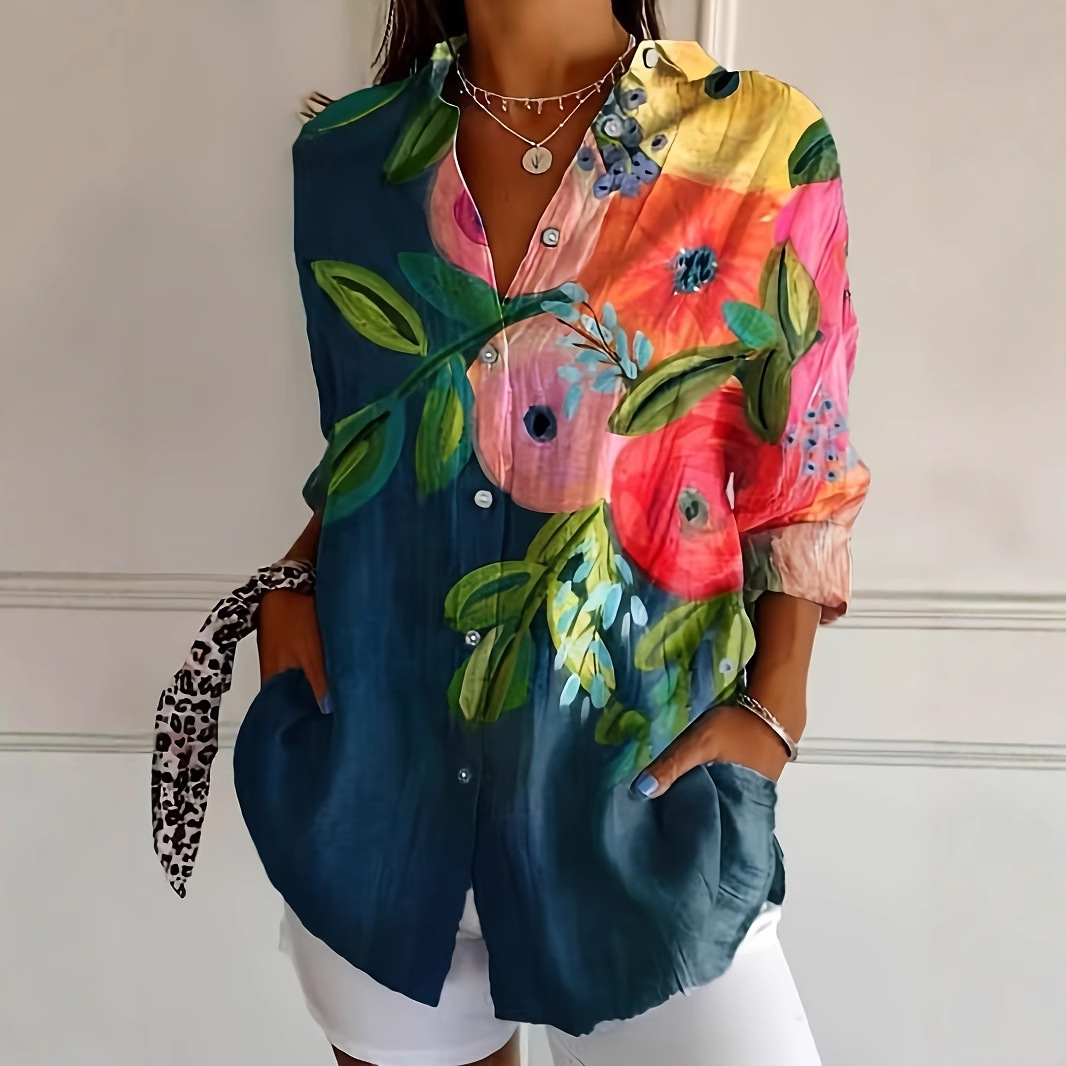 유럽과 미국의 아마존 신상 패션 루즈핏 프린트 캐주얼 휴가 셔츠 여성 버튼 셔츠 탑