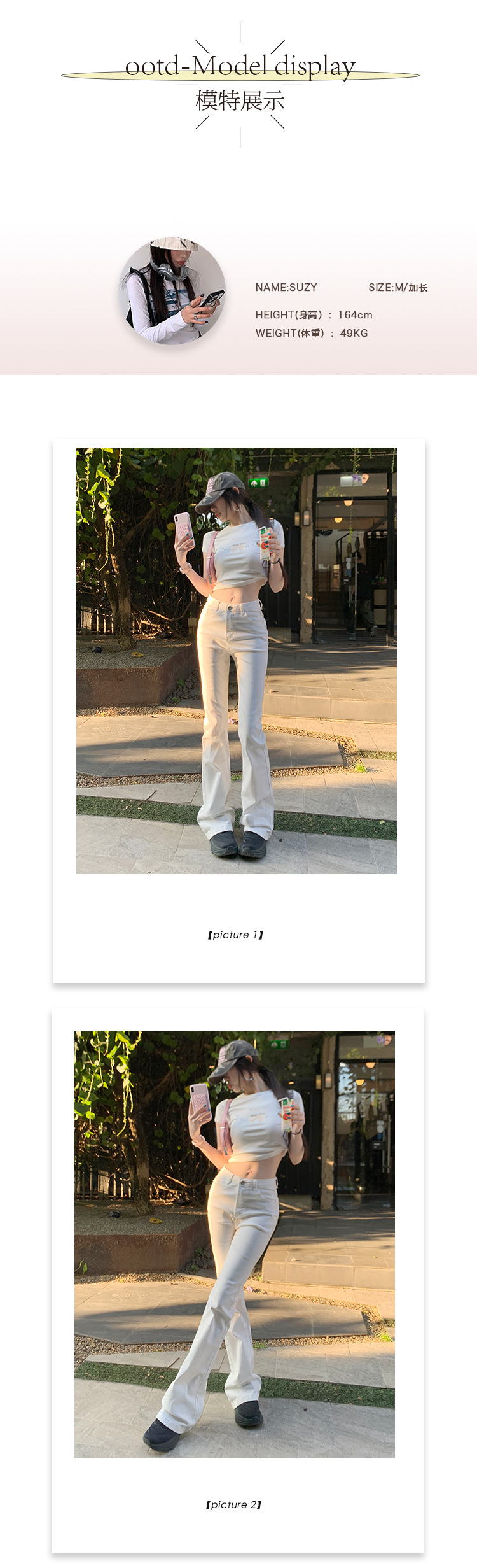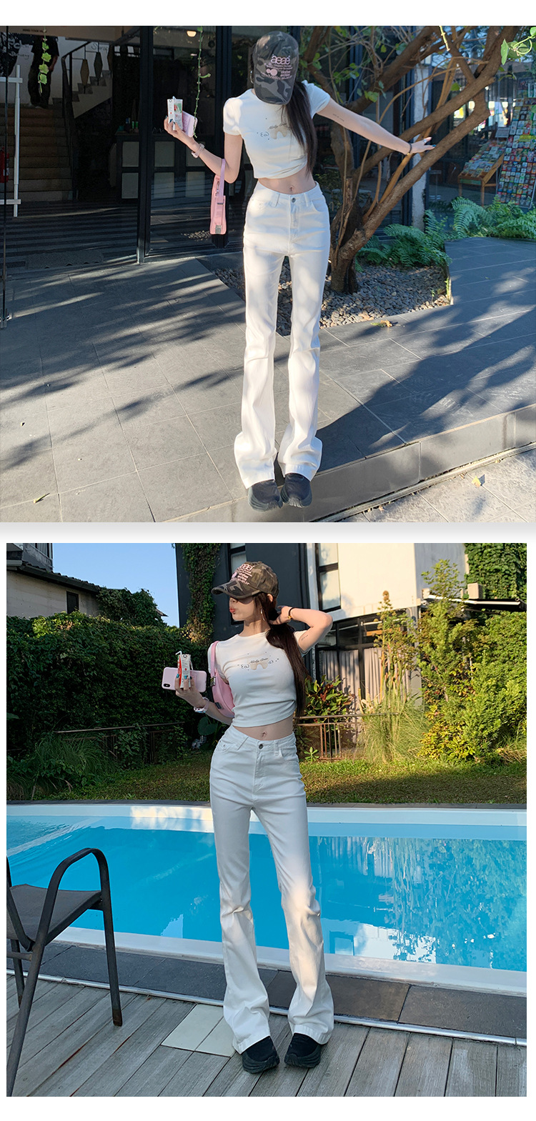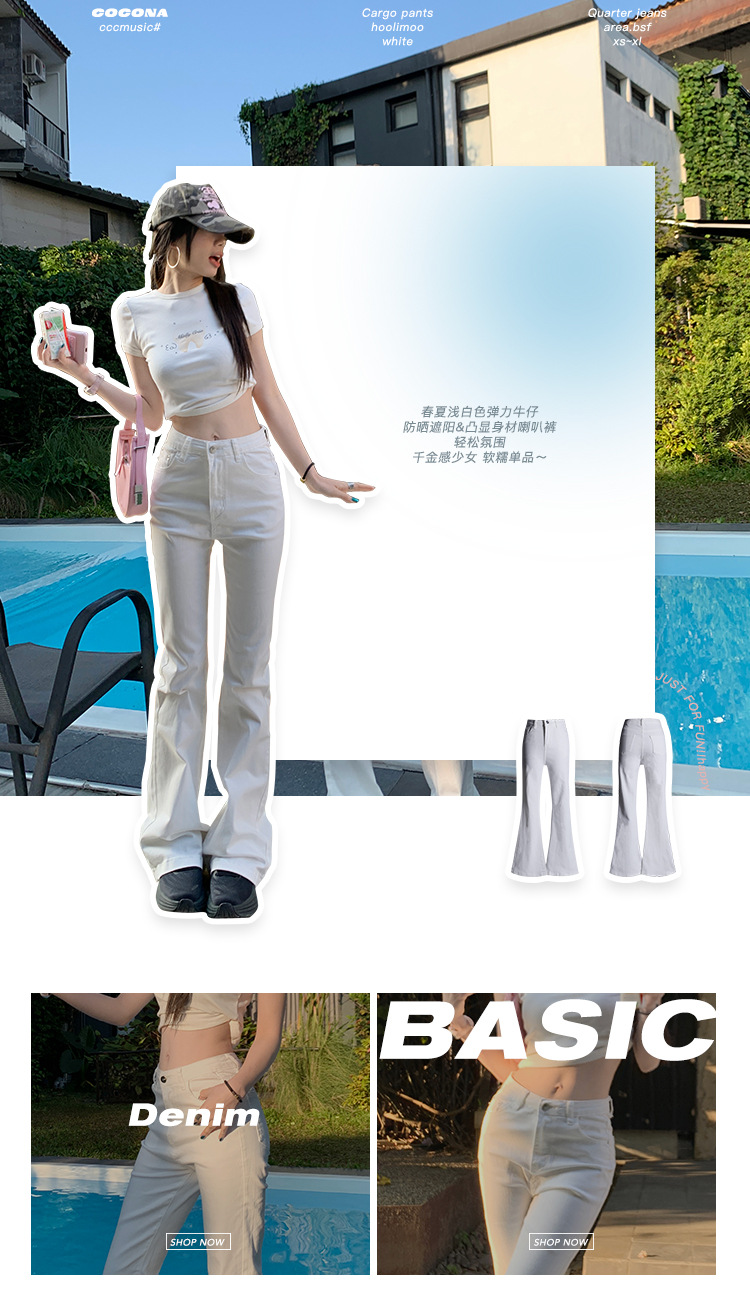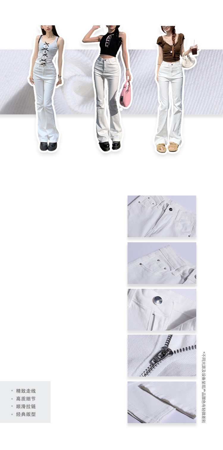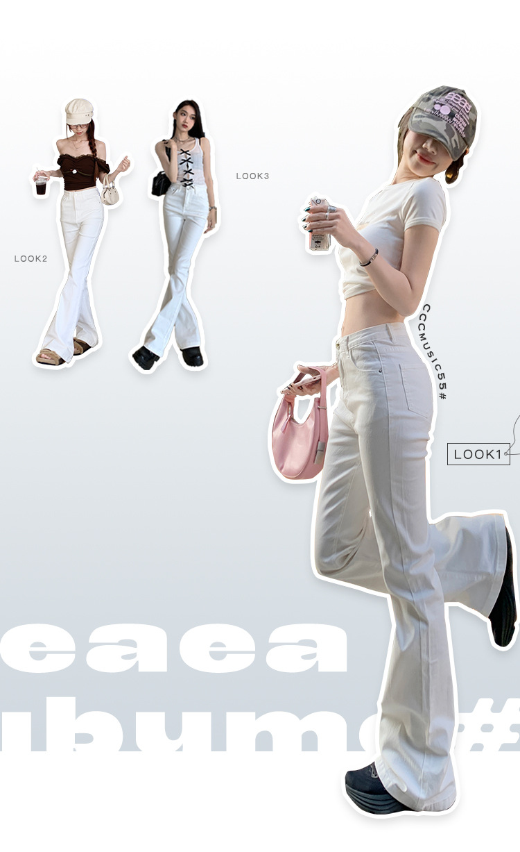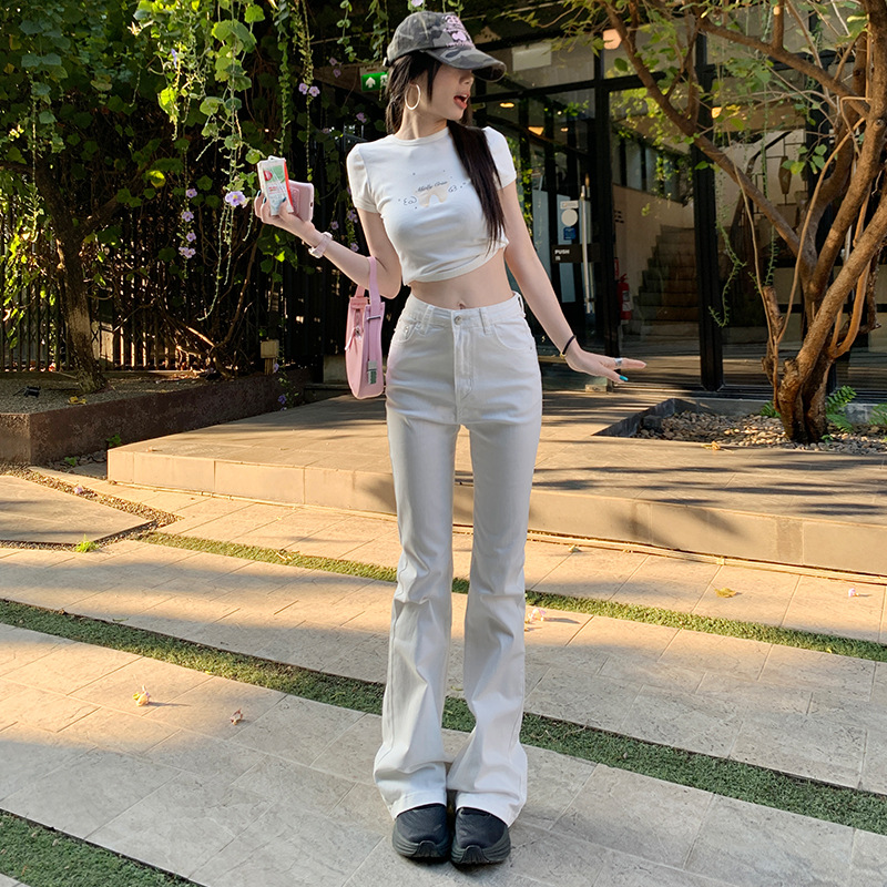 Micro-La Jeans 여성용 2025 년 봄과 가을 새로운 화이트 하이 웨이스트 슬림 핏 슬리밍 말굽 바지스토어 가기