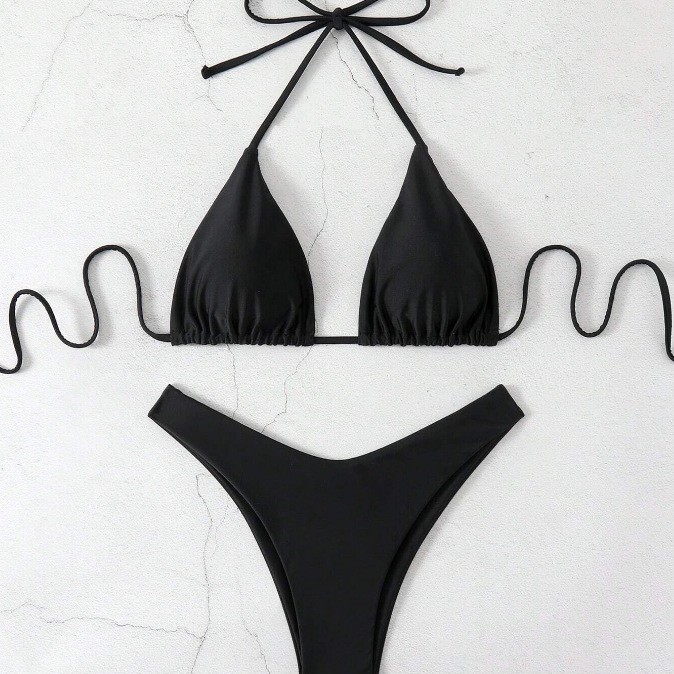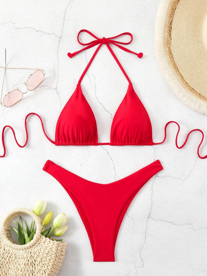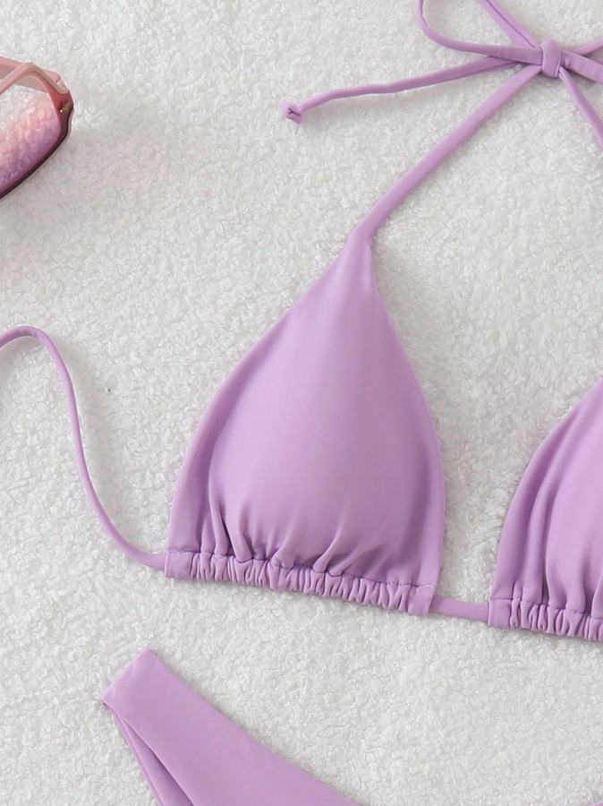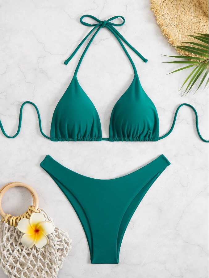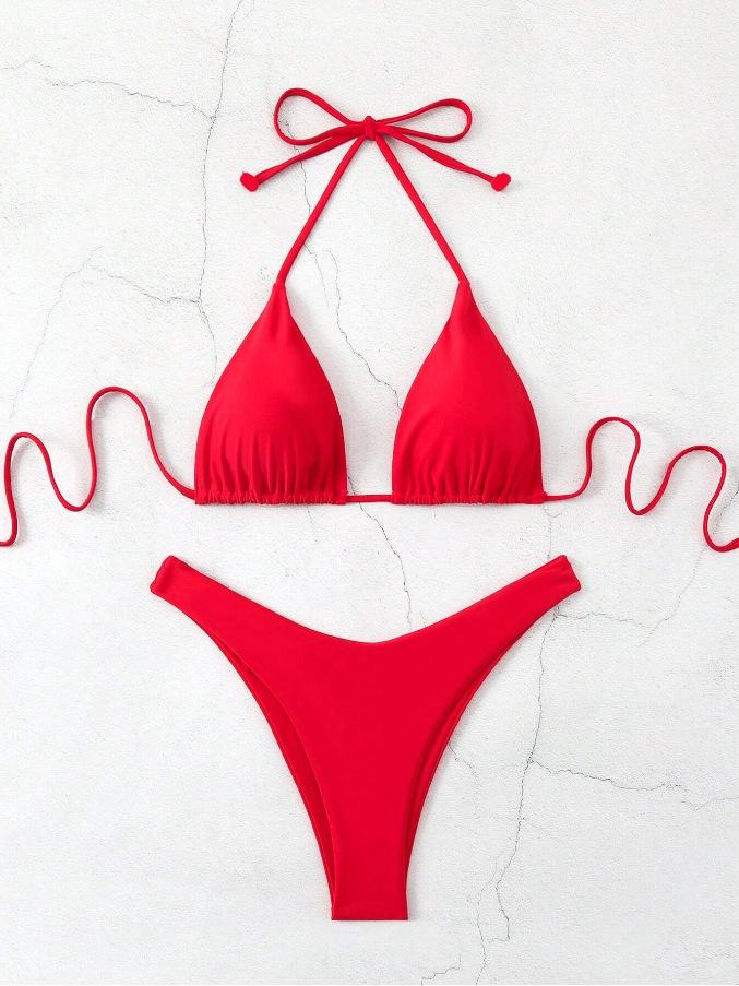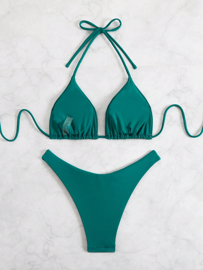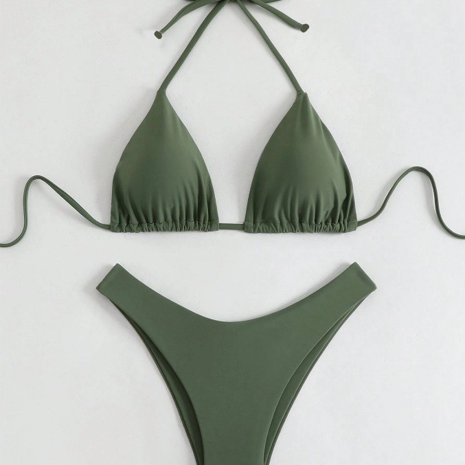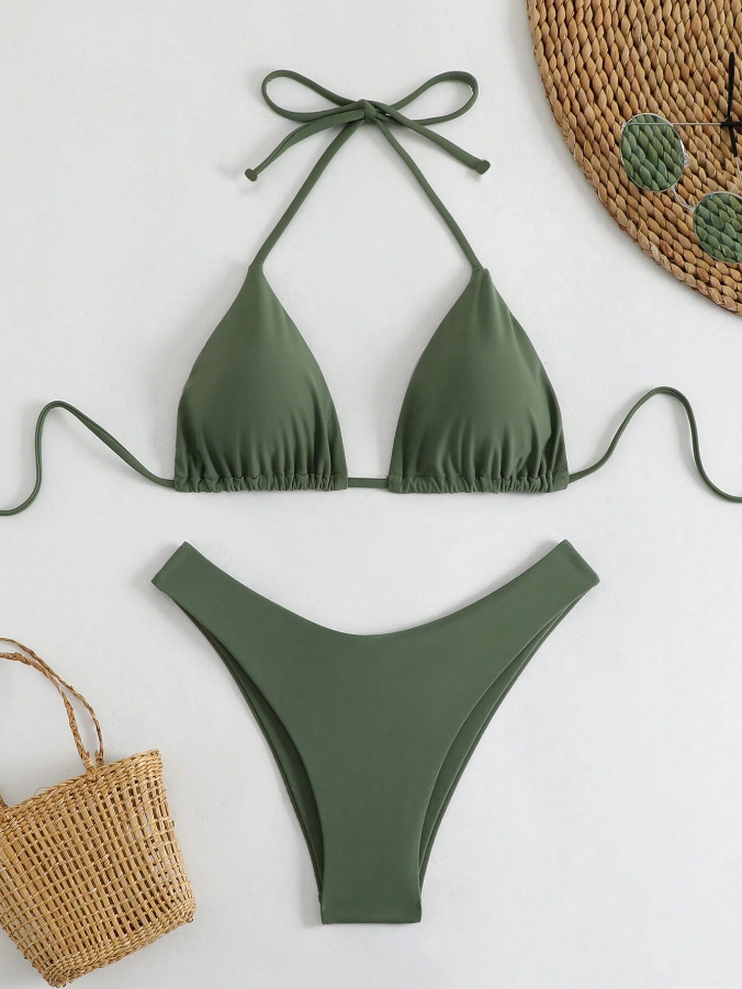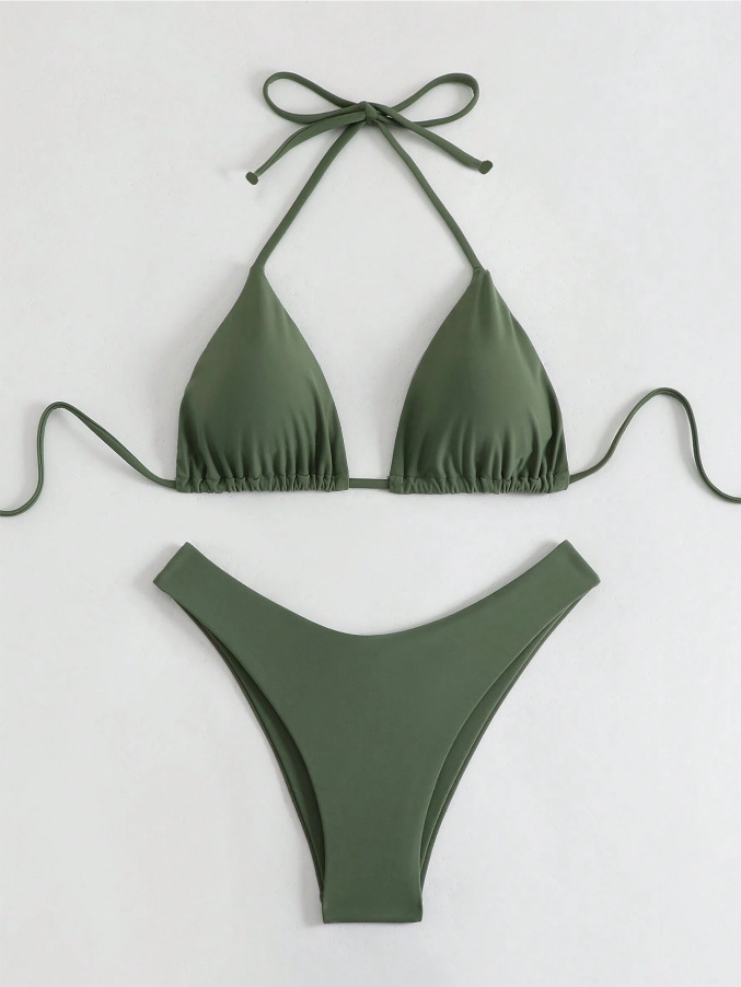 유럽과 미국의 새로운 수영복 여성 아마존 솔리드 컬러 비치 비키니 하이 허리 레이스 업 대외 무역 AliExpress 섹시한 수영복