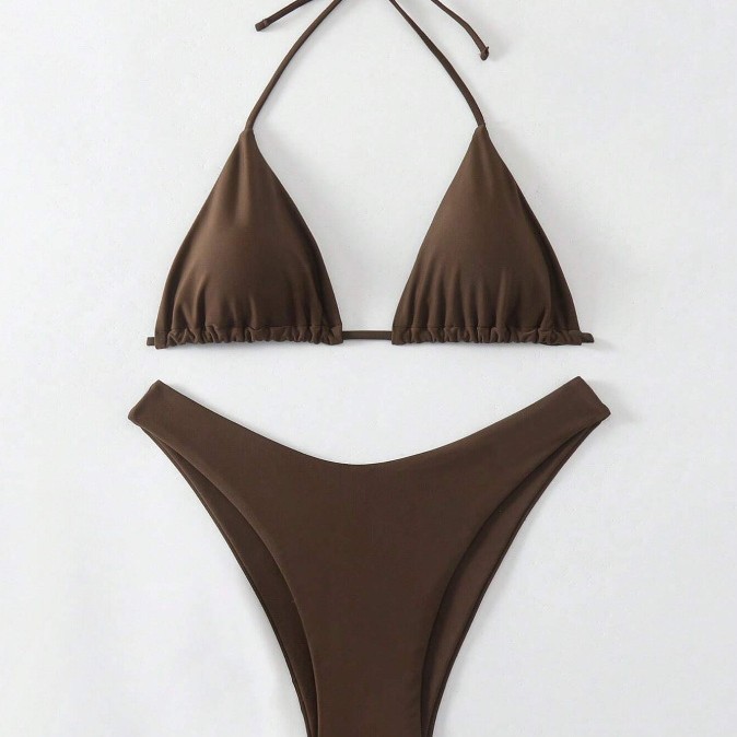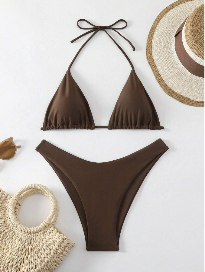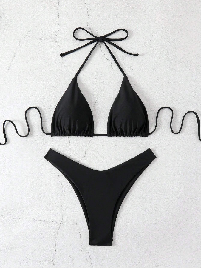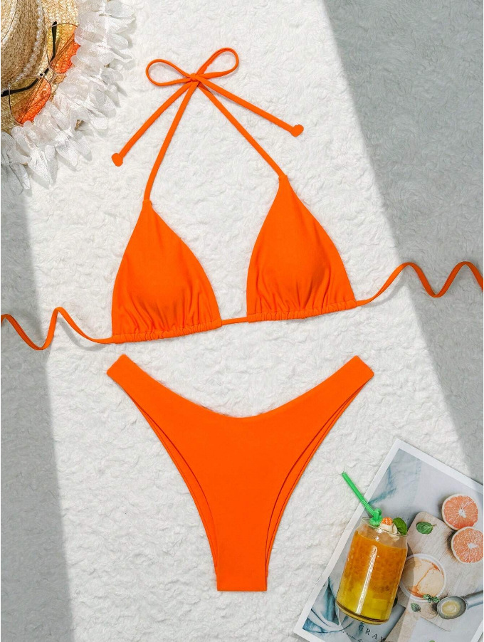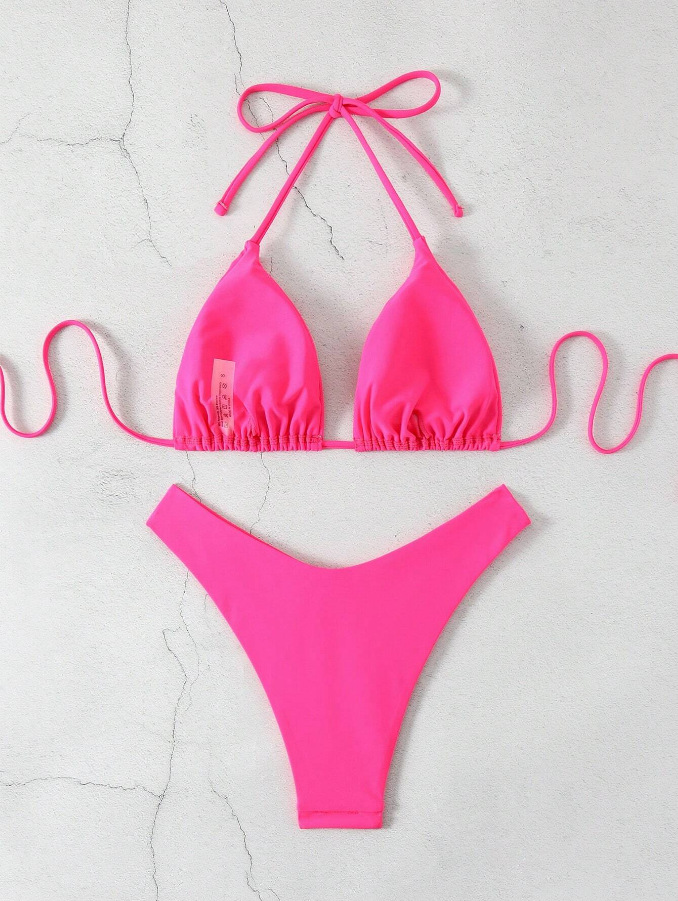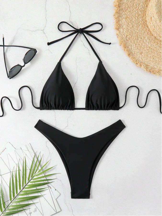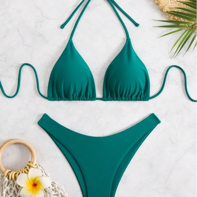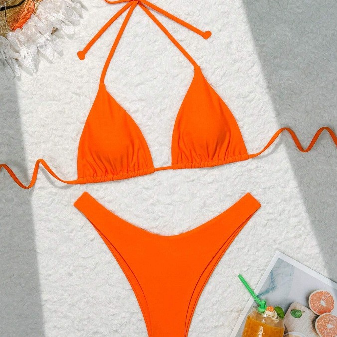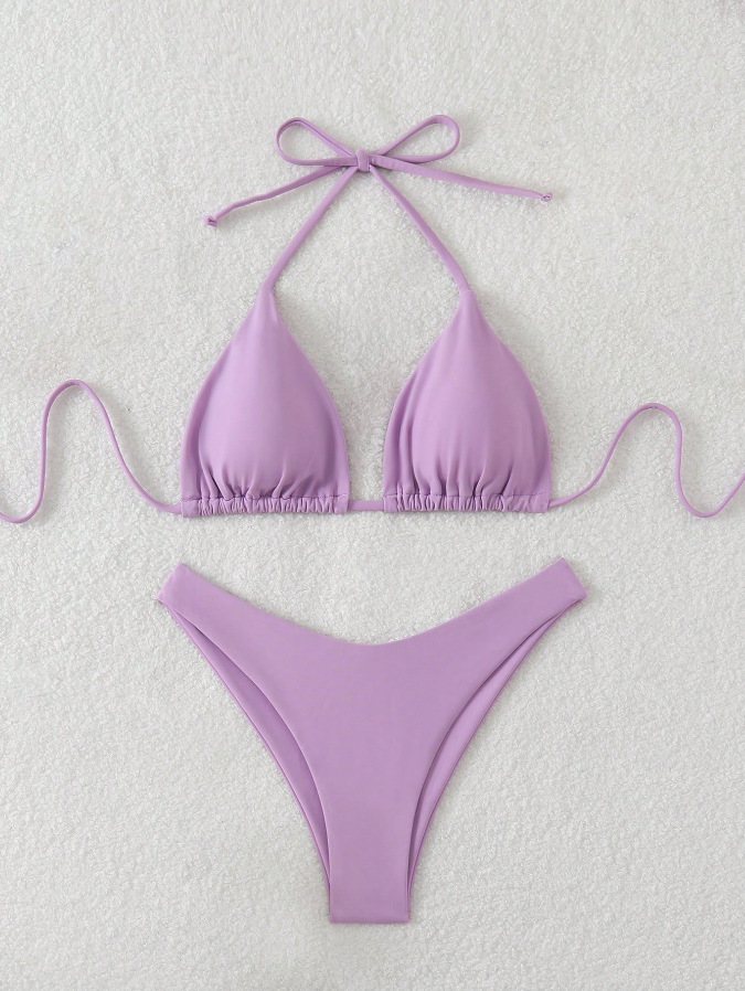유럽과 미국의 새로운 수영복 여성 아마존 솔리드 컬러 비치 비키니 하이 허리 레이스 업 대외 무역 AliExpress 섹시한 수영복