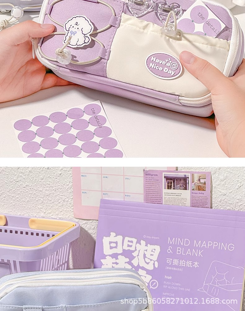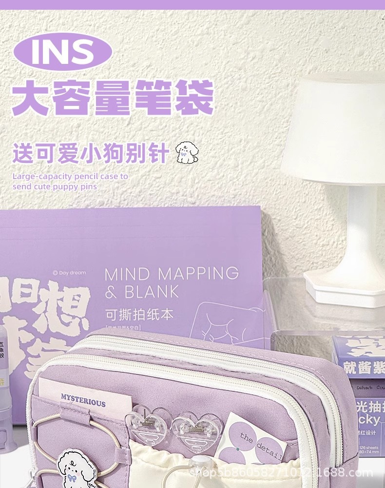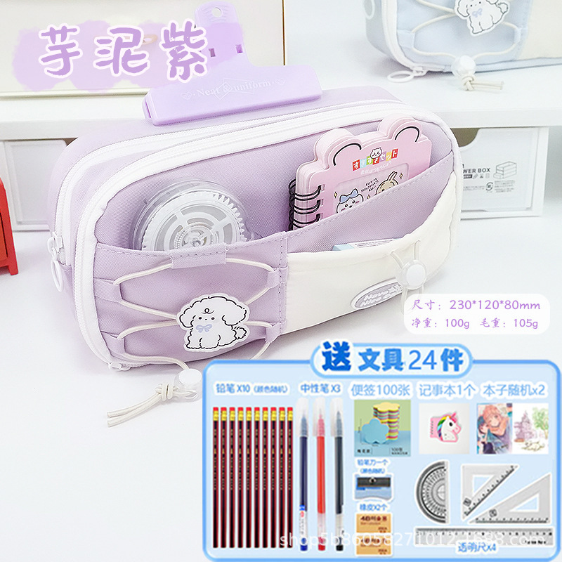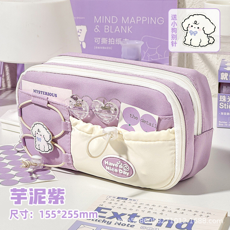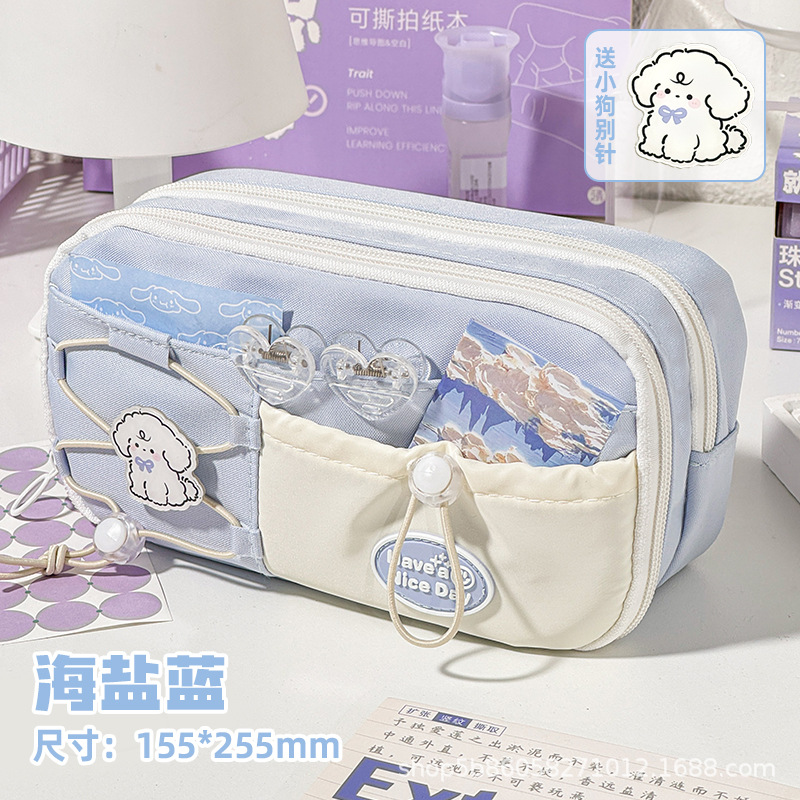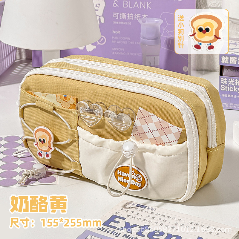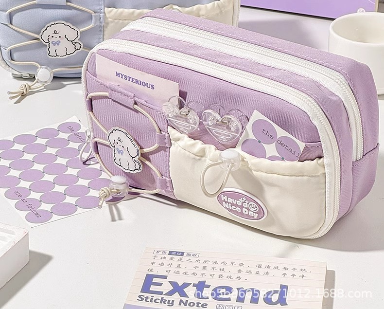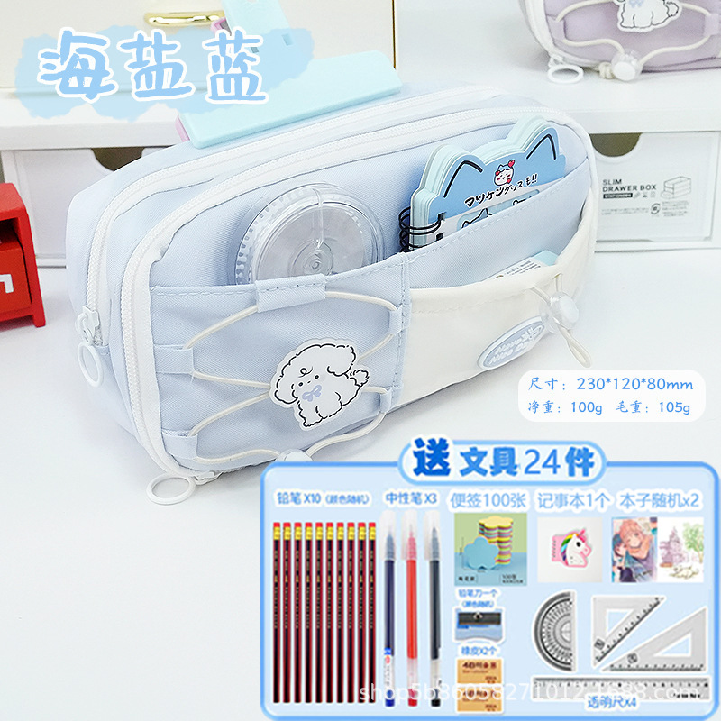새로운 드로 스트링 연필 케이스 중학생 문구 상자 대용량 귀여운 고등학생 문구 연필 케이스 소녀 높은 색상 값