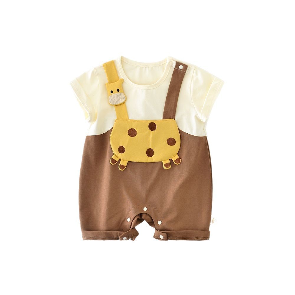 여름 새 소년 가짜 투피스 반팔 점프 수트 아기 신생아 만화 기린 등반 세트 52006스토어 가기
