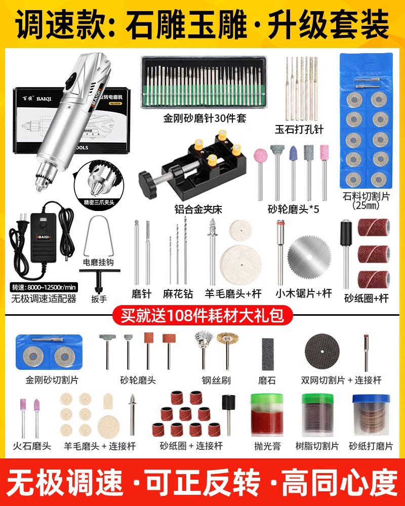 • [플러그인] 135W 속도 조절: 석재 조각 세트 + 무료 108개 소모품