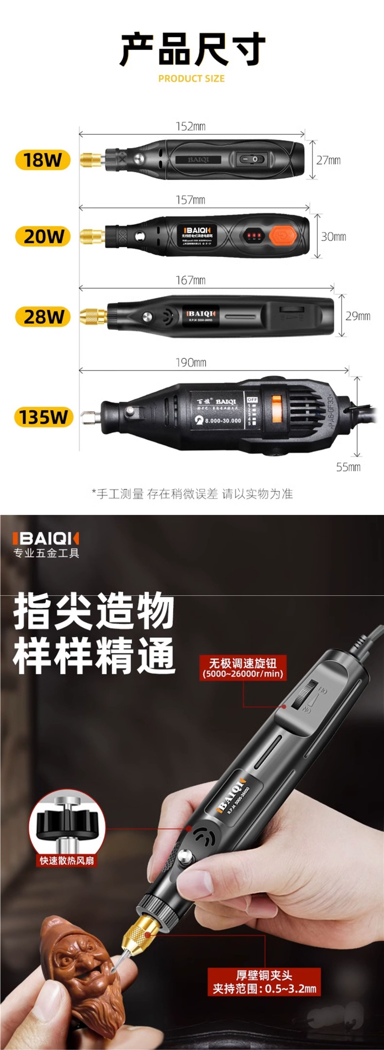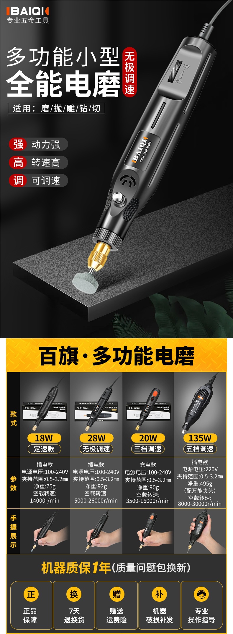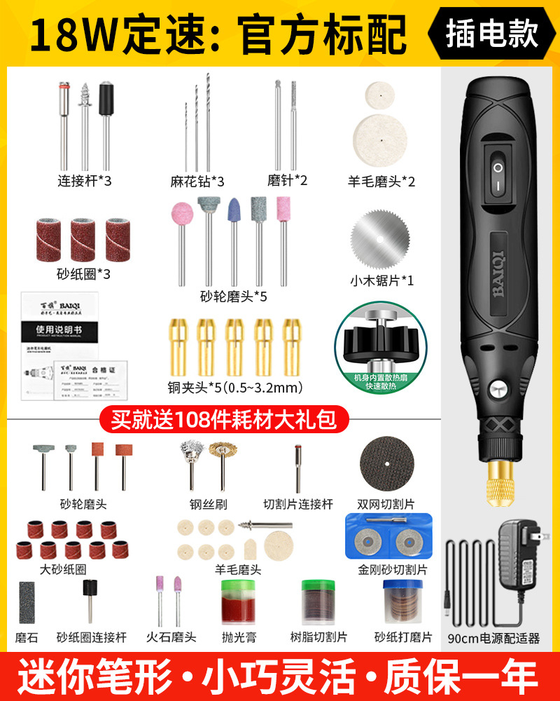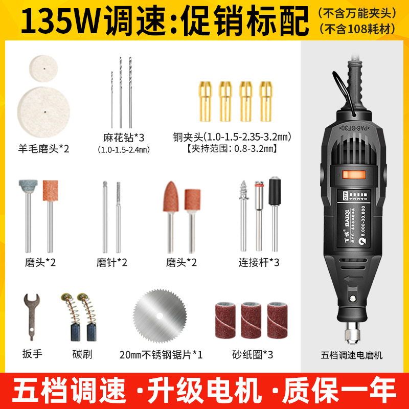 • [플러그인] 135W 속도 조절: 공식 표준 구성 - 무료 범용 척 + 무료 108개 소모품