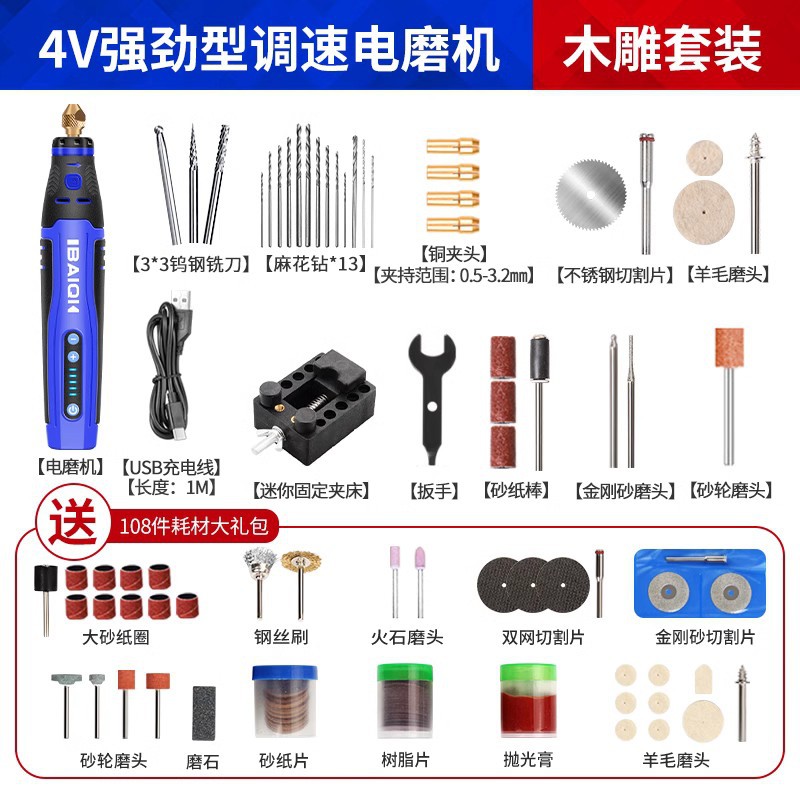 • [충전식 모델] 미니 20W: 목각 및 석각 - 범용 세트 + 무료 소모품 108개