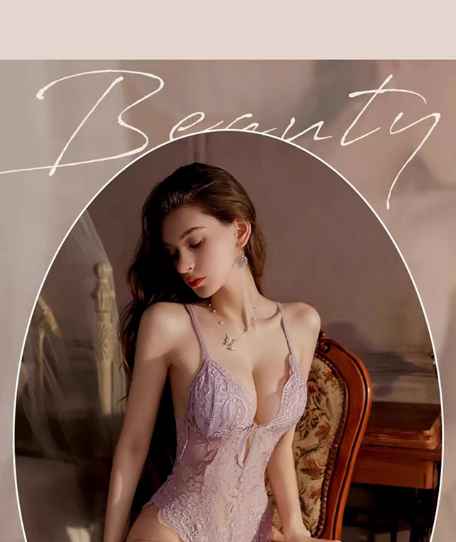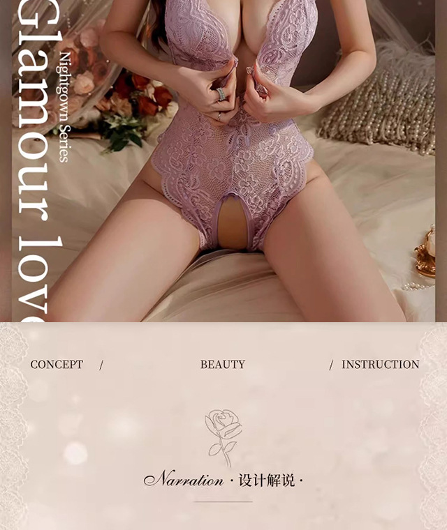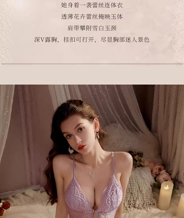 [트렌치 티즈] 섹시 레이스 유혹 오픈 파일 점프 수트 퍼플 섹시 속옷 여성의 핫 원근감 파자마스토어 가기