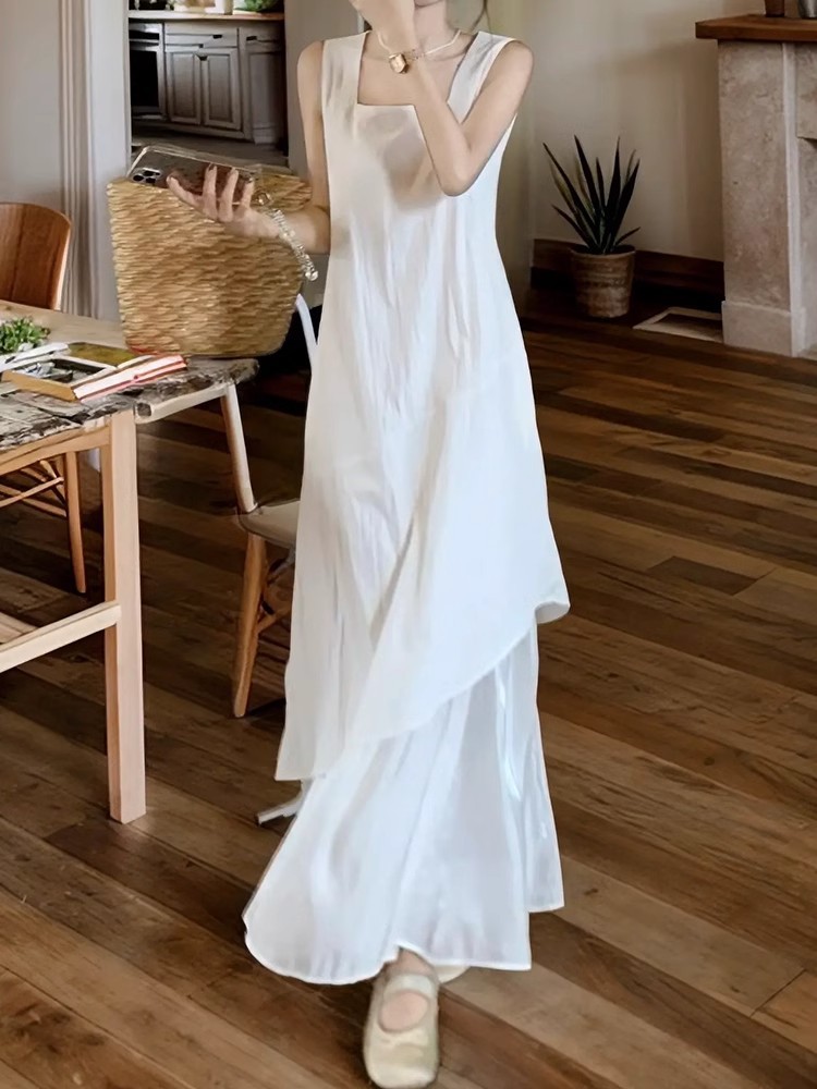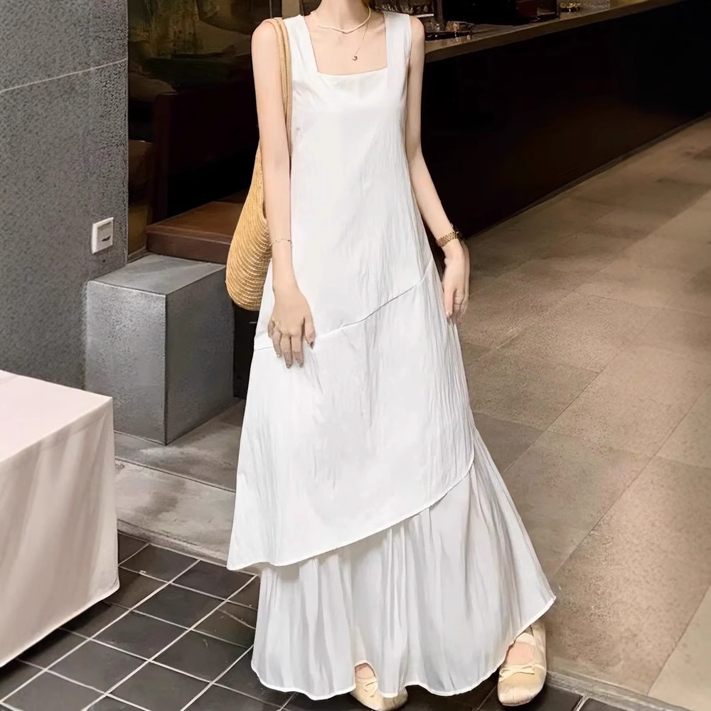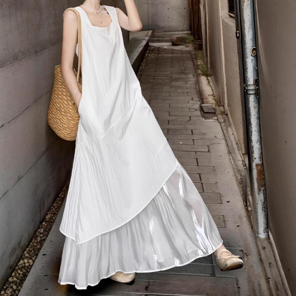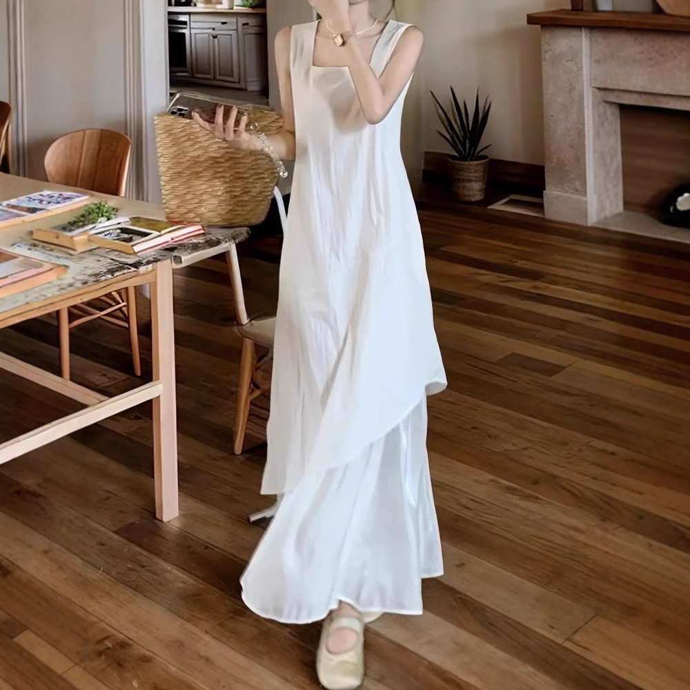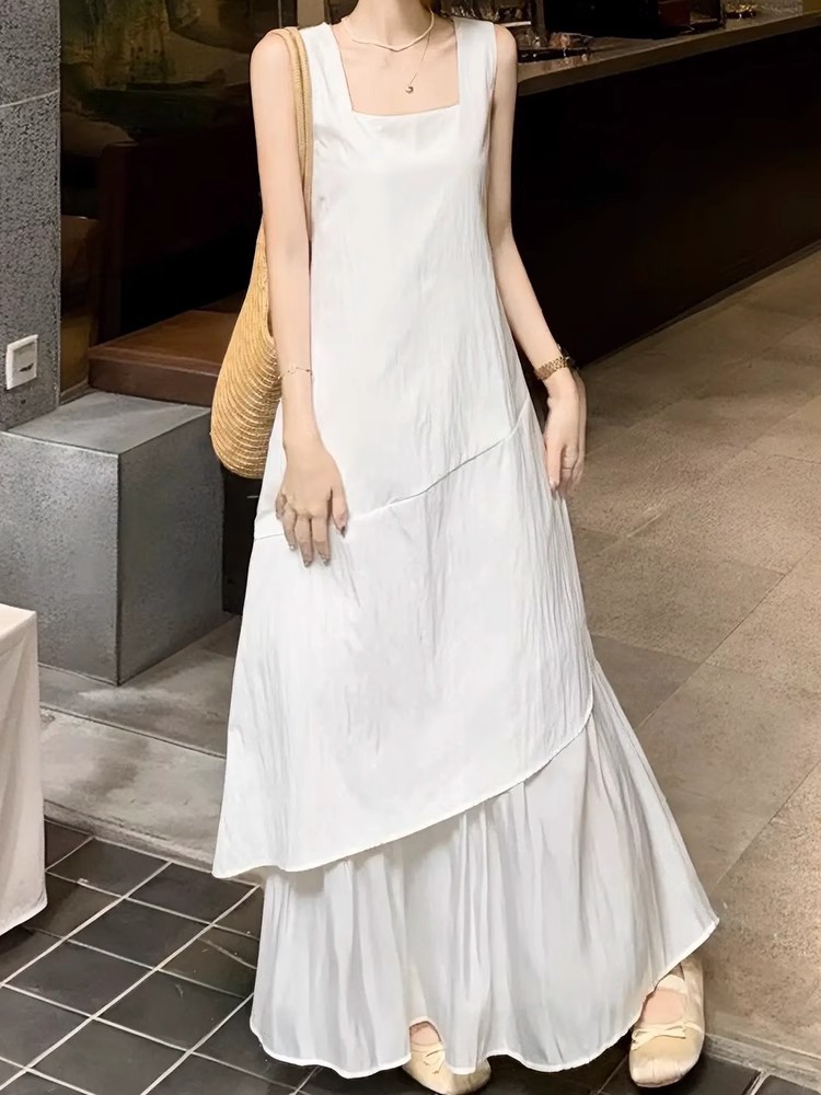 프랑스 화이트 민소매 조끼 원피스 어린이 여름 2025 새로운 하이 엔드 우아한 불규칙한 긴 원피스스토어 가기
