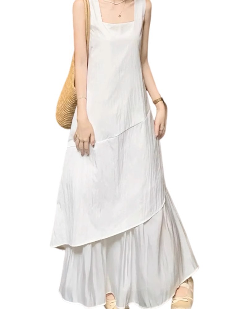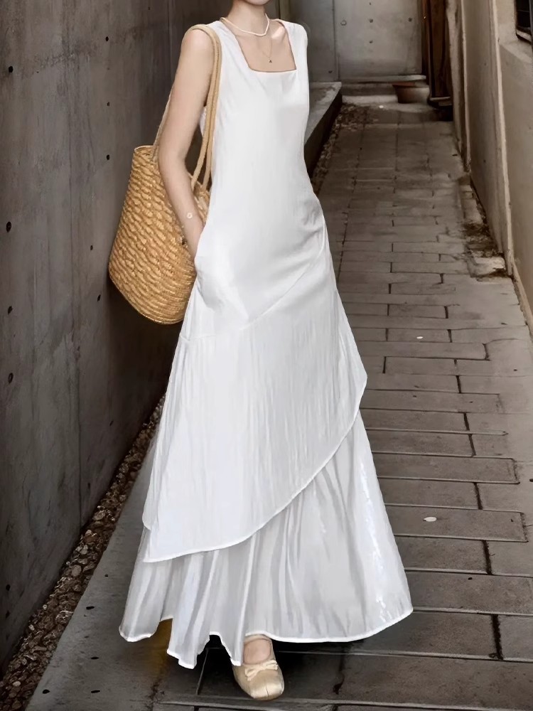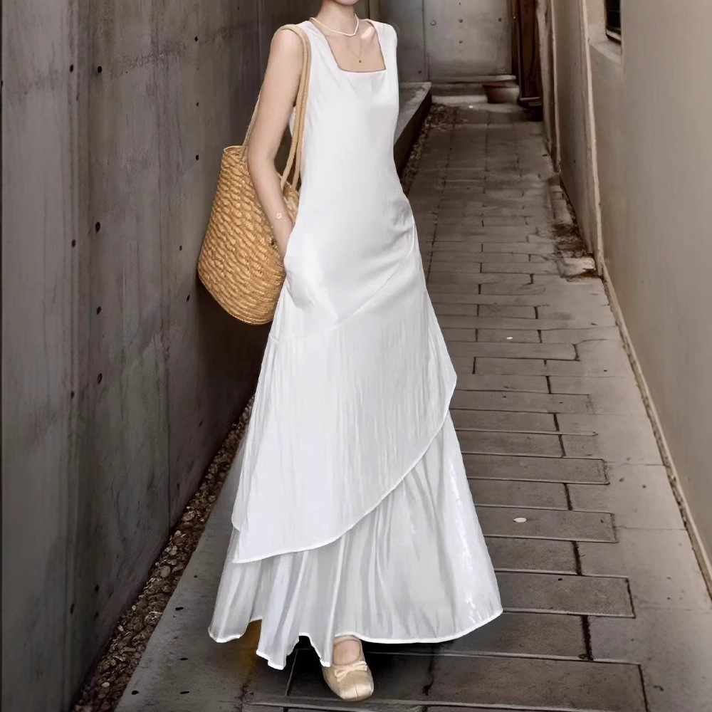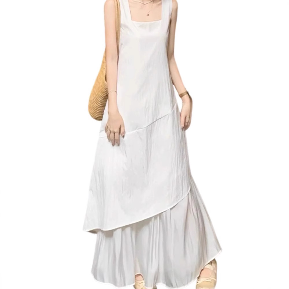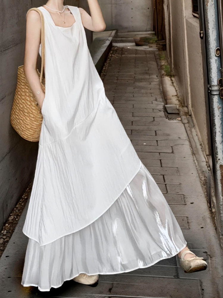 프랑스 화이트 민소매 조끼 원피스 어린이 여름 2025 새로운 하이 엔드 우아한 불규칙한 긴 원피스스토어 가기