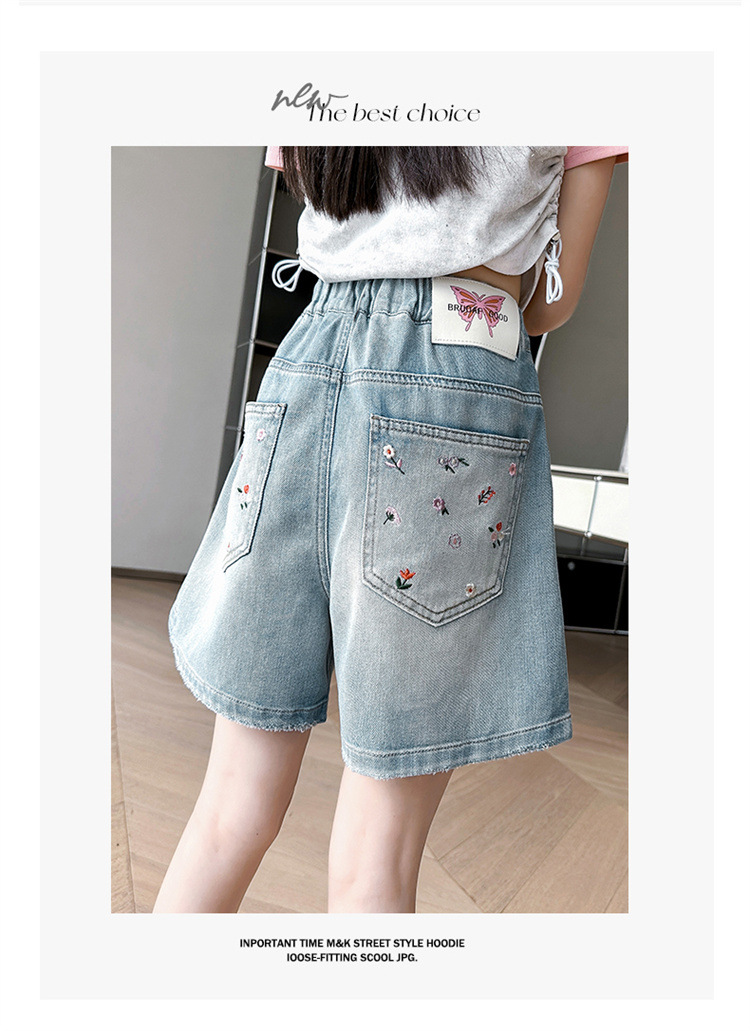 여자 여름 반바지 2025 새로운 스타일 큰 어린이 유행 서양 스타일 무거운 공예 자수 올 매치 짧은 청바지 핫 바지스토어 가기