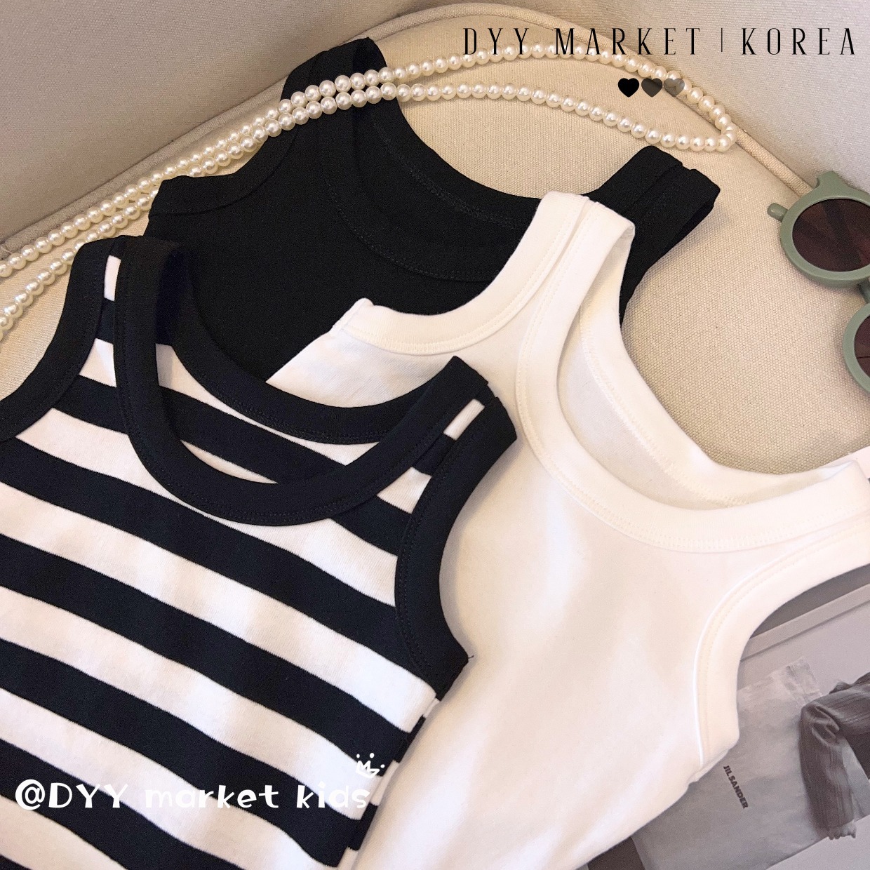 어린이 Xingyuan Girls Vest Sling Boys 'Sleevless Striped 한국식 All match Outer Wear Inner Fashion Solid Color Top