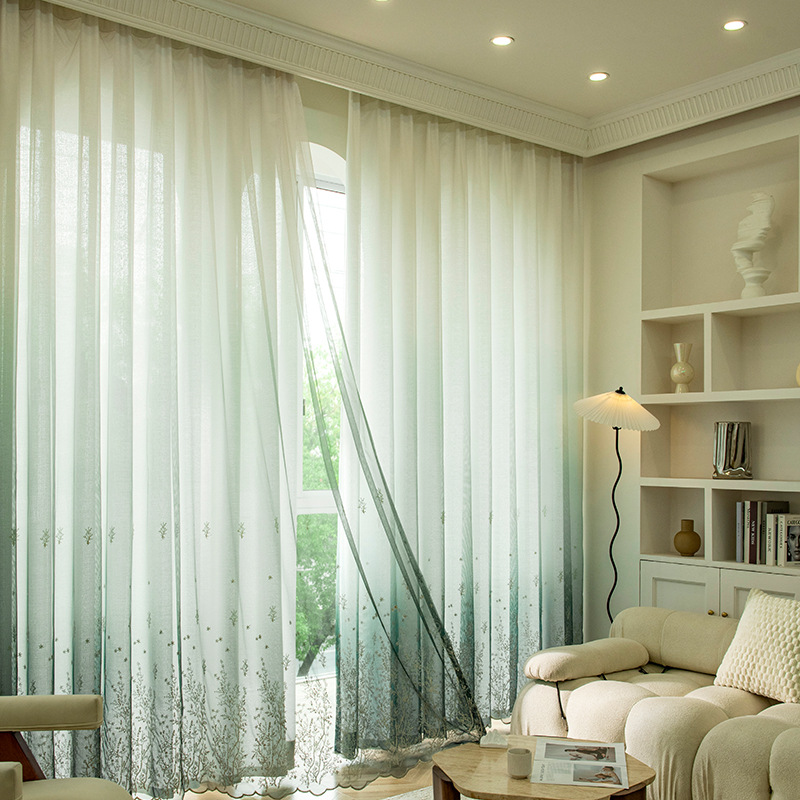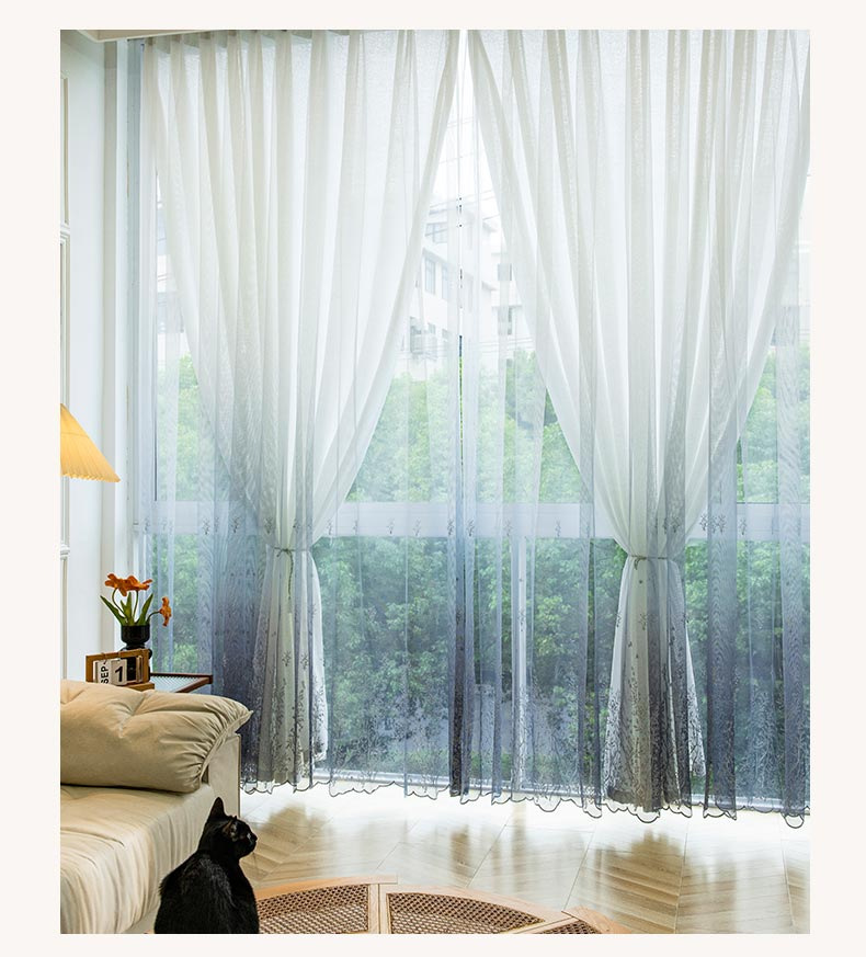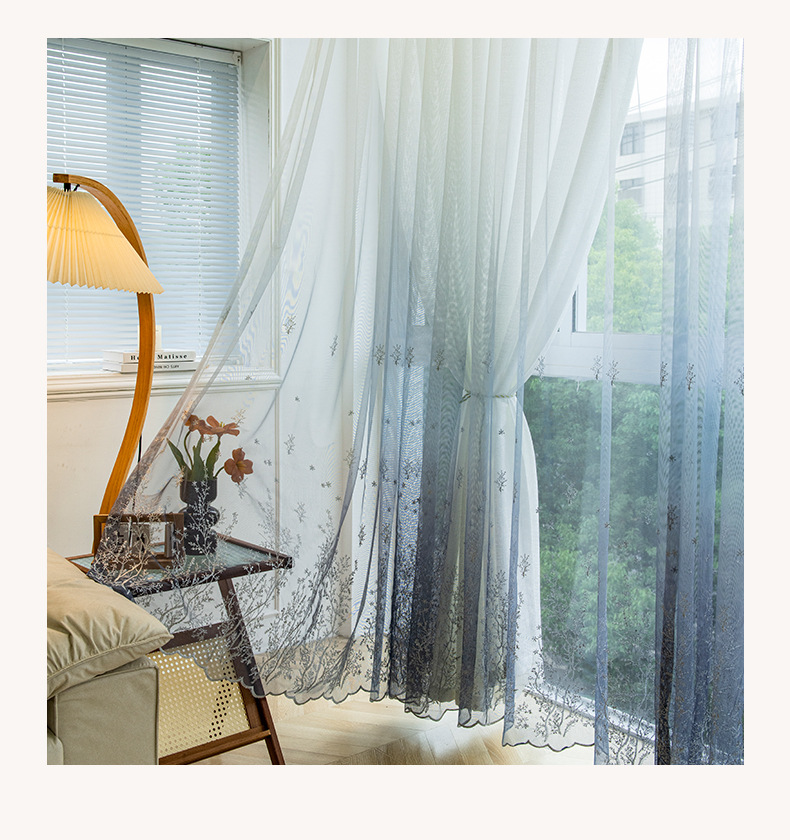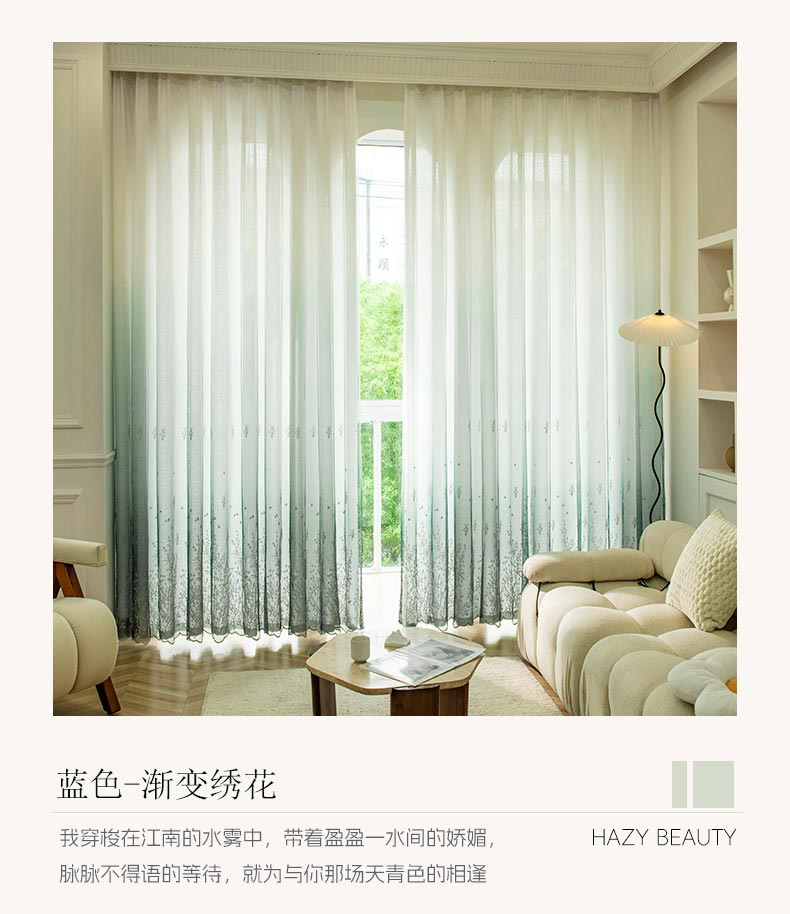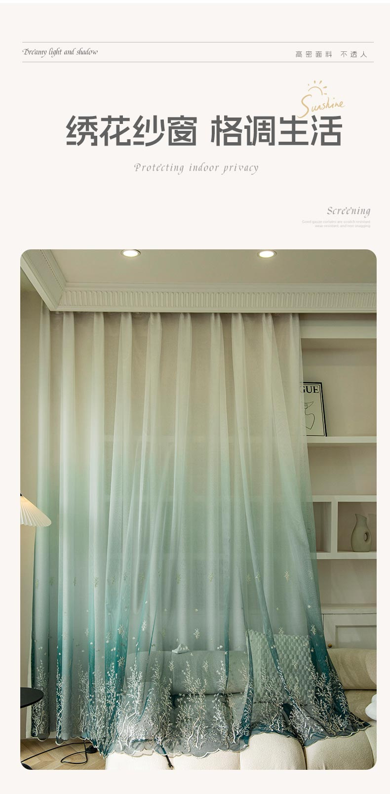 새로운 꿈 그라디언트 빛 고급 창 화면 커튼 통기성 불투과성 현대 거실 바닥부터 천장까지 창 발코니 베이 창 자수 원사스토어 가기