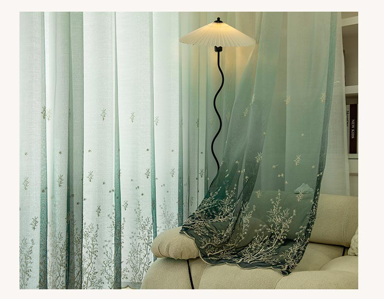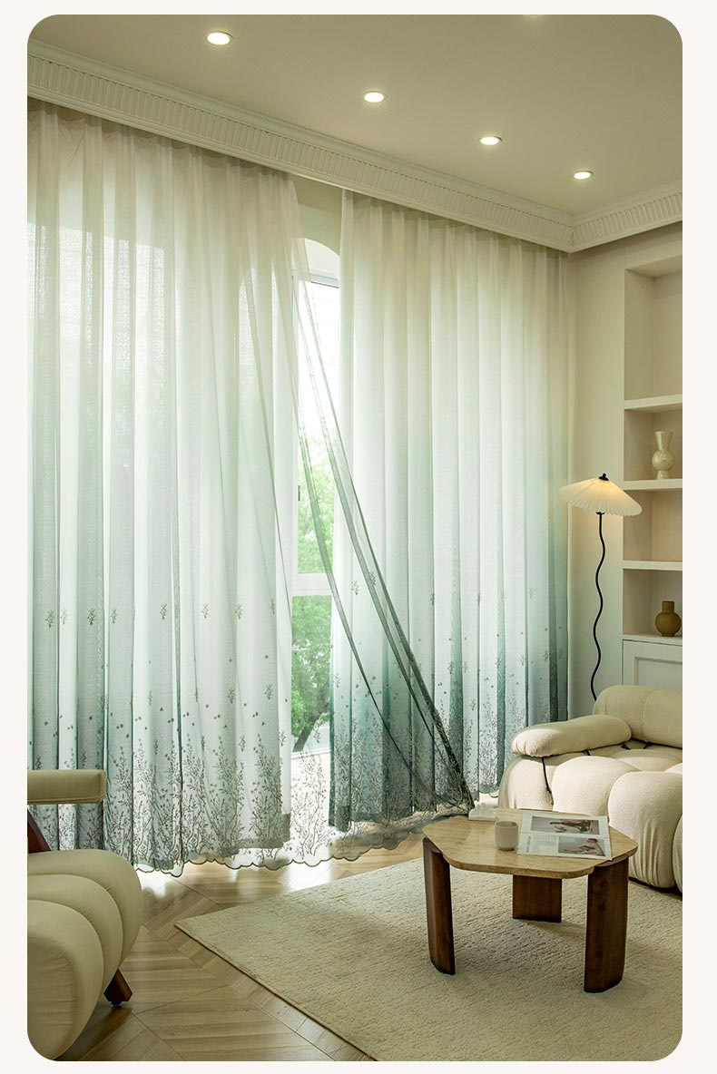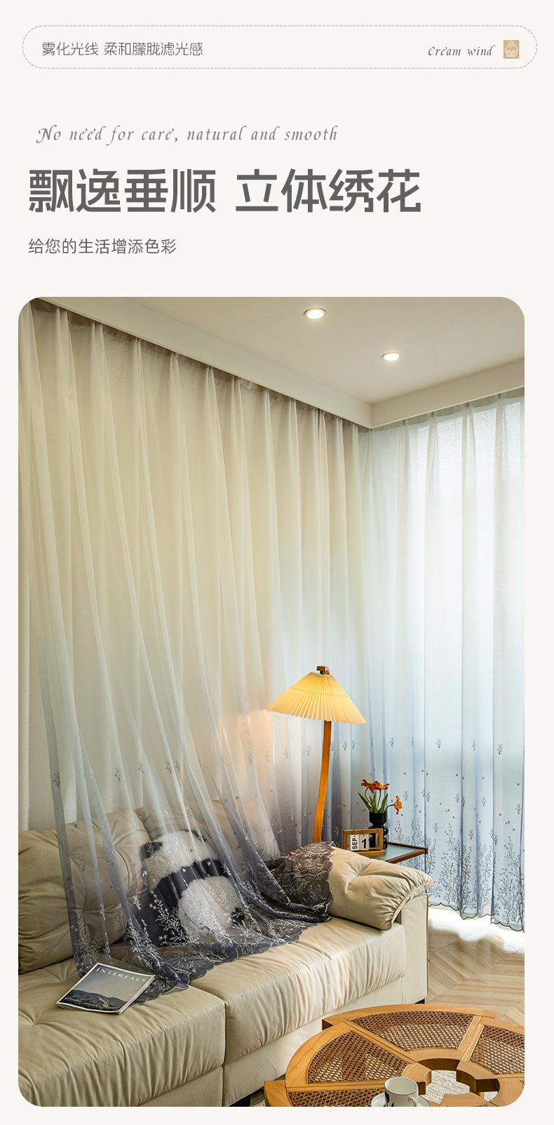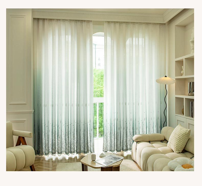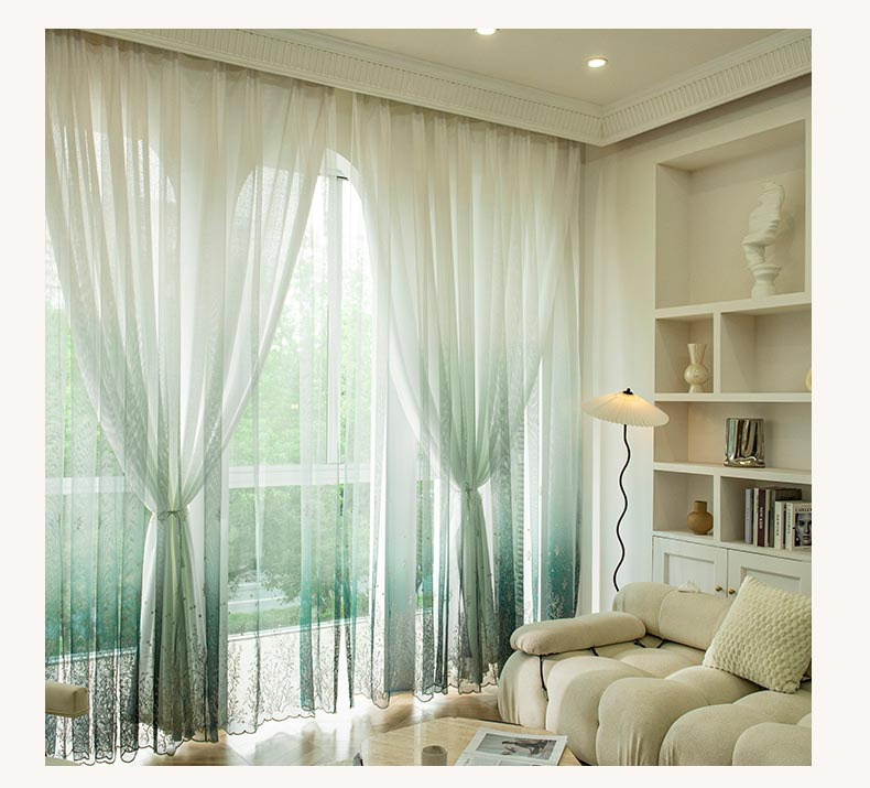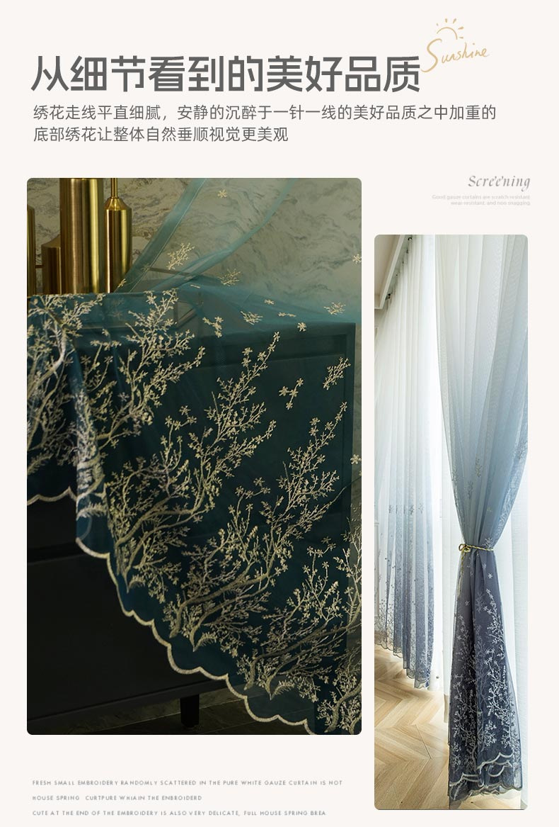 새로운 꿈 그라디언트 빛 고급 창 화면 커튼 통기성 불투과성 현대 거실 바닥부터 천장까지 창 발코니 베이 창 자수 원사스토어 가기
