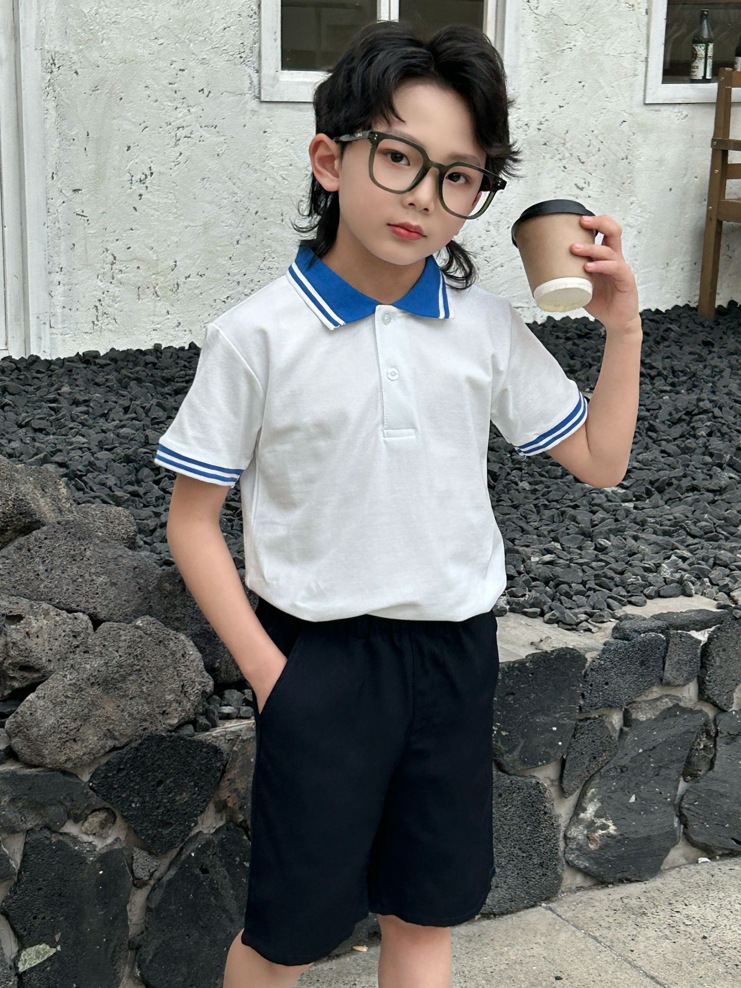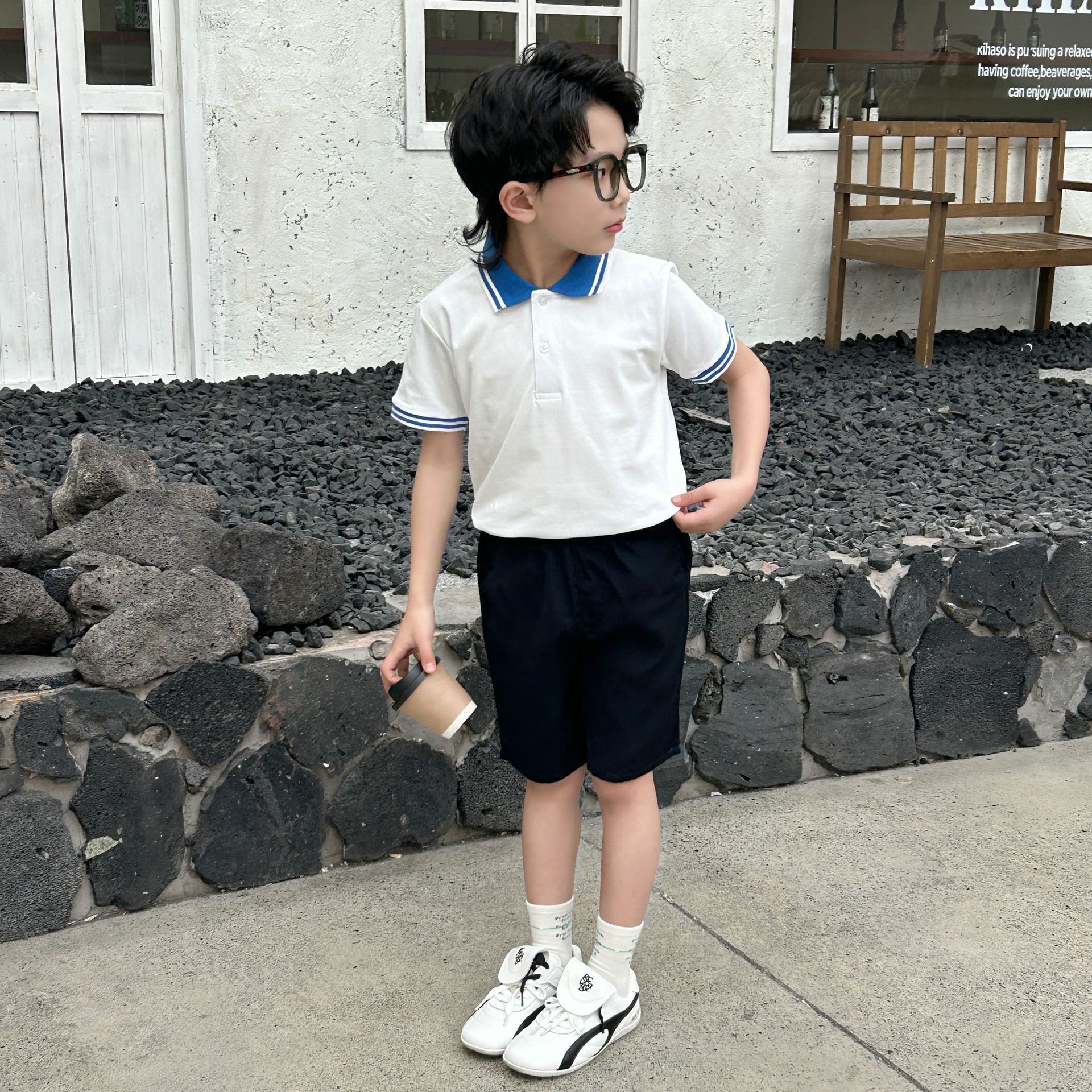남학생 반팔 여름 새 폴로 셔츠 어린이 라셀 세련된 소년 중 · 대형 어린이 탑 바지 세트