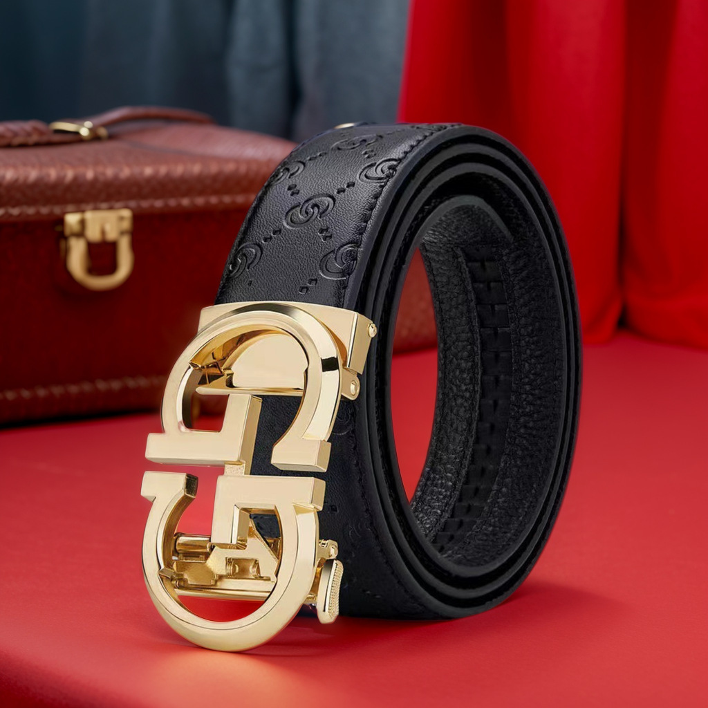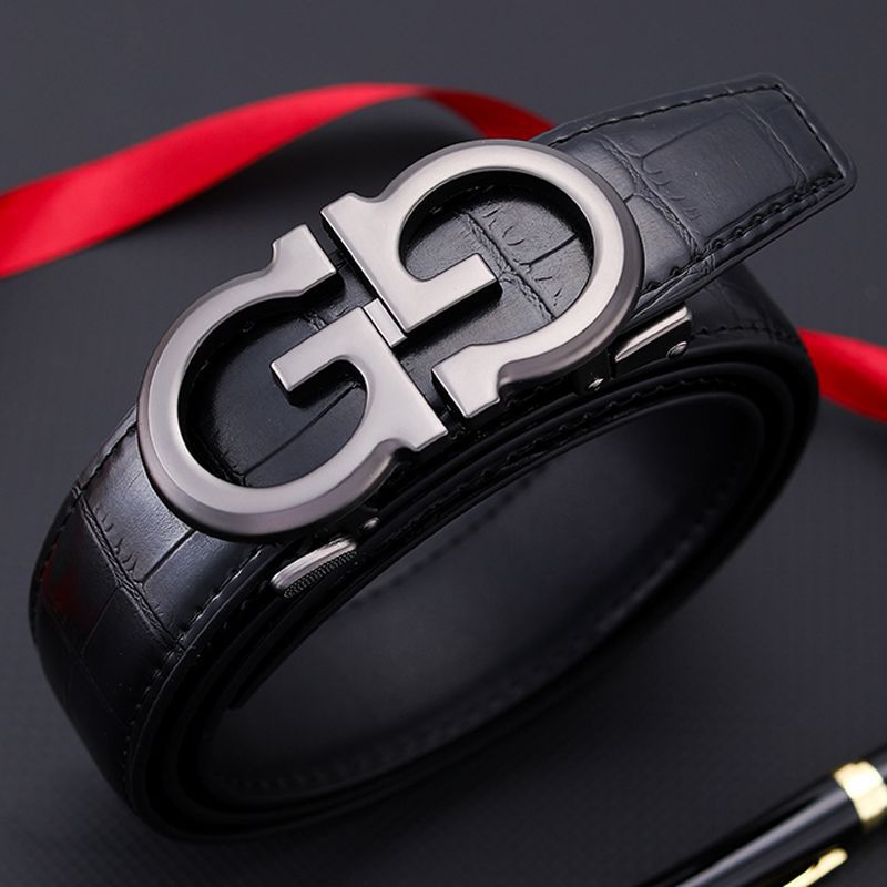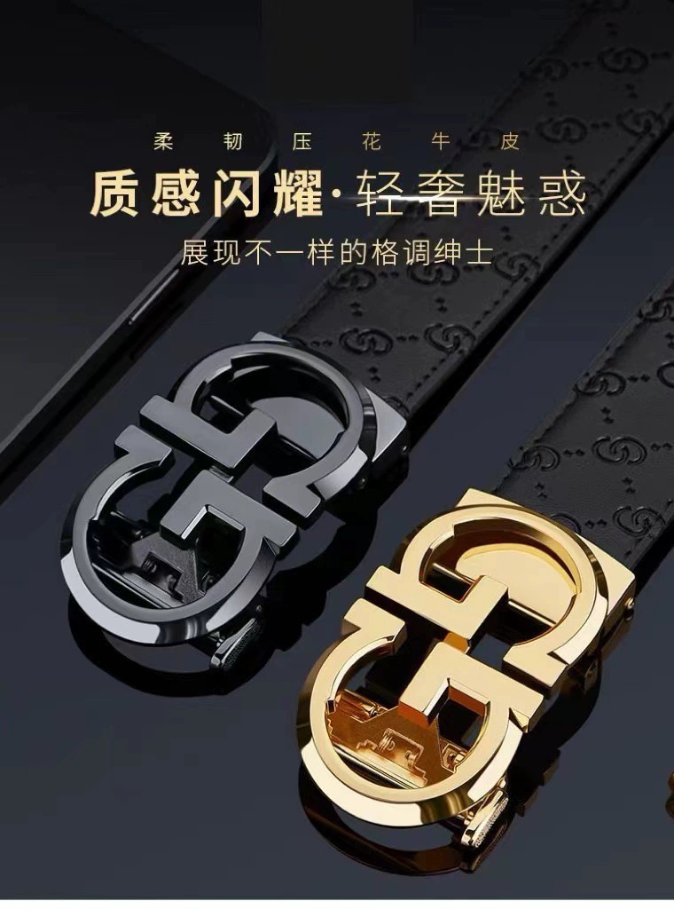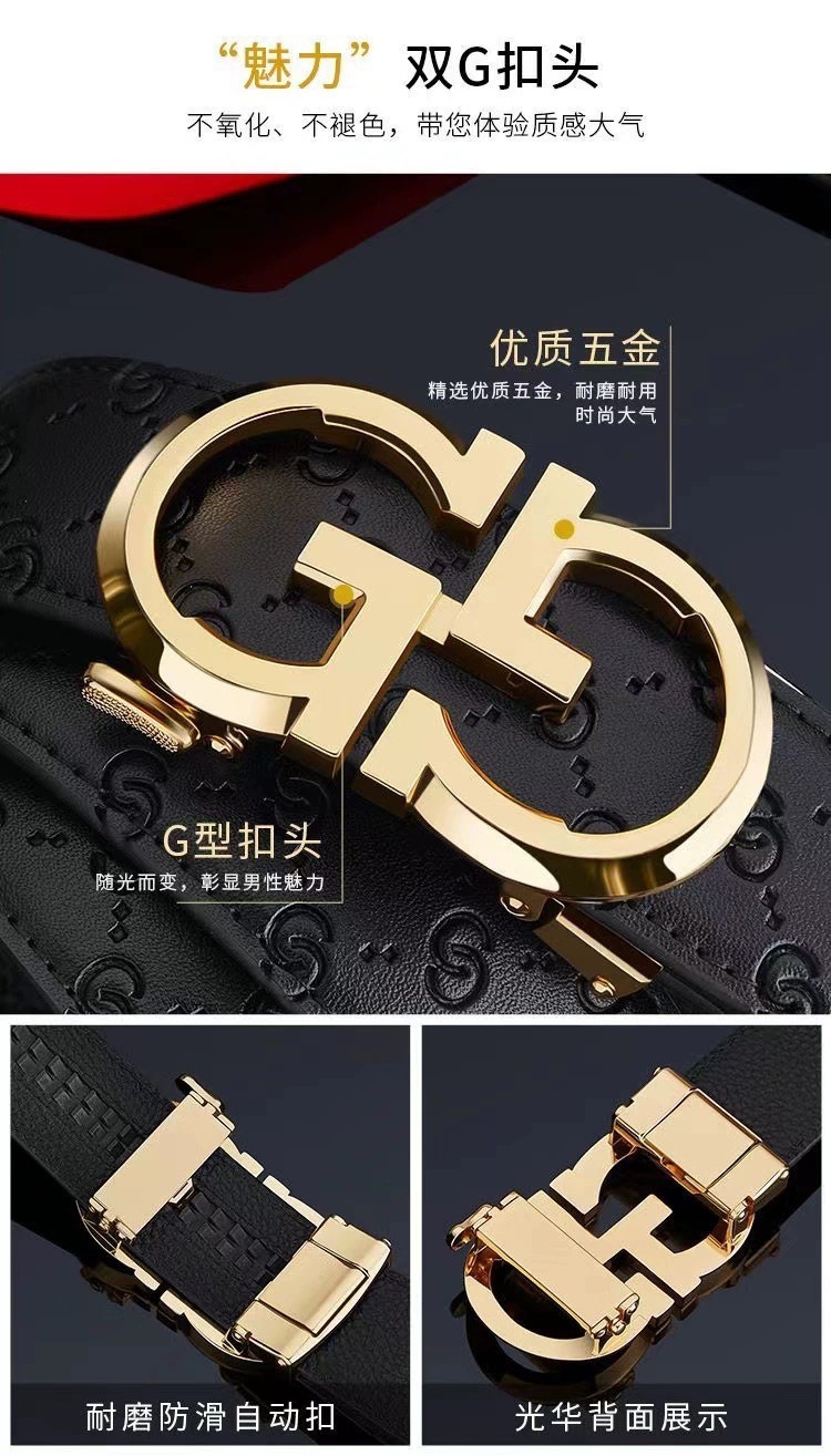 정품 가죽 벨트 남성 합금 편지 G 자동 버클 카우 히드 양각 벨트 캐주얼 비즈니스 벨트 재고스토어 가기