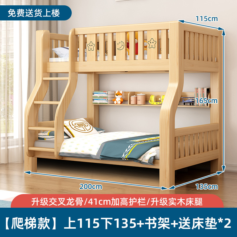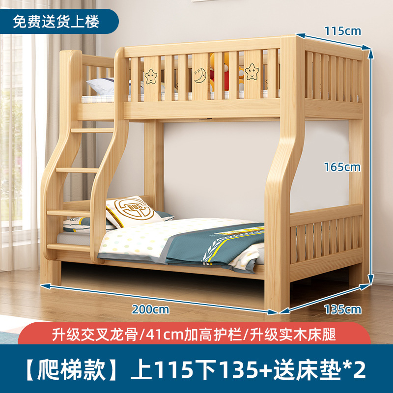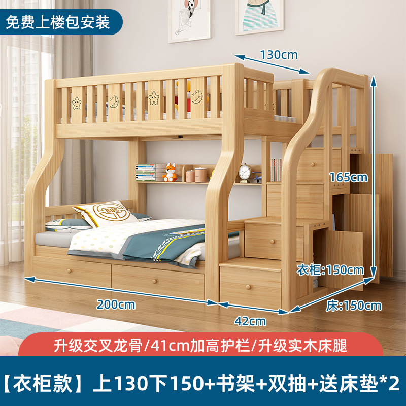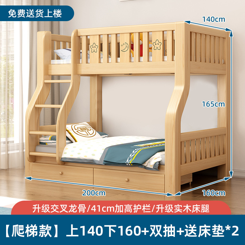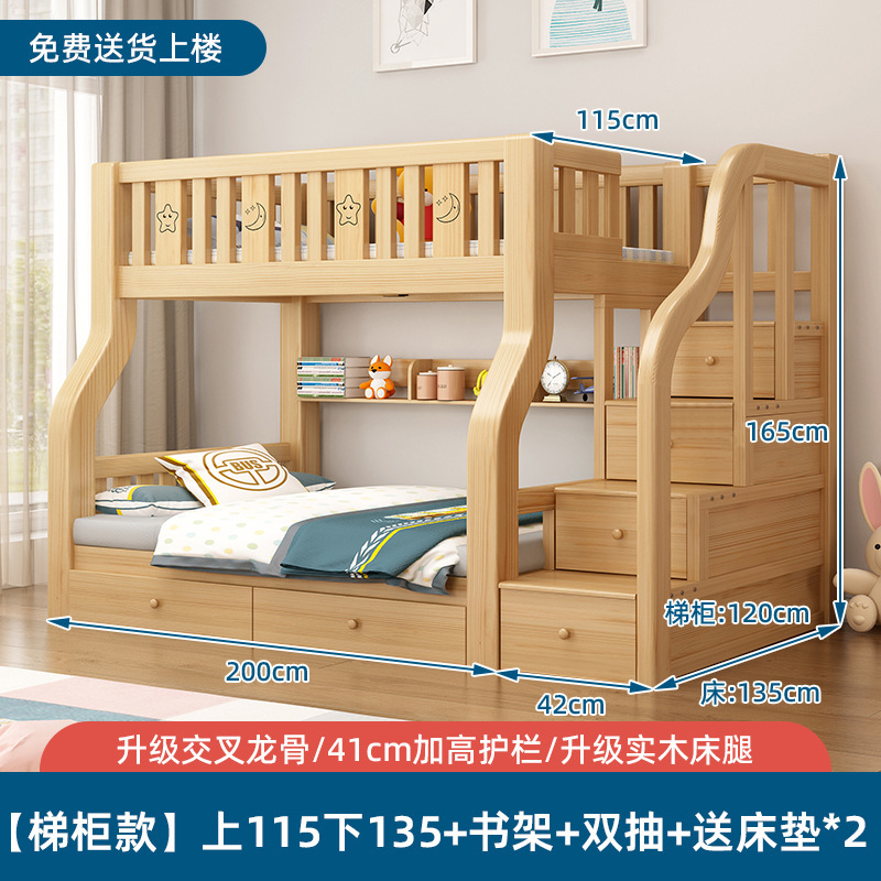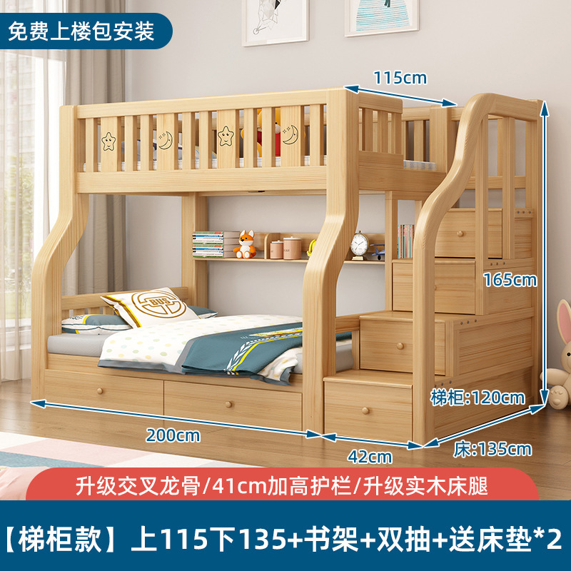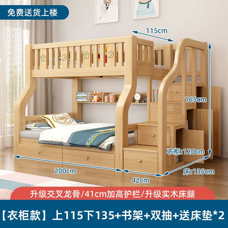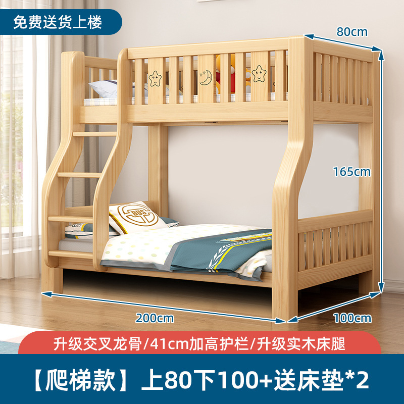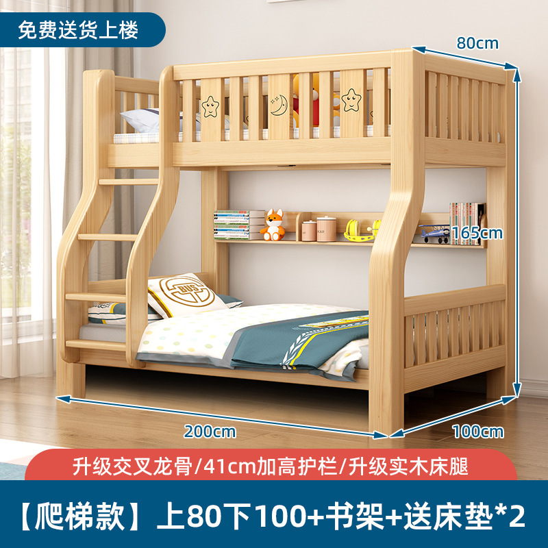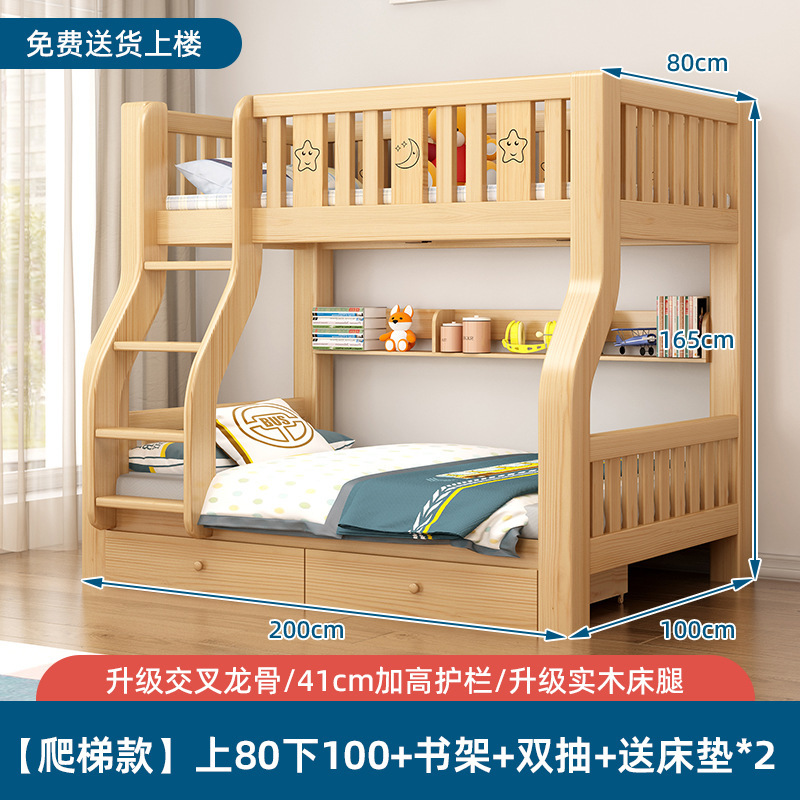 단단한 나무 벙크 침대 침대 작은 아파트 선반 더블 침대 2 층 나무 침대 높고 낮은 어린이 침대