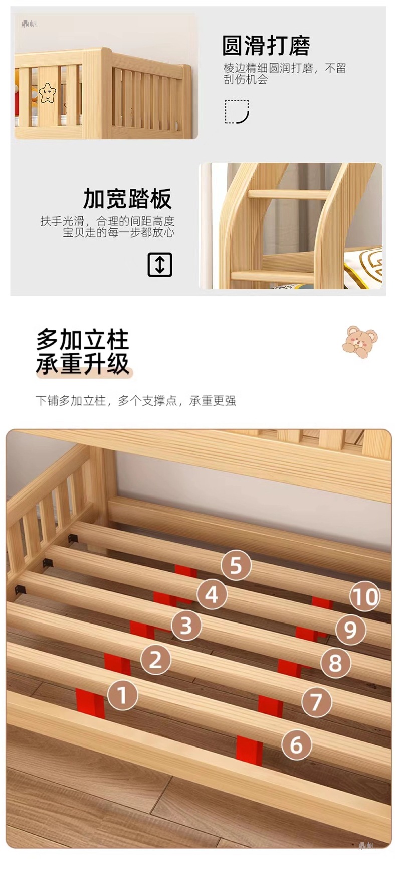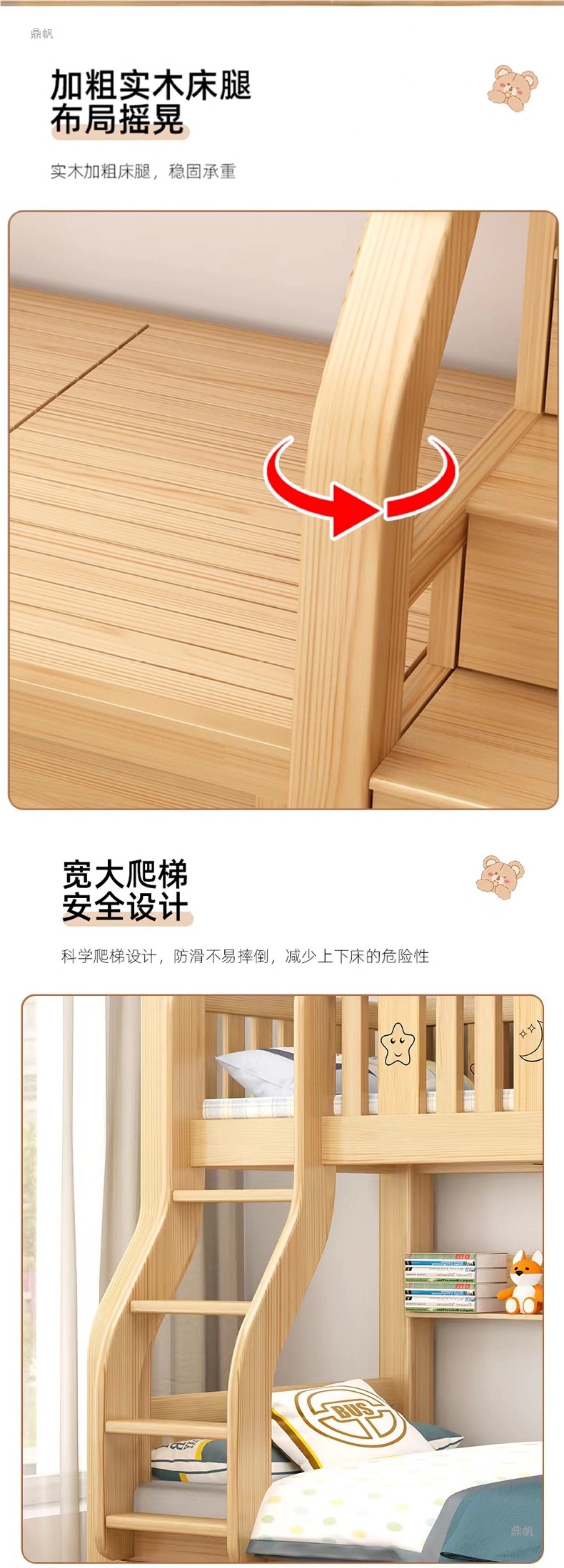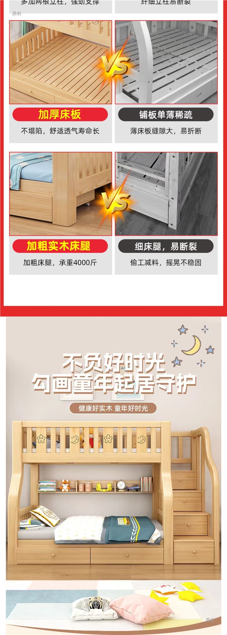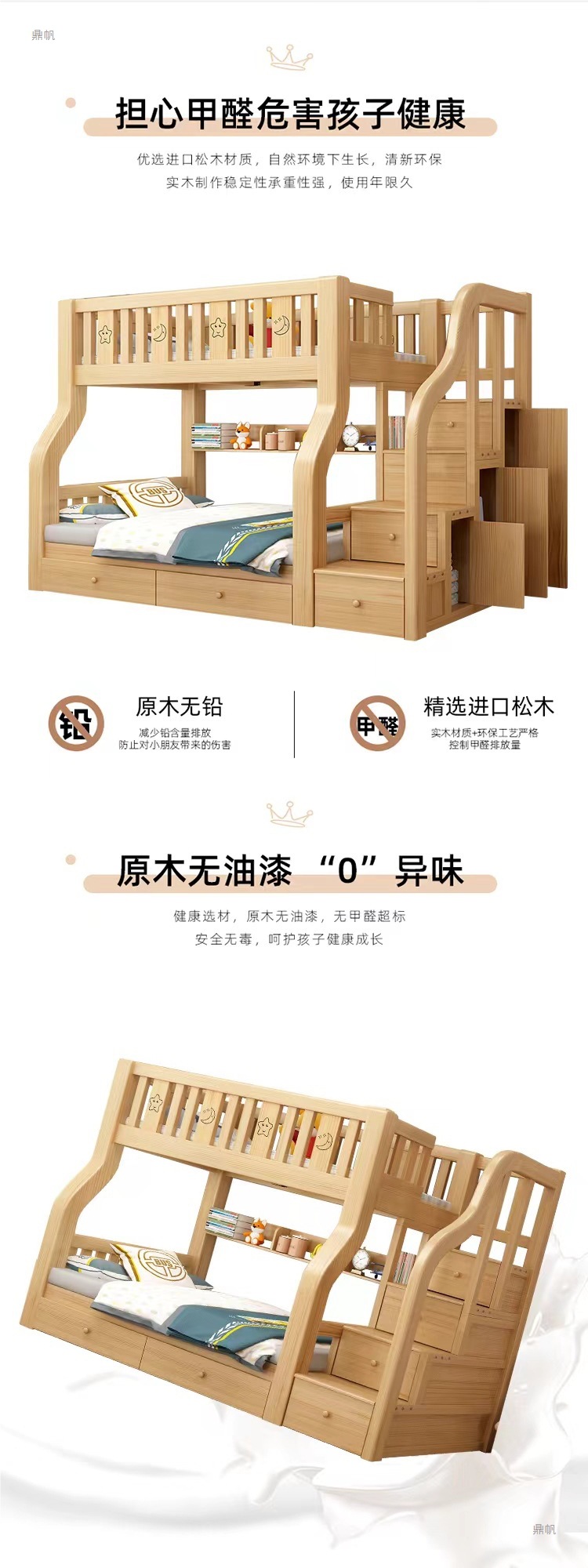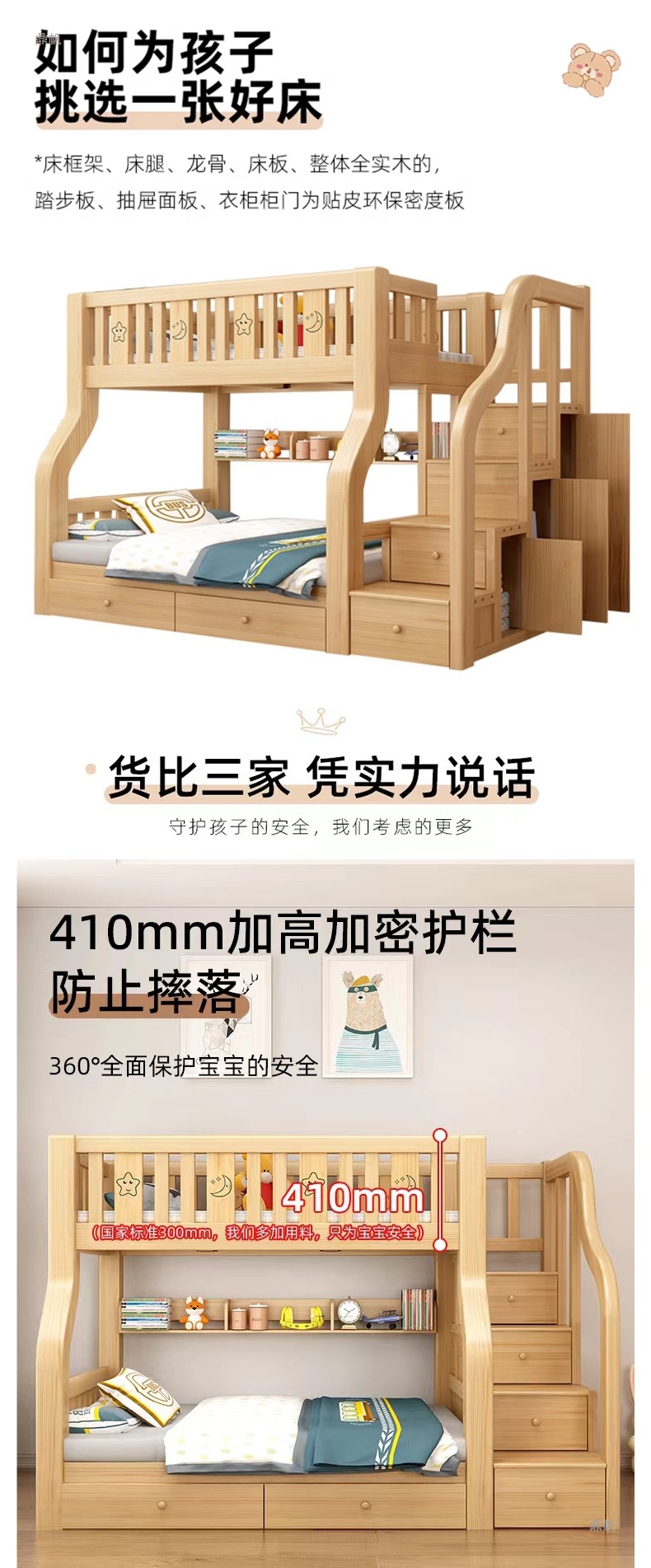 단단한 나무 벙크 침대 침대 작은 아파트 선반 더블 침대 2 층 나무 침대 높고 낮은 어린이 침대