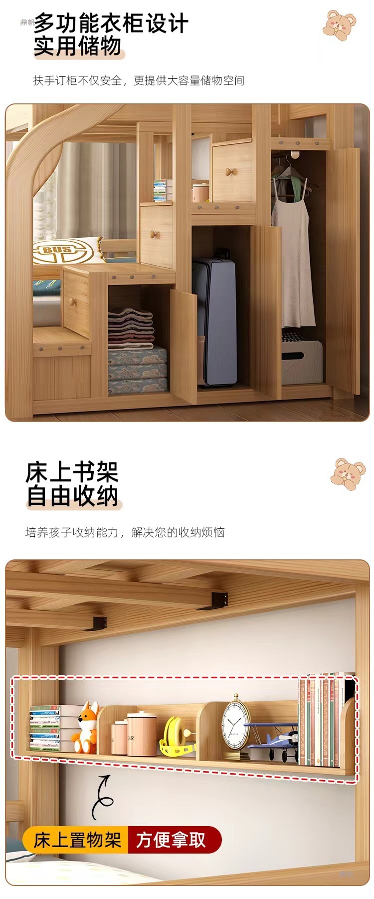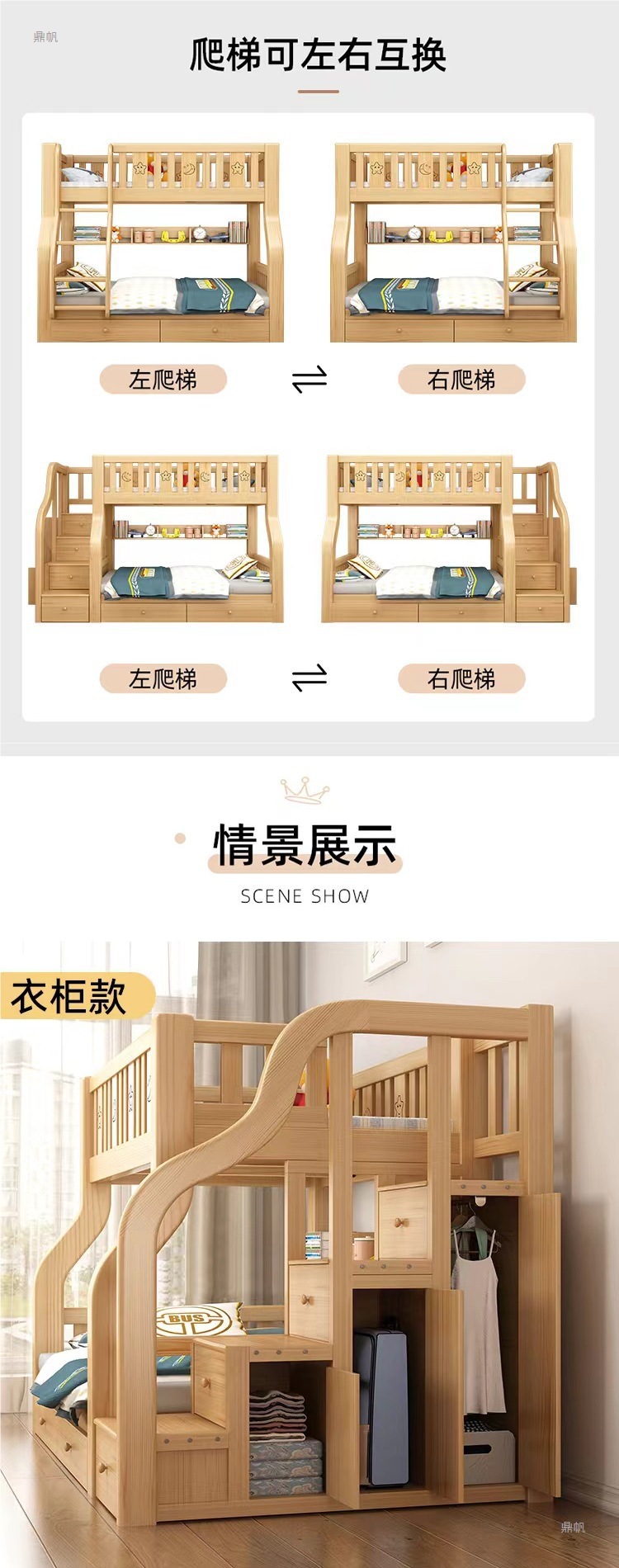 • √[옷장 모델] 상층 100, 하층 120+ 책장 + 서랍 + 무료 매트리스*2 [위층 설치]