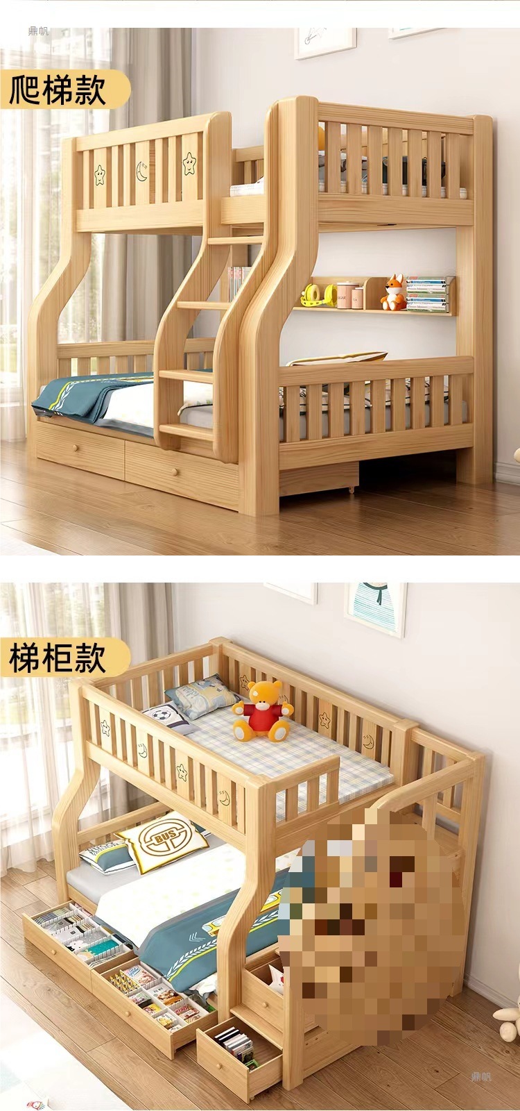 • √[사다리 캐비닛 모델] 상부 115 하부 135+ 책장 + 서랍 + 무료 매트리스*2 [위층 설치]