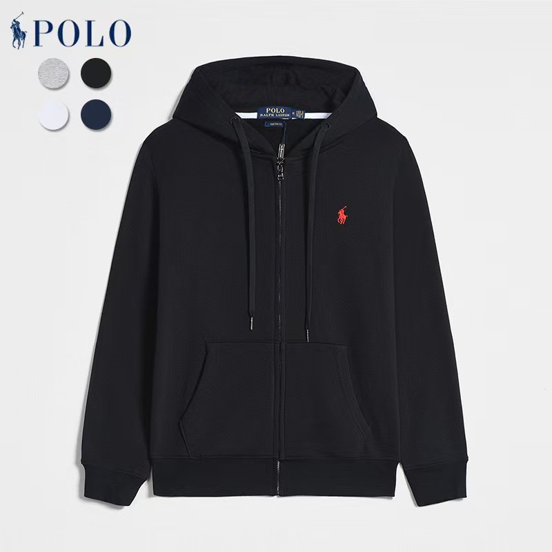 봄과 가을 폴 긴 소매 스웨터 남성용 캐주얼 지퍼 솔리드 컬러 자수 포니 라벨 지퍼 카디건 재킷스토어 가기