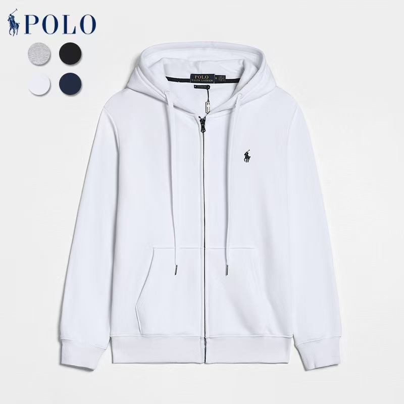 봄과 가을 폴 긴 소매 스웨터 남성용 캐주얼 지퍼 솔리드 컬러 자수 포니 라벨 지퍼 카디건 재킷