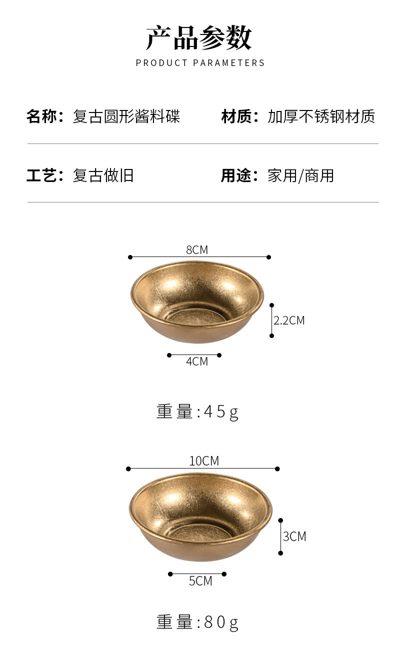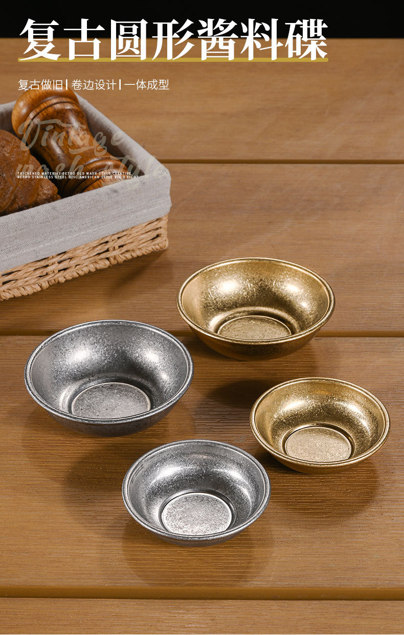 레트로 304 스테인레스 스틸 소스 접시 둥근 작은 접시 맛 접시 조미료 접시 상업용 토마토 소스 컵 스낵 접시스토어 가기